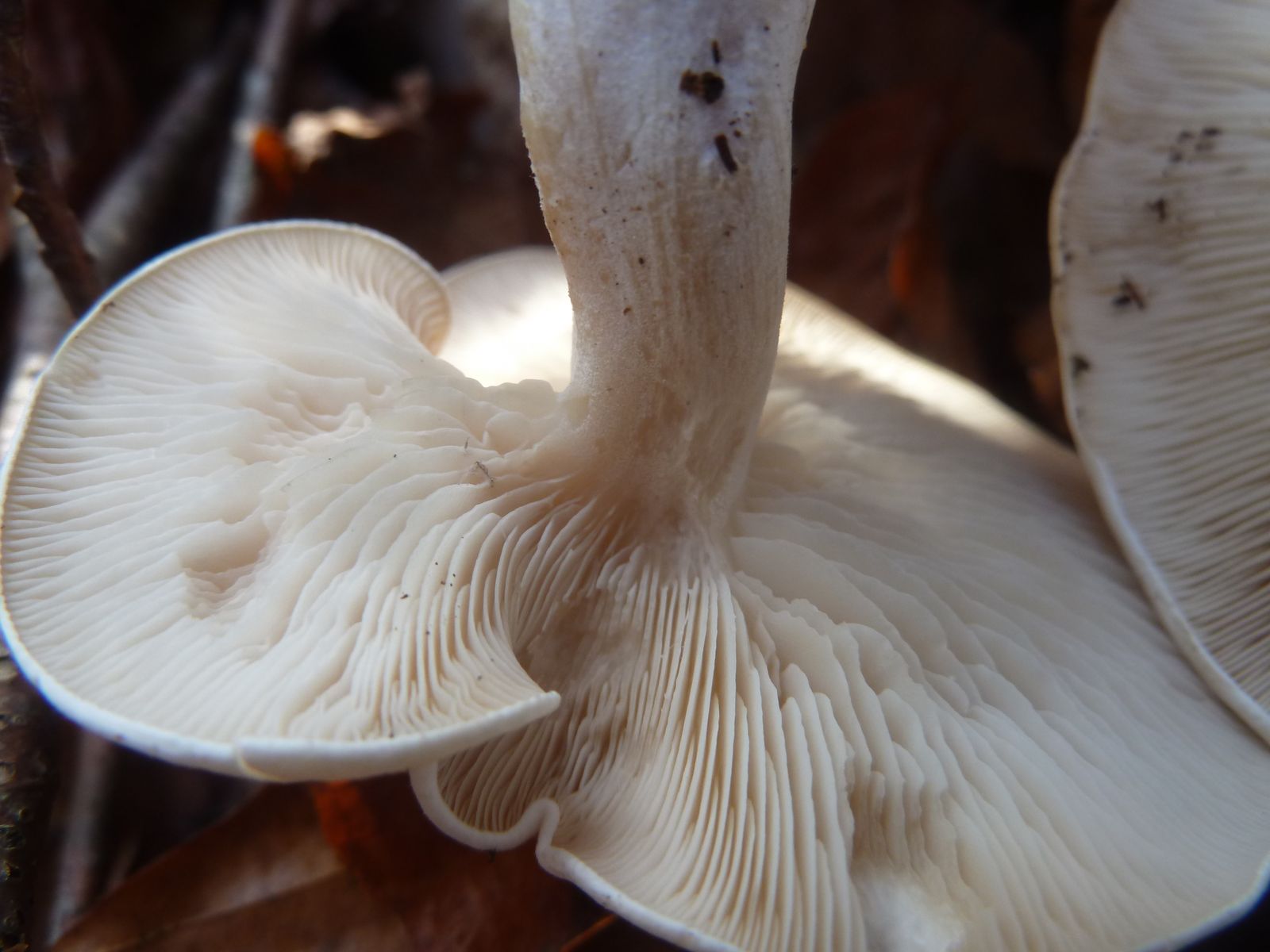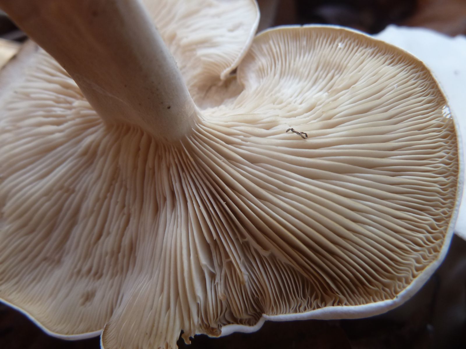 Wenn ich mal im Gminder/Karasch abgleiche, lande ich beim Bleiweißer Trichterling bzw. Laubfreund-Trichterling , der mit verschiedenen wissenschaftlichen Artnamen genannt wird und als Artenaggregat dort geführt wird. Es soll laut Internet auch noch verschiedene sehr ähnliche Arten geben (z.B. wachsstieliger Trichterling und weißer Holztrichterling, wobei zu letzterem bei 123 Pilze Fotos gezeigt werden, die meinen Exemplaren extrem ähneln).
