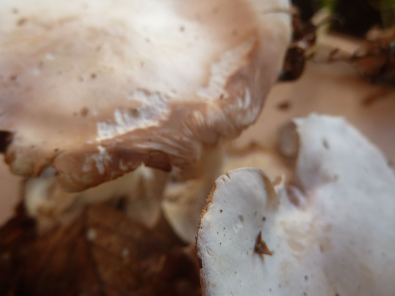 Gestern habe ich diese Exemplare im Eichen-Buchen-Mischwald auf Lösslehm gefunden. In unmittelbarer Nähe zum Fundort war sehr stark zersetztes Holz. Zunächst dachte ich an Mehl-Räslinge, die sind es aber nicht. Der Geruch ist deutlich anders, schwer zu beschreiben, aber definitiv nicht mehlig-gurkig. Die Lamellenfarbe ich ebenfalls anders, ohne Rosastich und sehr markant ist die Stielbasis.