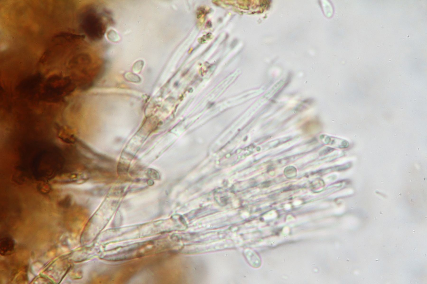 2. Der weiße Flächige Belag ist etwas Dactylaria-ähnliches, aber die kleinen weißen Punkte sind die Gliocladium-ähnlichen Gebilde