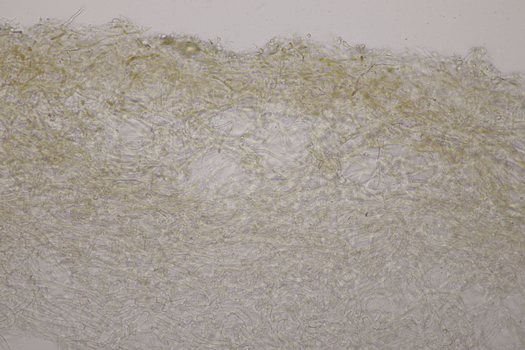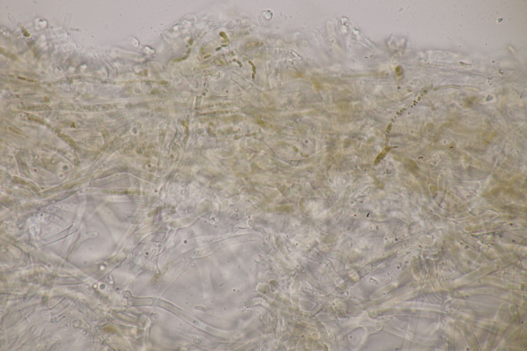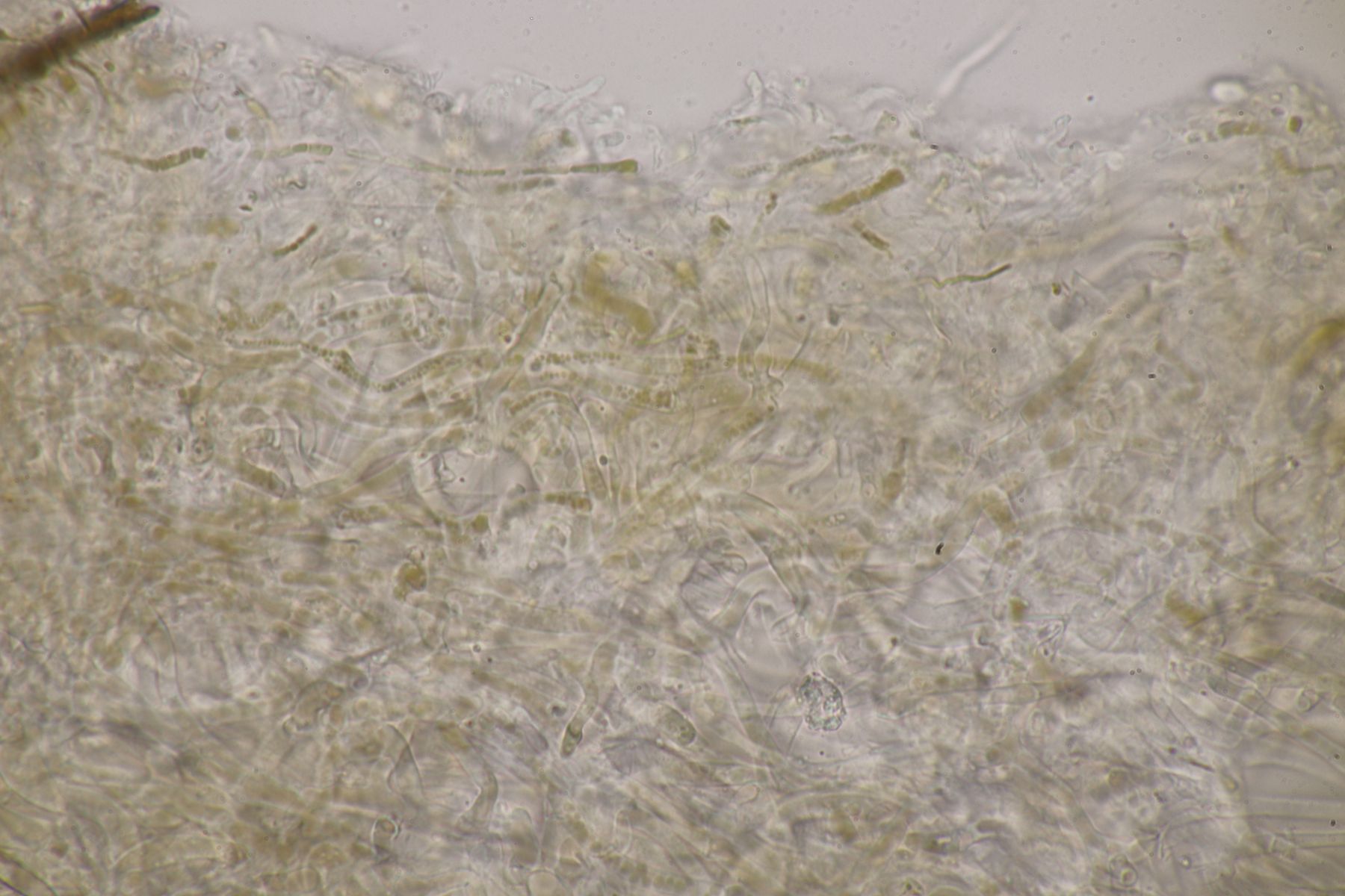 H. quieta ohne Wanzengeruch und ohne lachsfarbenen Reflex in den Lamellen ist schon ungewöhnlich. Die Sporen liegen auch schon im oberen Bereich. Wenn ich davon ausgehe, dass die Tramhyphen der Lamellen eher kurz septiert waren, sehe ich aber auch keine andere Möglichkeit.. Die Sporen wären ja auch noch im unteren Bereich von H. acutoconica, aber dann müssten die Hyphen der Lamellentram lang septiert sein.