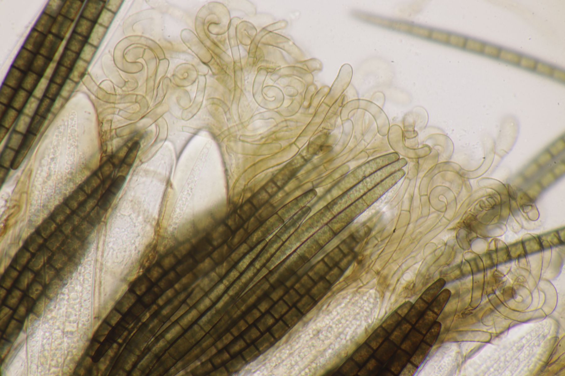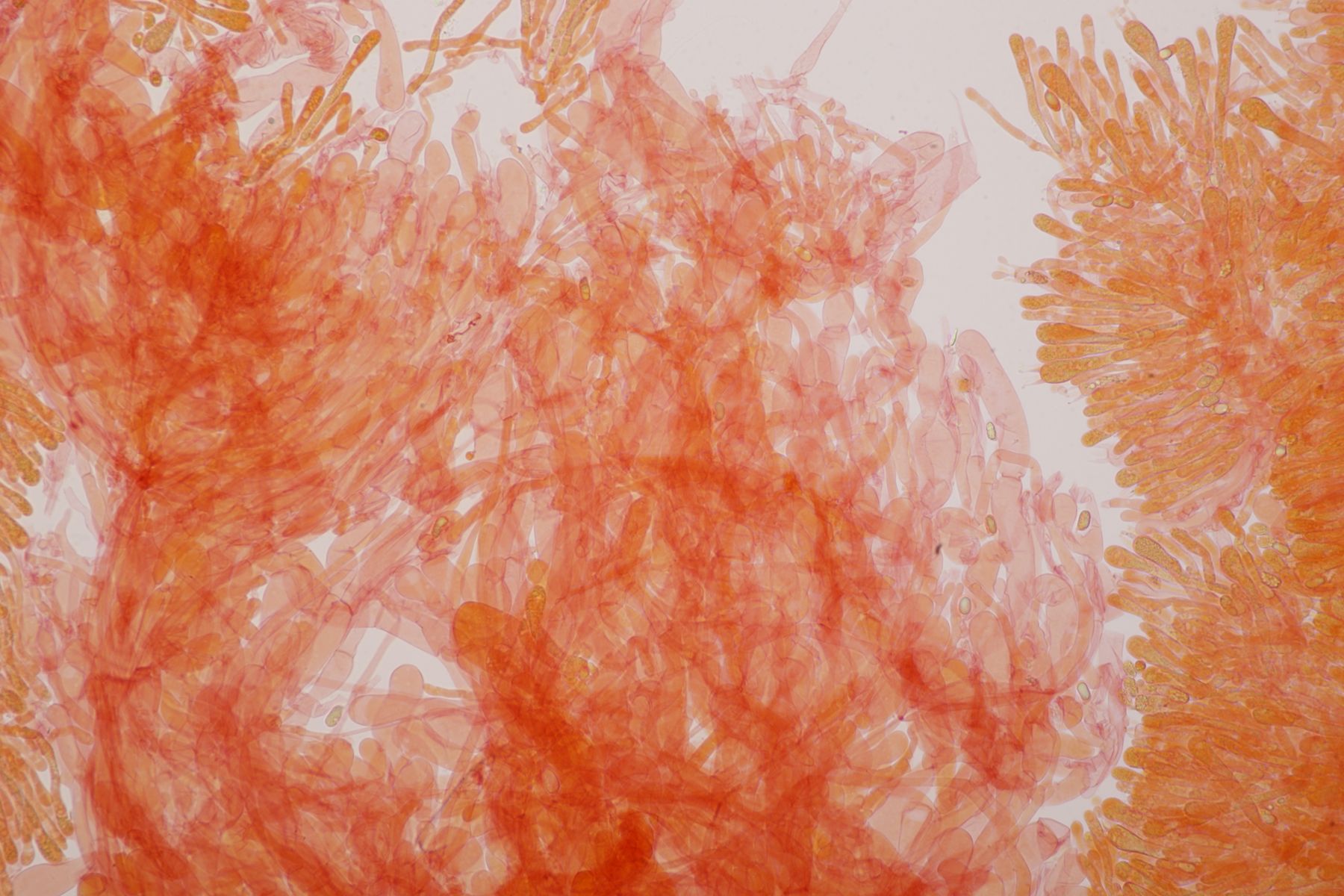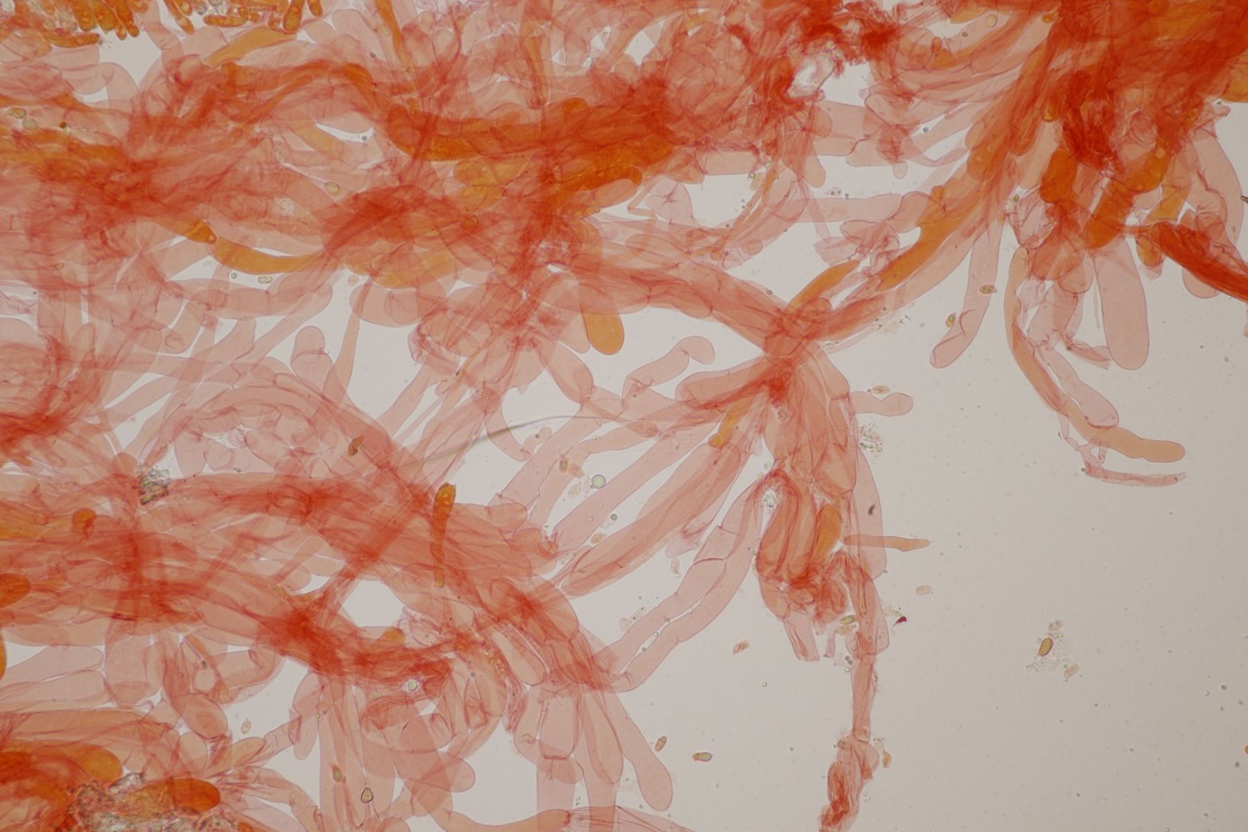 H. quieta ohne Wanzengeruch und ohne lachsfarbenen Reflex in den Lamellen ist schon ungewöhnlich. Die Sporen liegen auch schon im oberen Bereich. Wenn ich davon ausgehe, dass die Tramhyphen der Lamellen eher kurz septiert waren, sehe ich aber auch keine andere Möglichkeit.. Die Sporen wären ja auch noch im unteren Bereich von H. acutoconica, aber dann müssten die Hyphen der Lamellentram lang septiert sein.