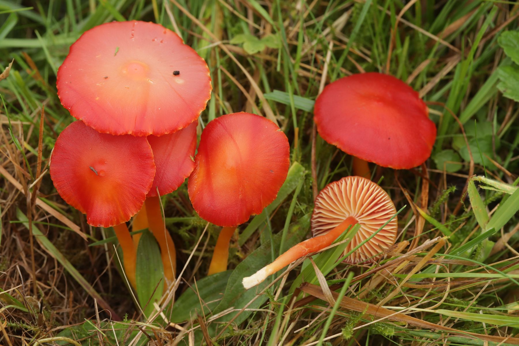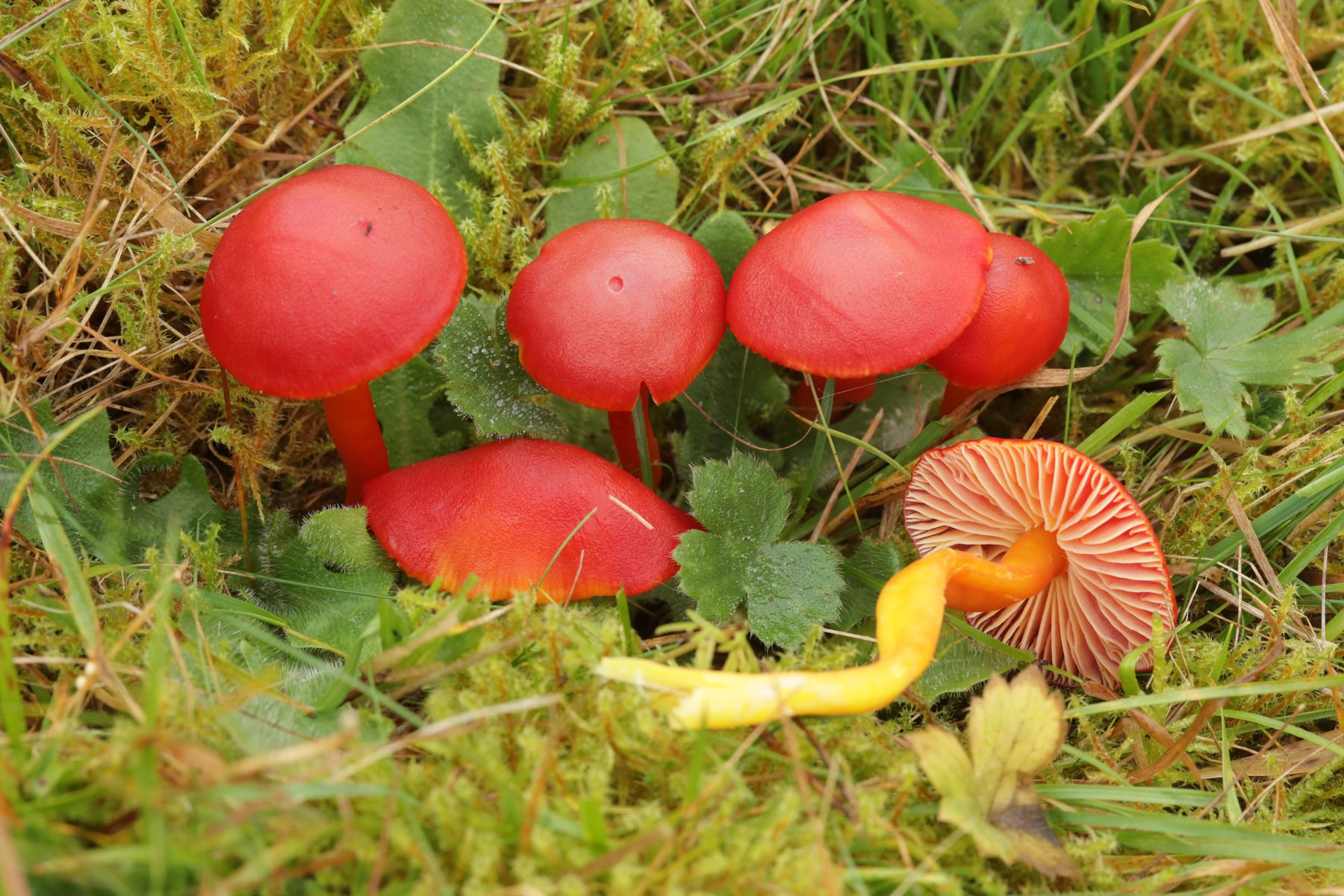 7. Hygrocybe coccinea wuchs stellenweise in Massen oder um es mit Wutzi zu sagen: Als hätte da jemand Smarties ausgekippt