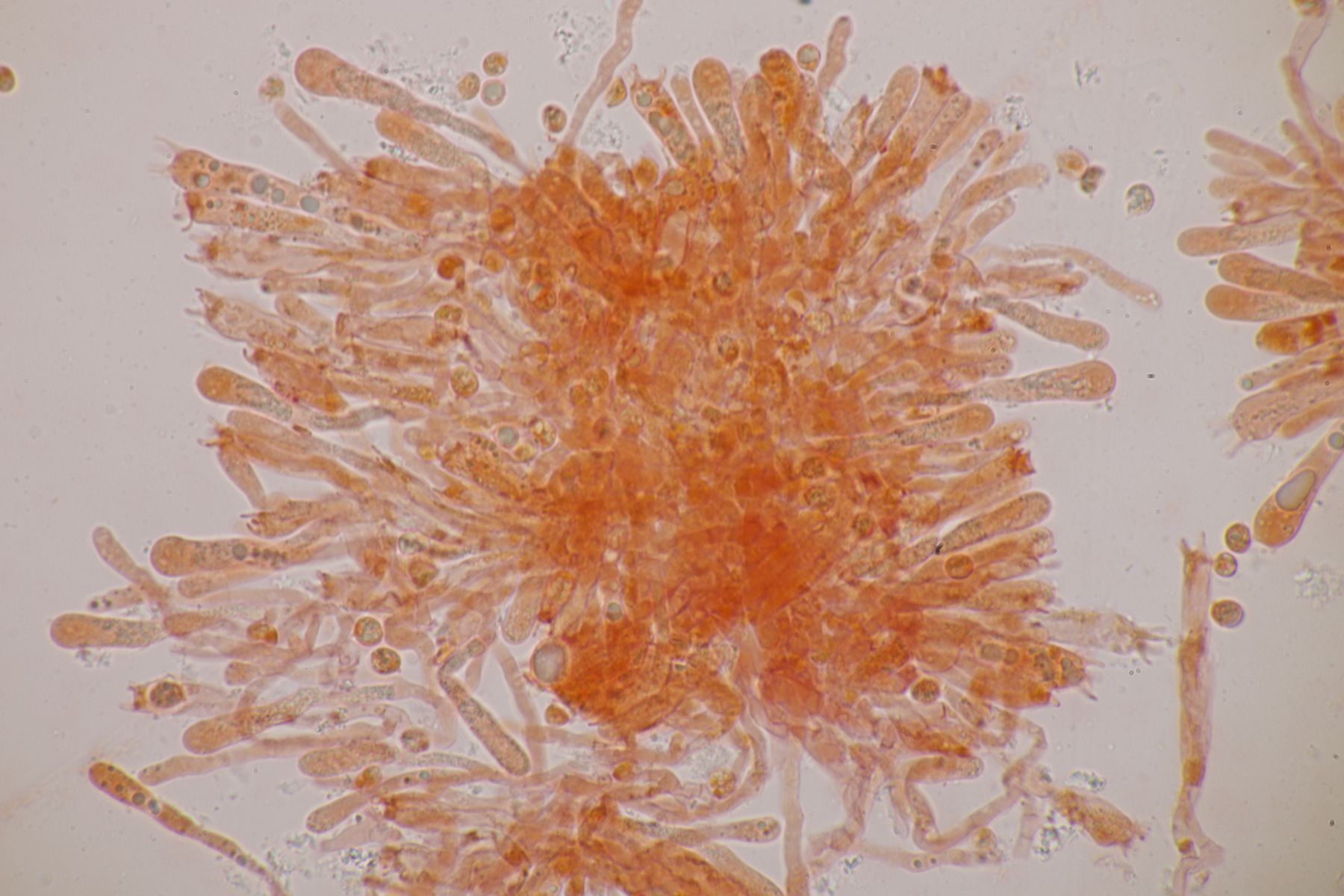 H. tenuicystidiatus war mein erster Gedanke, bis ich die Lamellen nochmal genau angeschaut habe und dann im Schlüssel zu weitstehend tendierte. Nach dem Lesen der Beschreibung von pallidus L = 10 -17, denke daran wieder umzuschwenken. Besonders die Pigmentierung der Caulozystiden ist ein gutes Argument.
