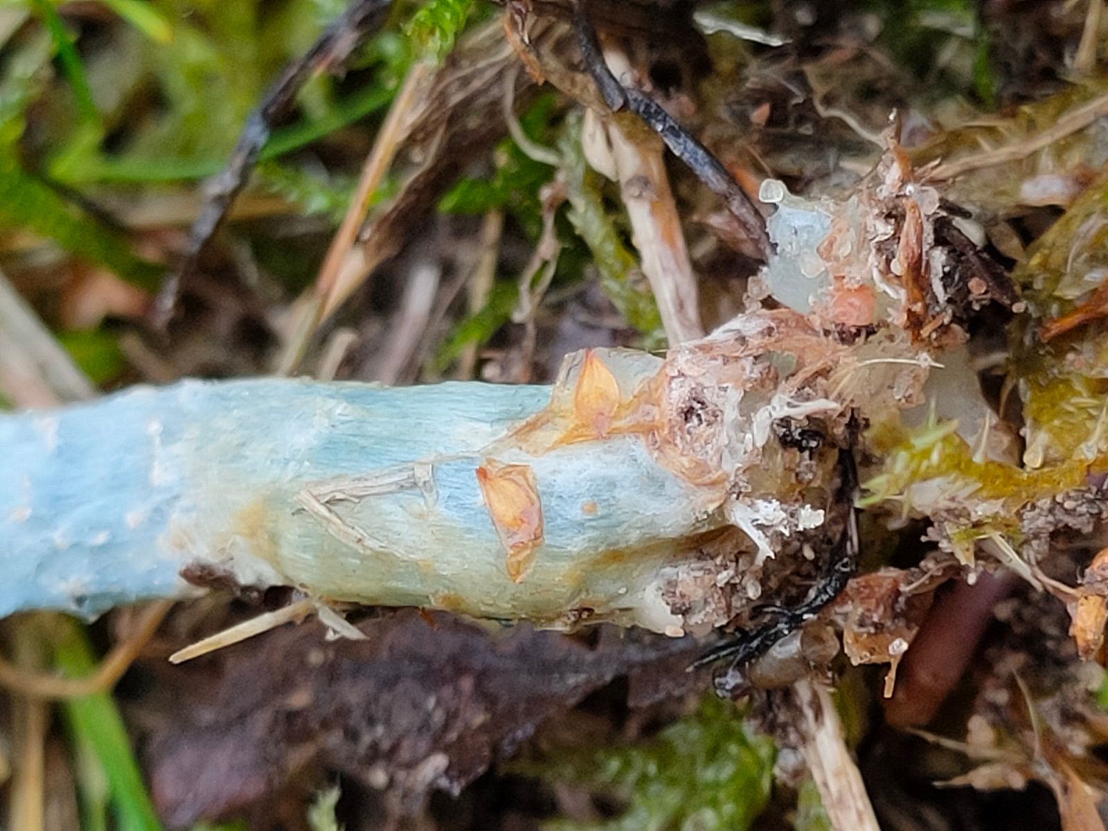 unter das Röckchen und sehe diesen tollen bauen Stiel der von der Ringzone bis zur Stielbasis blau beschuppt ist.