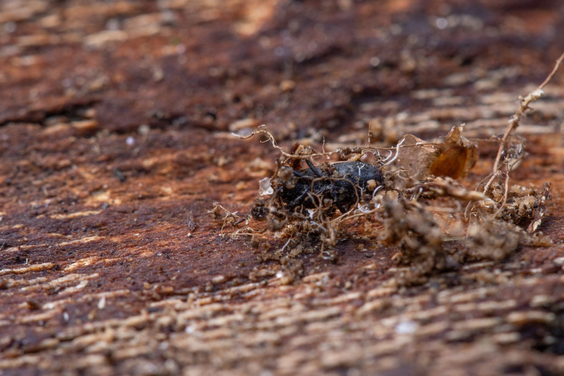 1. Die kleinen weißen Fäden sind die Hirsutella