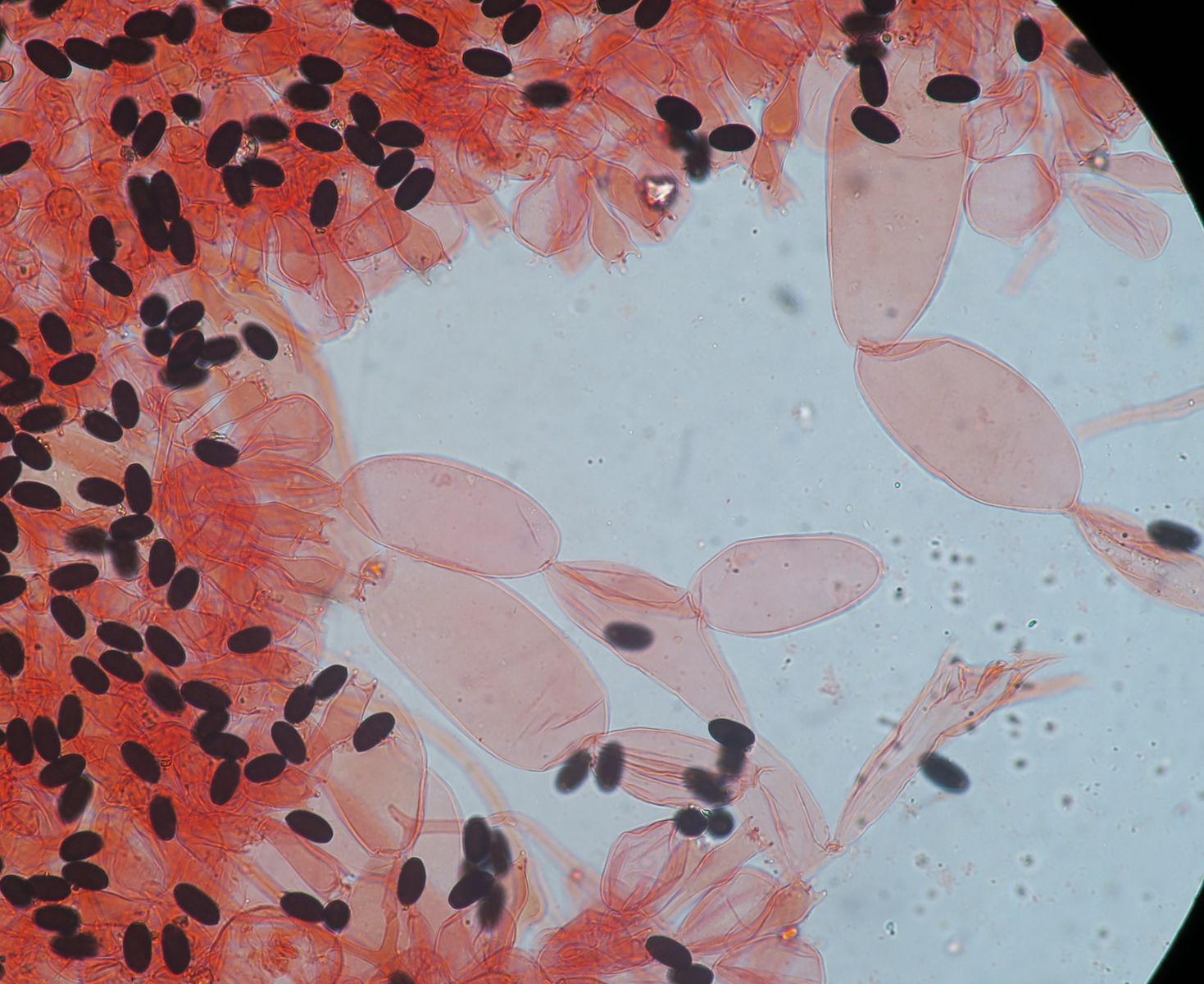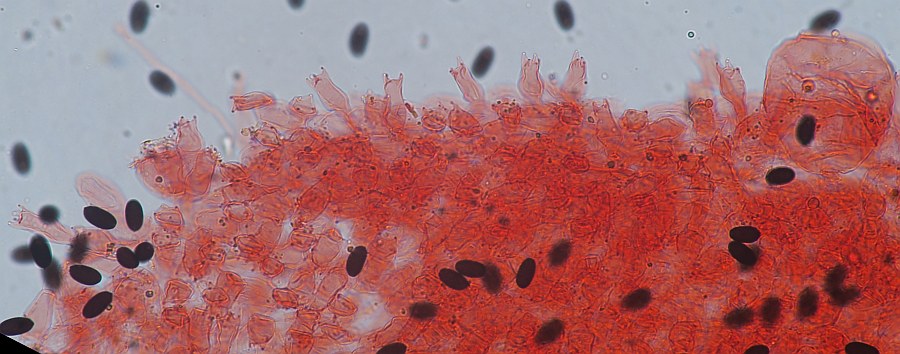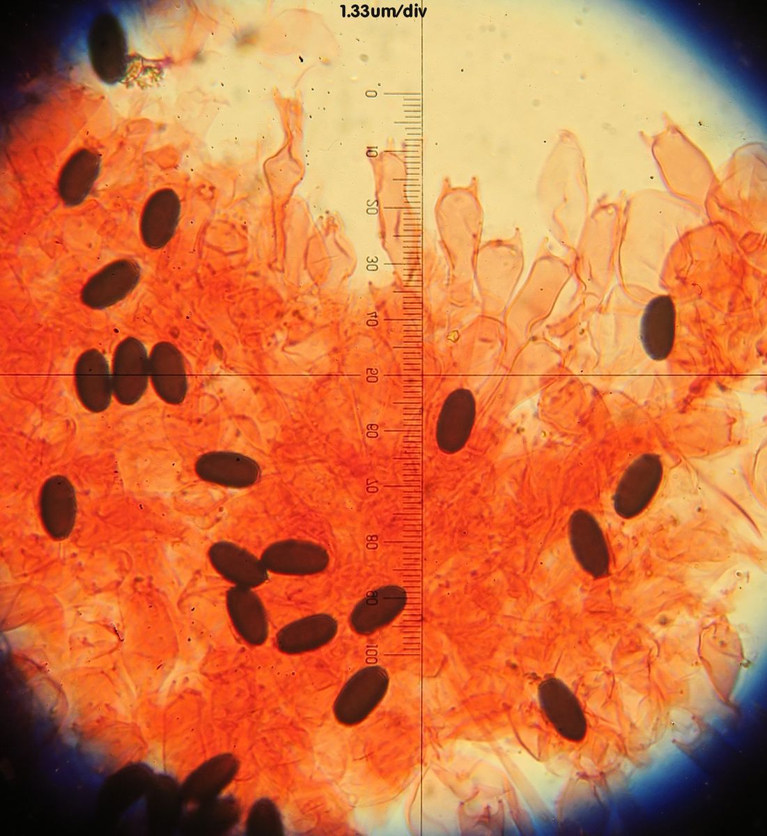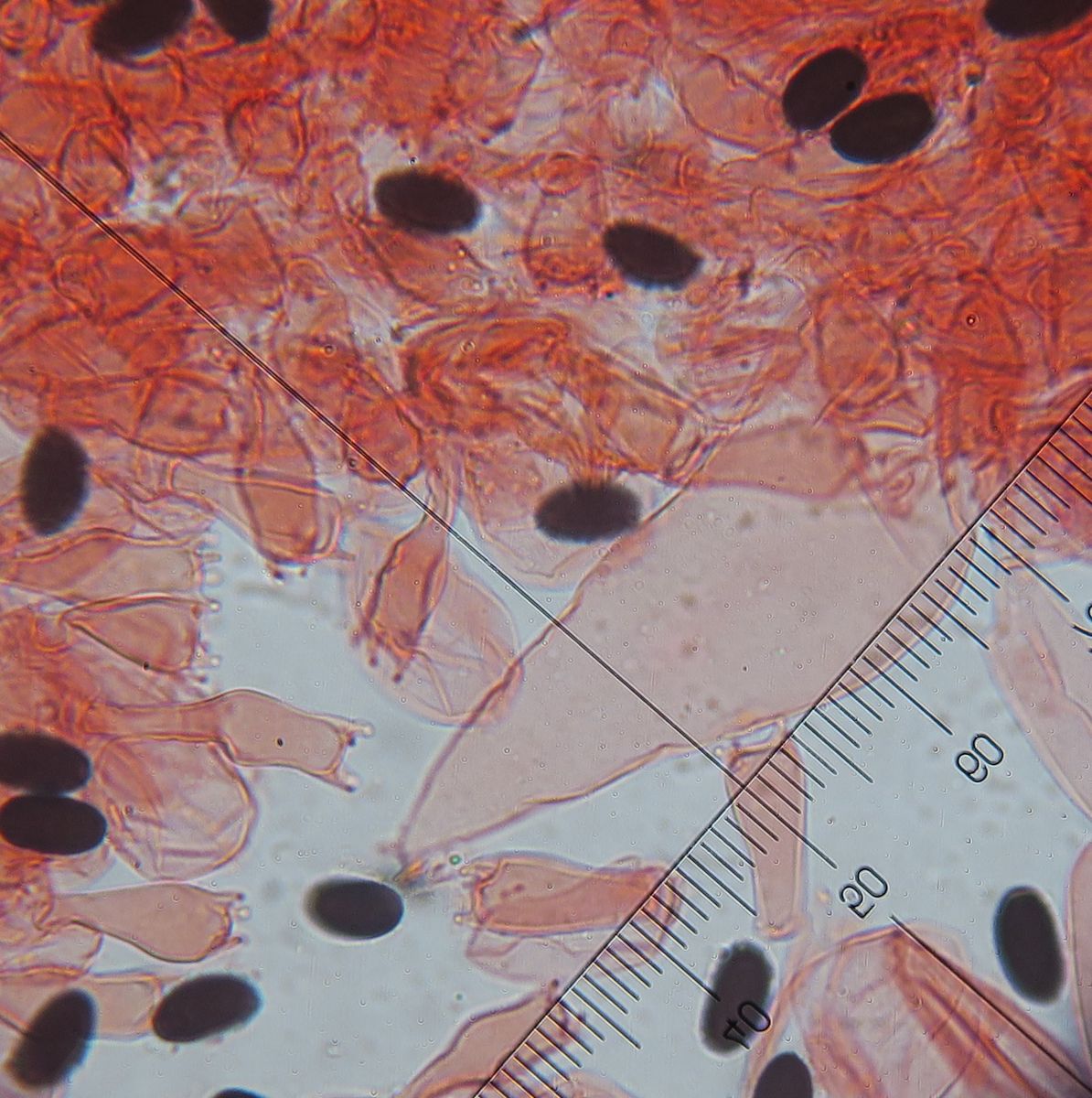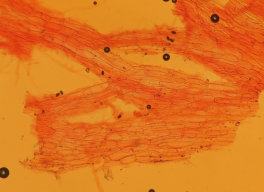 Veil composed of cylindrical hyphae, mostly straight, variable in size but uniformly arranged; (24-)43(-62.4) x (9.3-)13.3(18.3)um