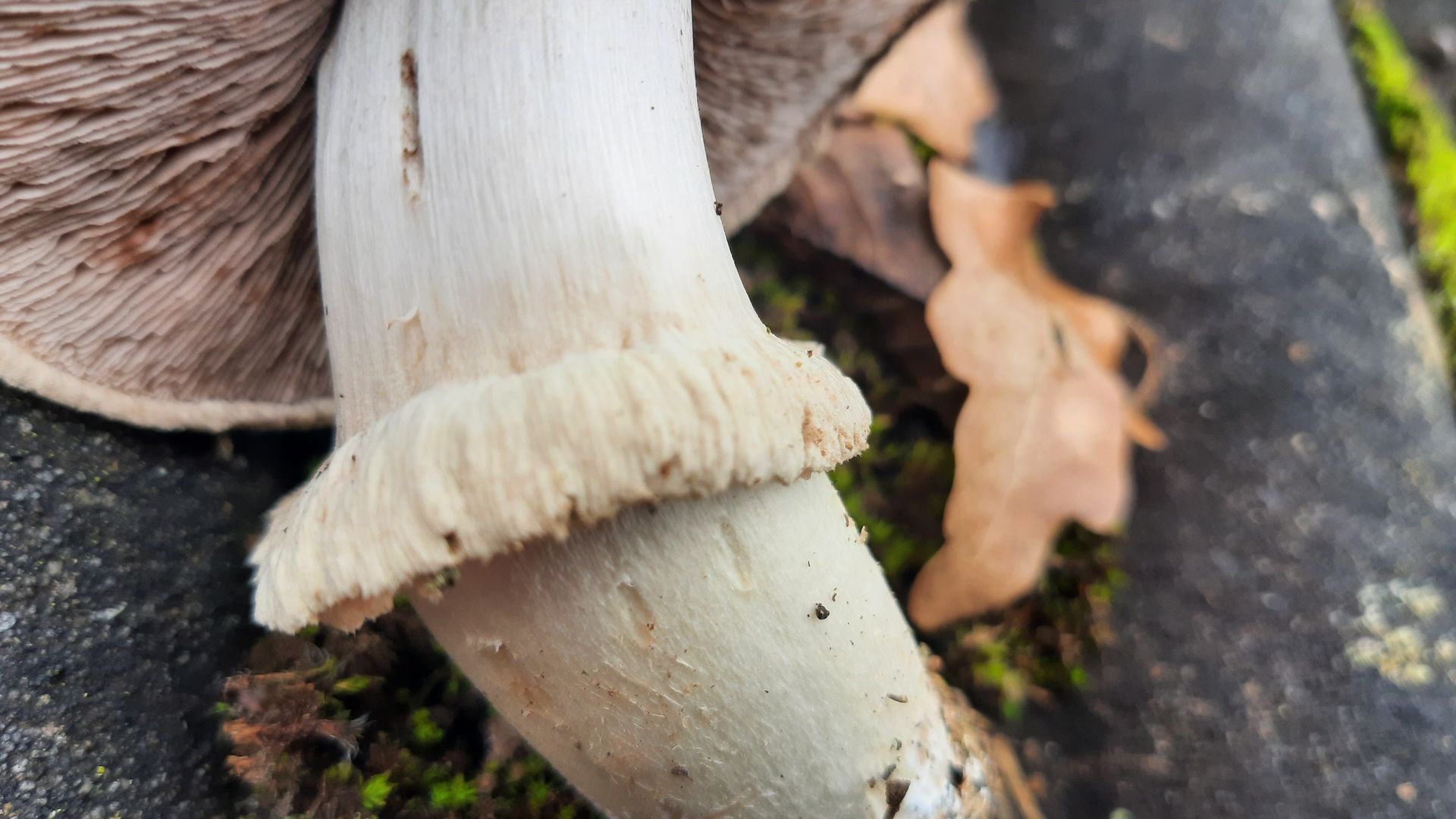 Einer der Waldchampis ist das mit Sicherheit. Allerdings sind die mikropflichtig. Ein wichtiges makroskopisches Merkmal, was du checken kannst, ob die beim Eintrocknen schwärzen.