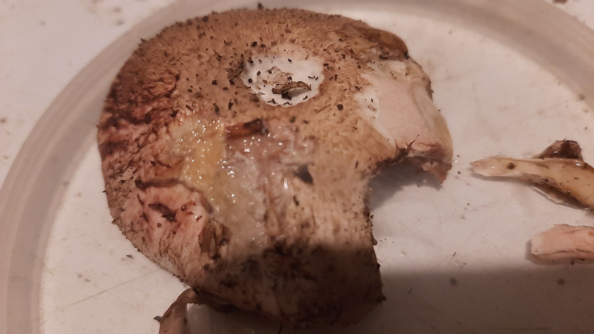 Was mich aber stört ist der fehlende Geruch. Die kleinen Wald-Champignon habe ich mit einem angenehmen pilzigen Geruch in Erinnerung, diese Exemplare hier riechen nicht so.