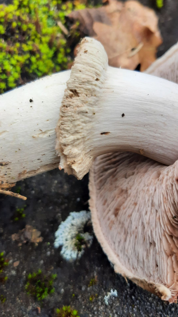Einer der Waldchampis ist das mit Sicherheit. Allerdings sind die mikropflichtig. Ein wichtiges makroskopisches Merkmal, was du checken kannst, ob die beim Eintrocknen schwärzen.