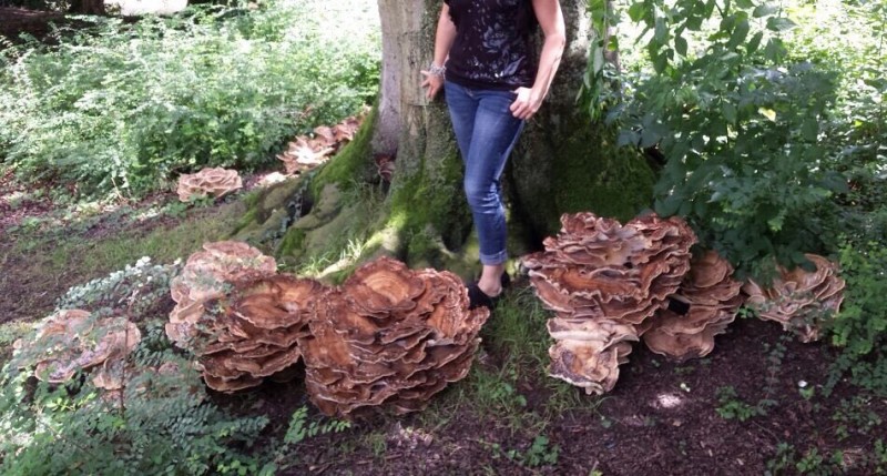 1.: Meine Tochter am Baum mit dem wirklich riesigen Riesenporling.