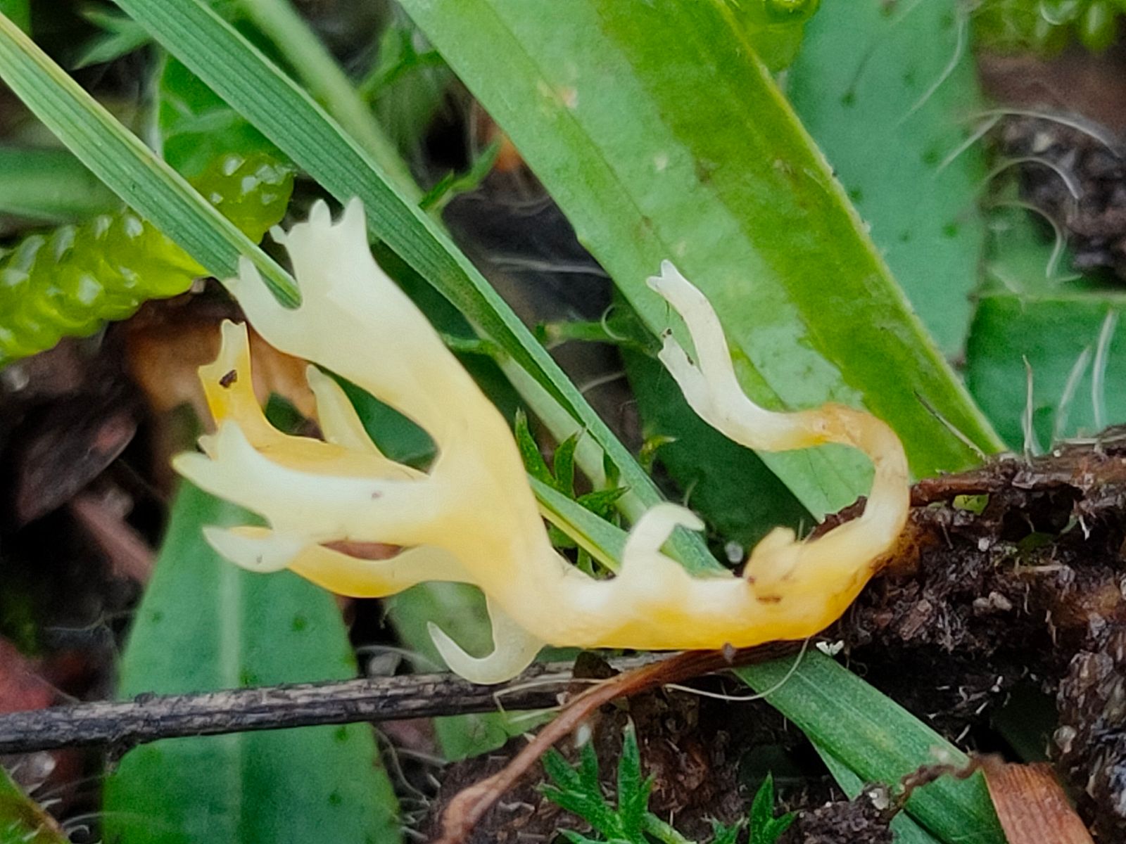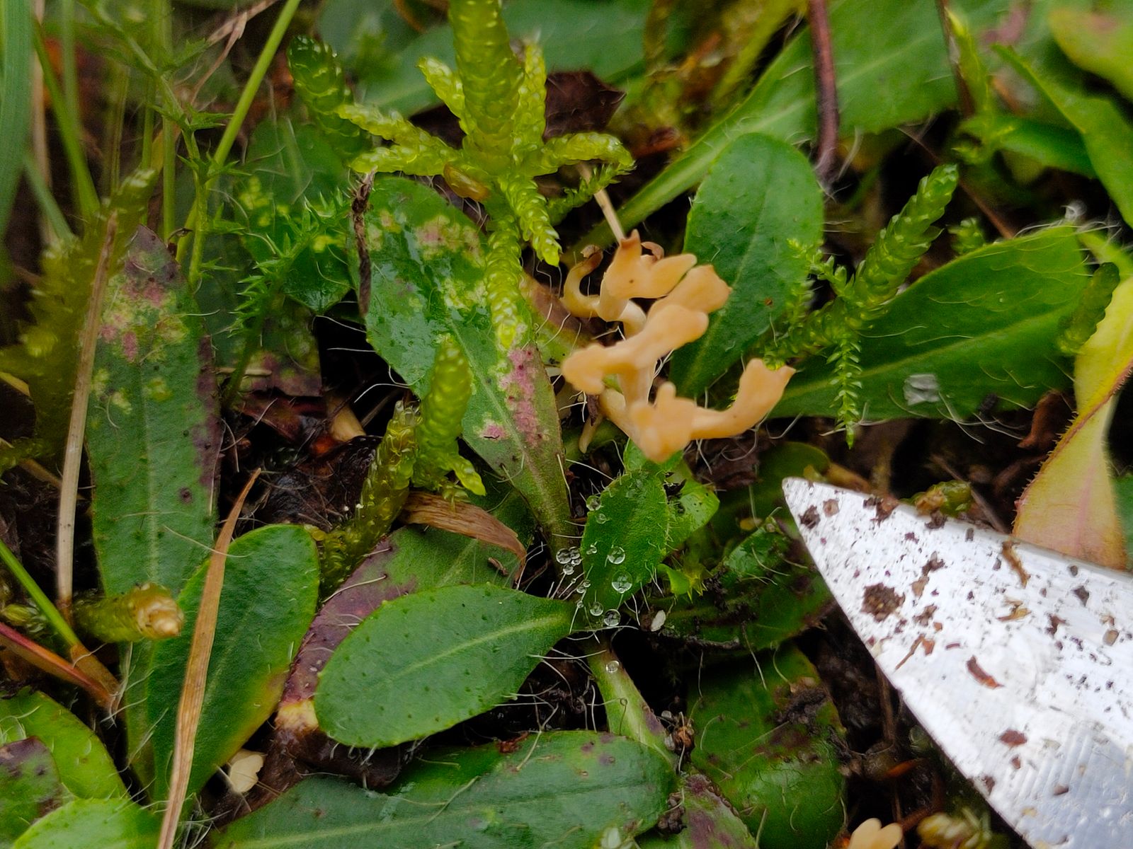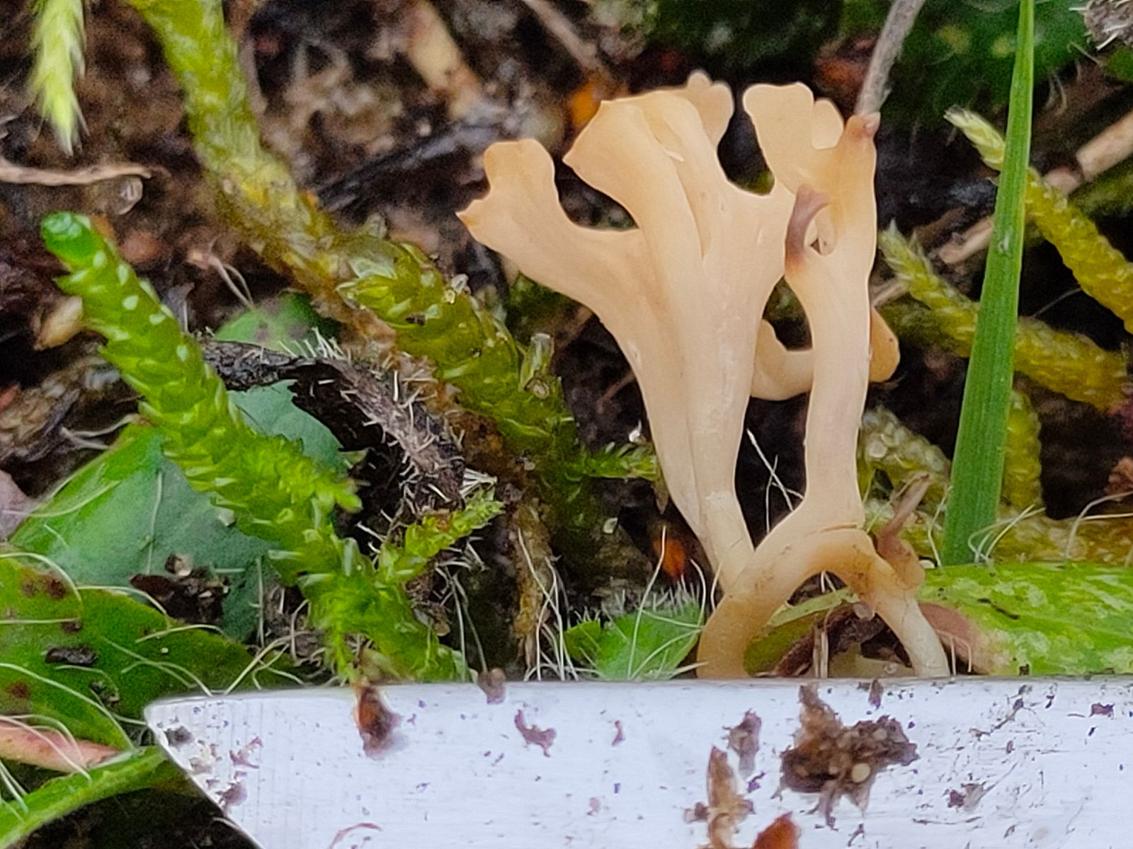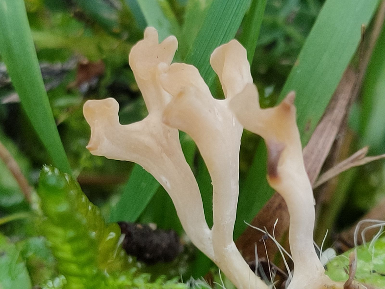 3. Ramariopsis: In 20 cm Entferung vom gelben Hygrocybe finde ich diese kleine Wiesenkoralle. Jung gelblich (um 1 cm!) und