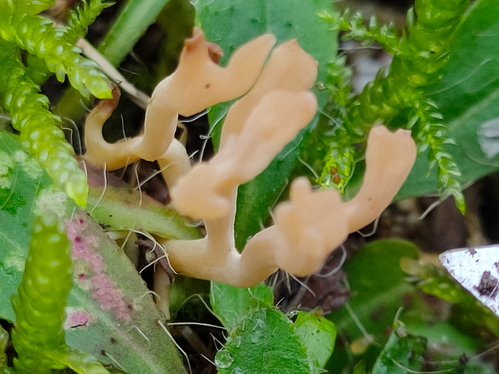 beige, blass Braun und jung mit gut erkennbaren gelbem Ton. Vielleicht ist es Ramariopsis subtilis.