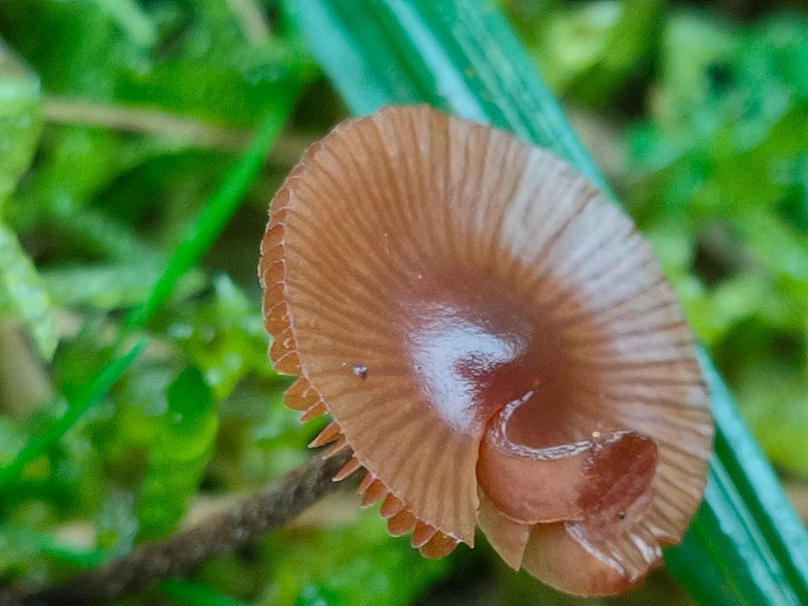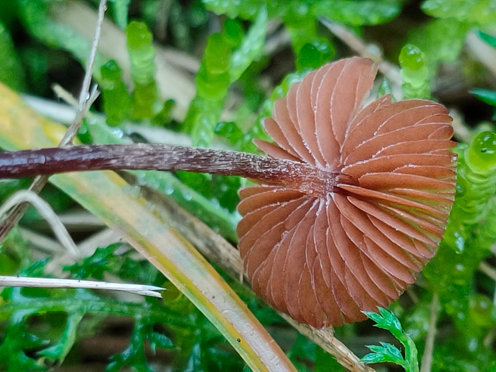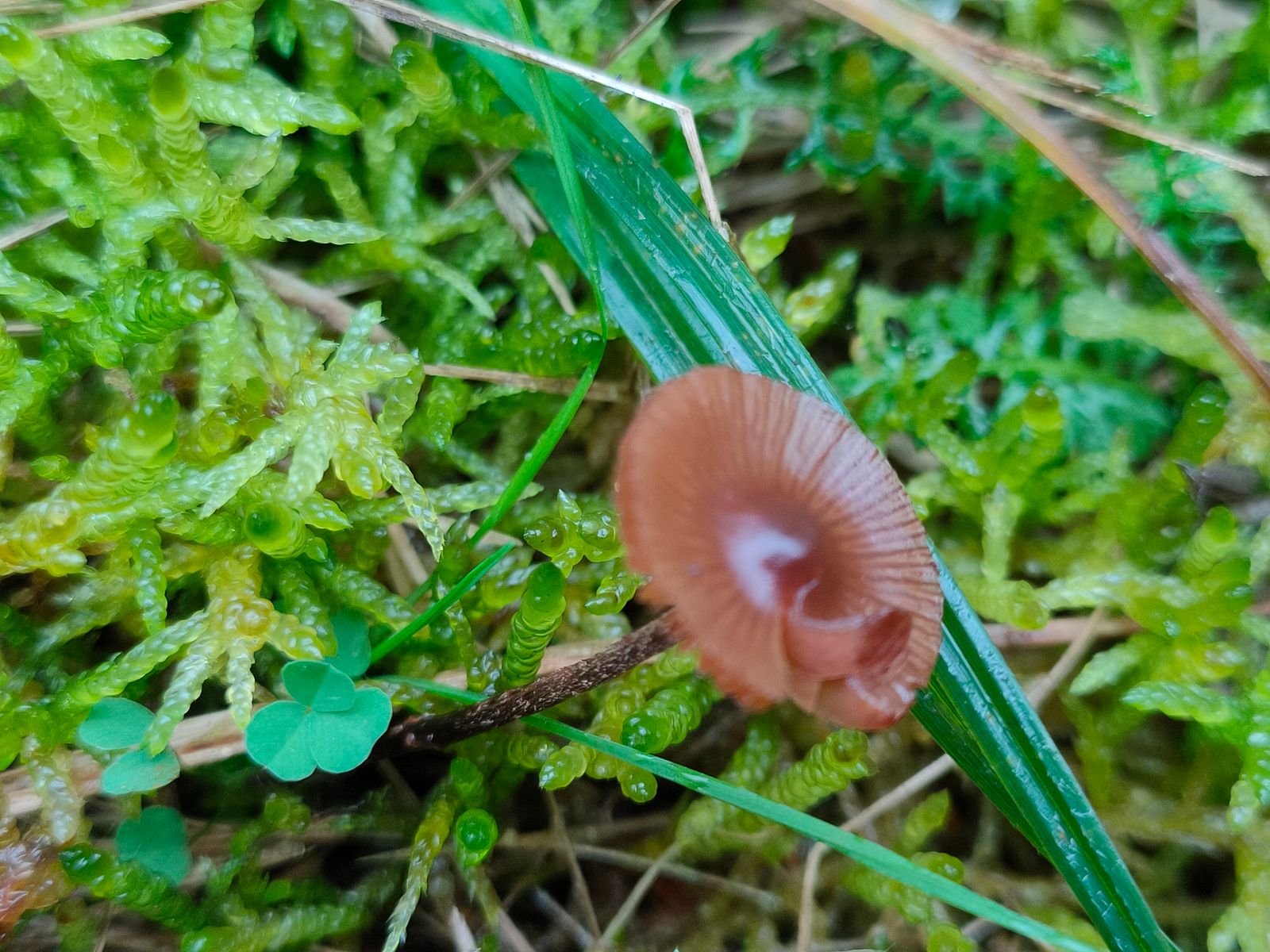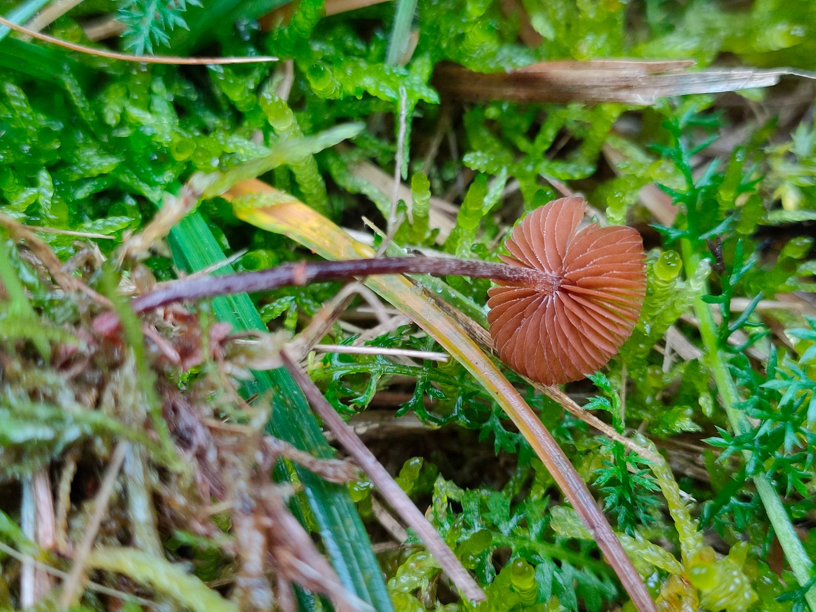 4. Galerina?: Ein filigraner kleiner FK (1-2 cm) der an eine Galerina oder Conocybe erinnert. Diese Forme kennen ich