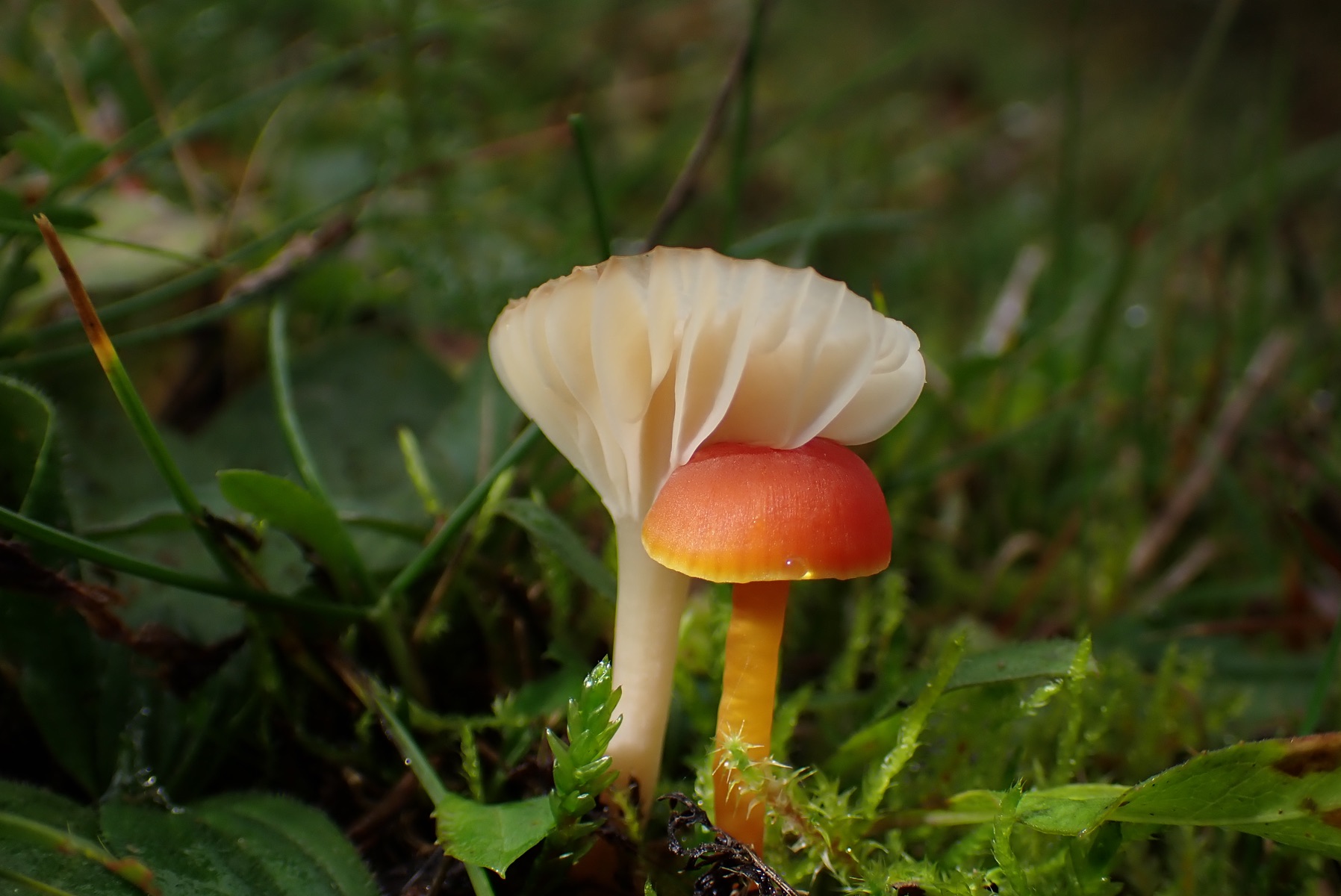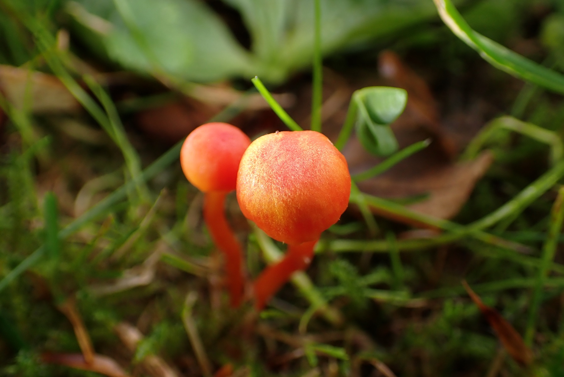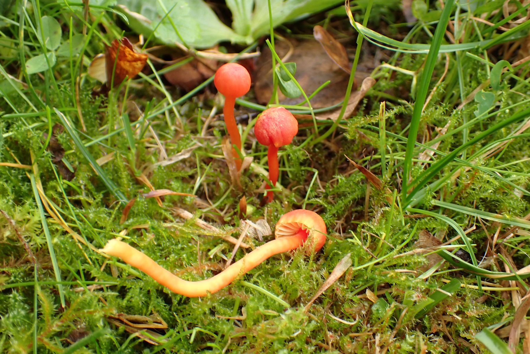 11. Hygrocybe mucronella, der bittere Saftling. Sehr kleine aber sehr leuchtende Gesellen