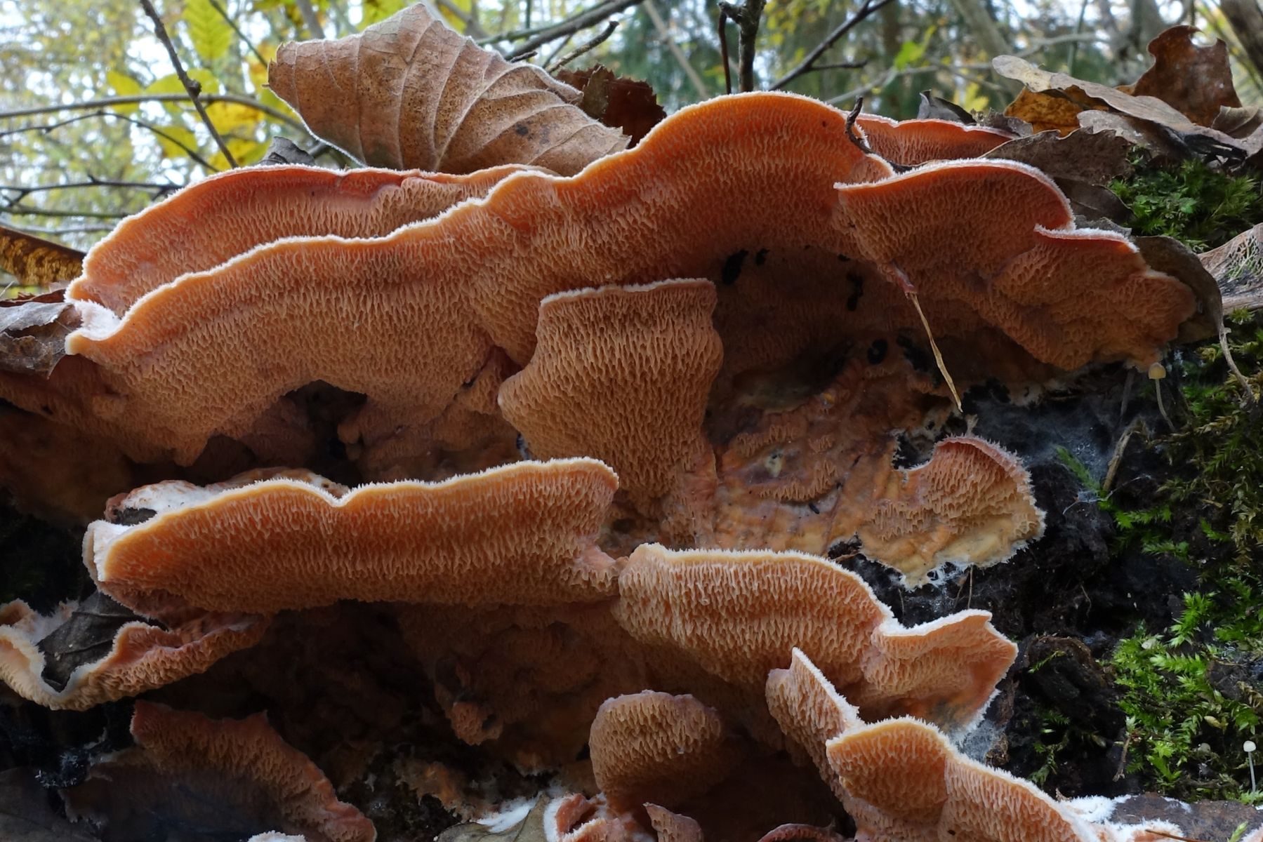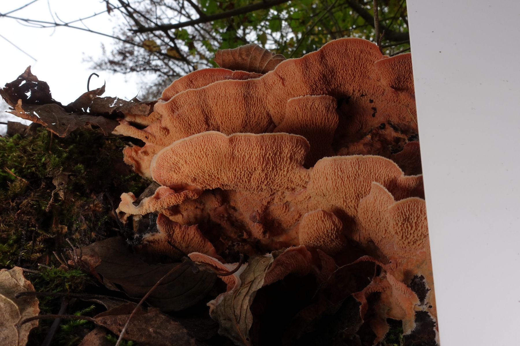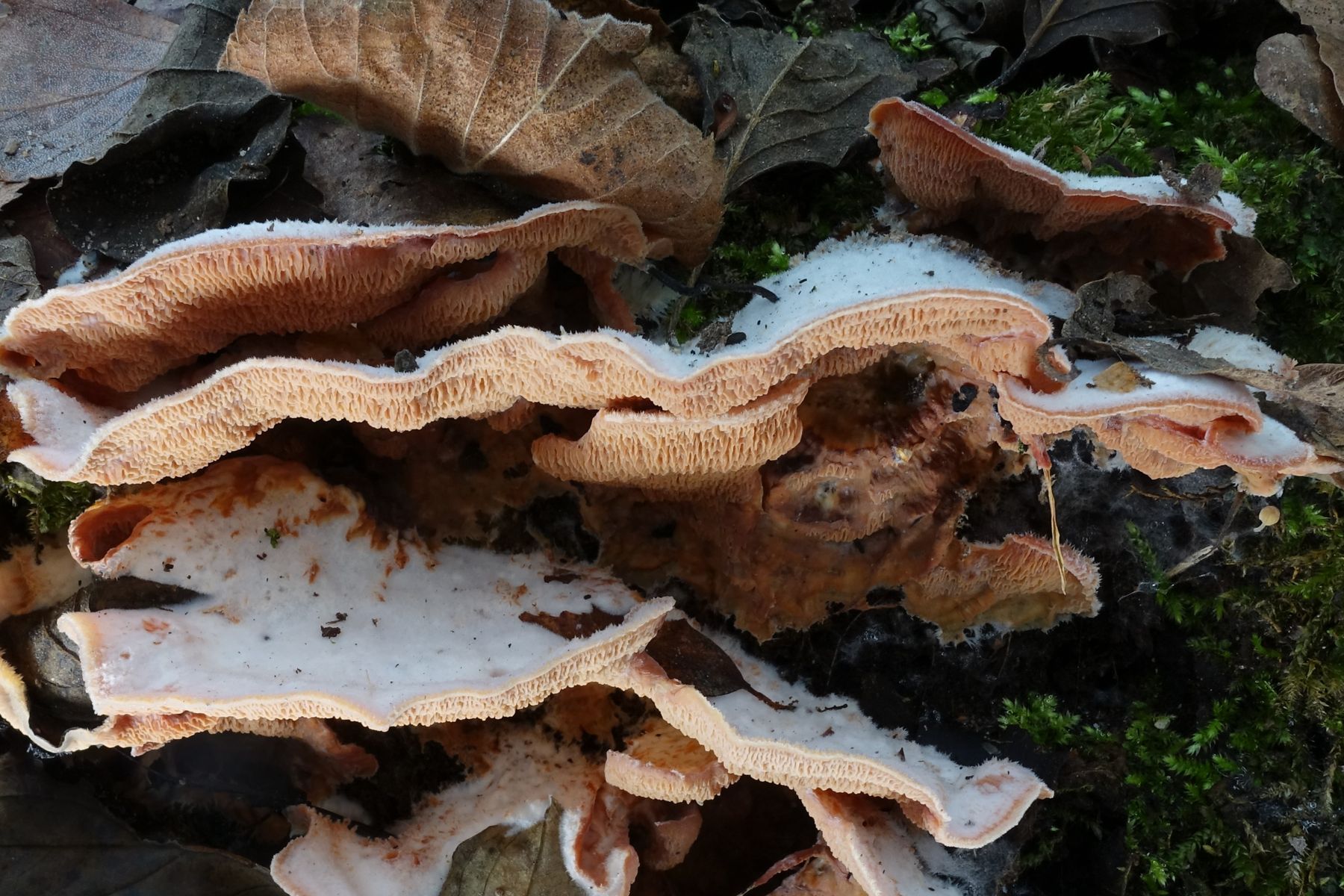 Bei Aufnahmen dieses Pilzes habe ich nicht die Absicht gehabt, um seine Bestimmung zu bitten. Auch deswegen habe kein Schnittbild gemacht. Die Beschaffenheit des FKs und die spezifischen Farben verleiten mich jedoch dazu, nach seiner Bestimmung trotzdem zu fragen.