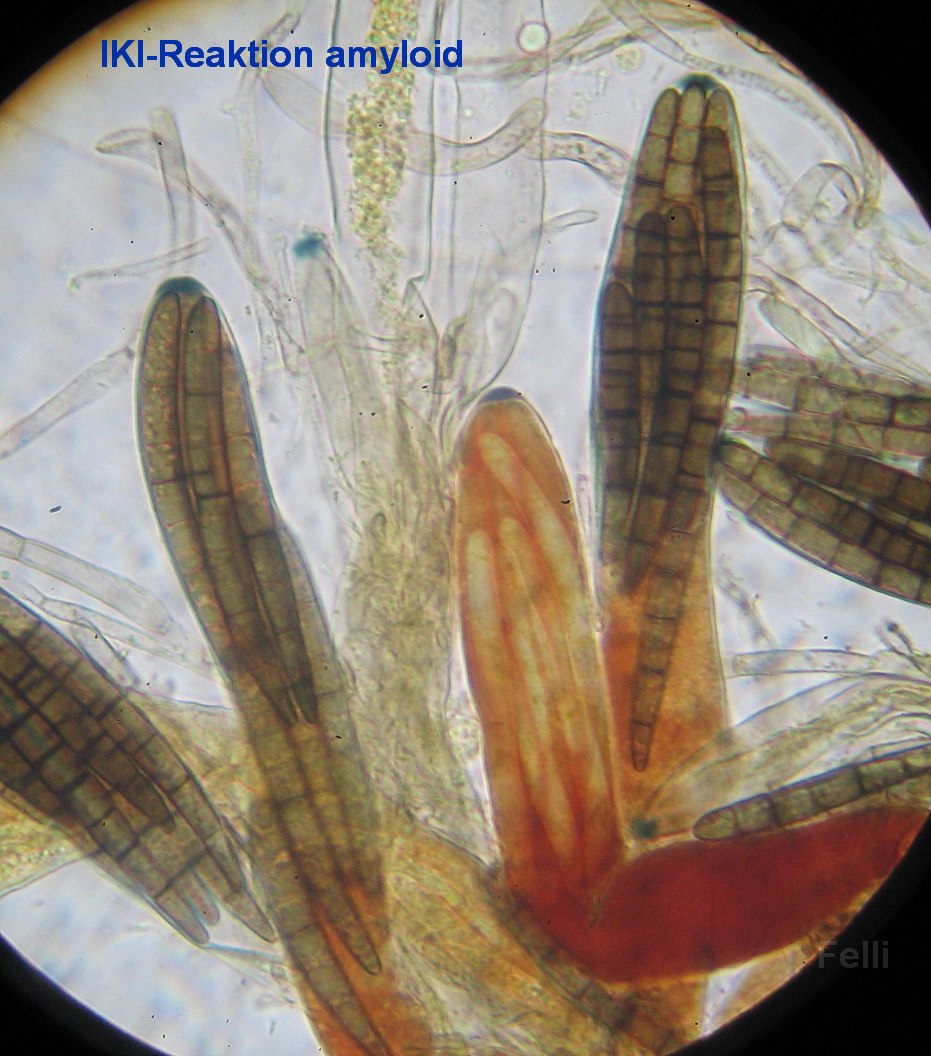 Nach der ersten Mikroskopie mit Sporen von 55-68 x5-6µ Größe und einem stark geschupptem Stiel