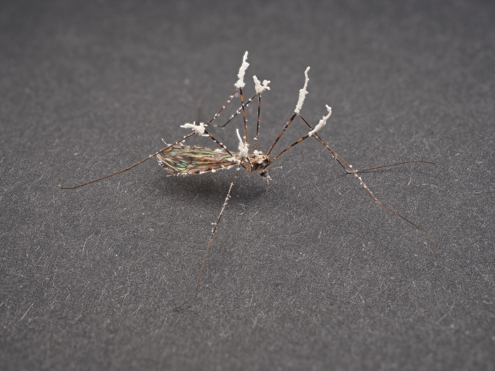 am letzten Wochenende fand ich auf einem Familienausflug zu einer kleinen öffentlich zugänglichen Höhle im fränkischen Jura große Mengen Schnaken an den Wänden. Ob sie dort überwintern oder auf ihren Tod warten entzieht sich meiner Kenntnis. Jedenfalls fiel mir auf, dass viele Schnaken an den Gelenken weisse Auswüchse trugen. Ich konnte nicht umhin eine Probe einzustecken. Eine Internetrecherche erbrachte keine sonderlich ähnlichen Gattungen. Spezielle Literatur besitze ich nicht bzw ist oft nicht öffentlich zugänglich.