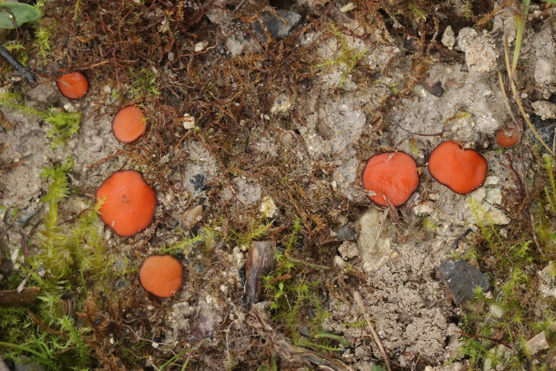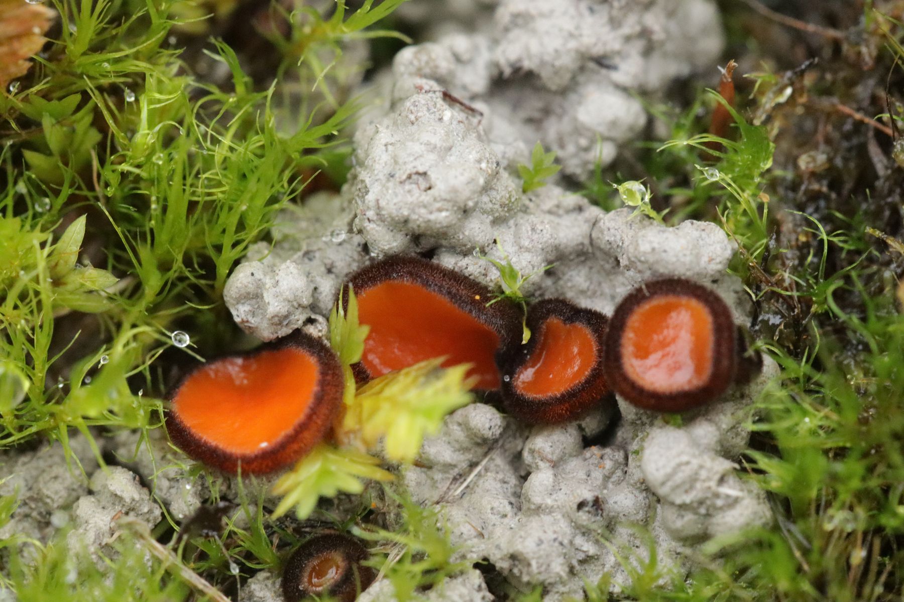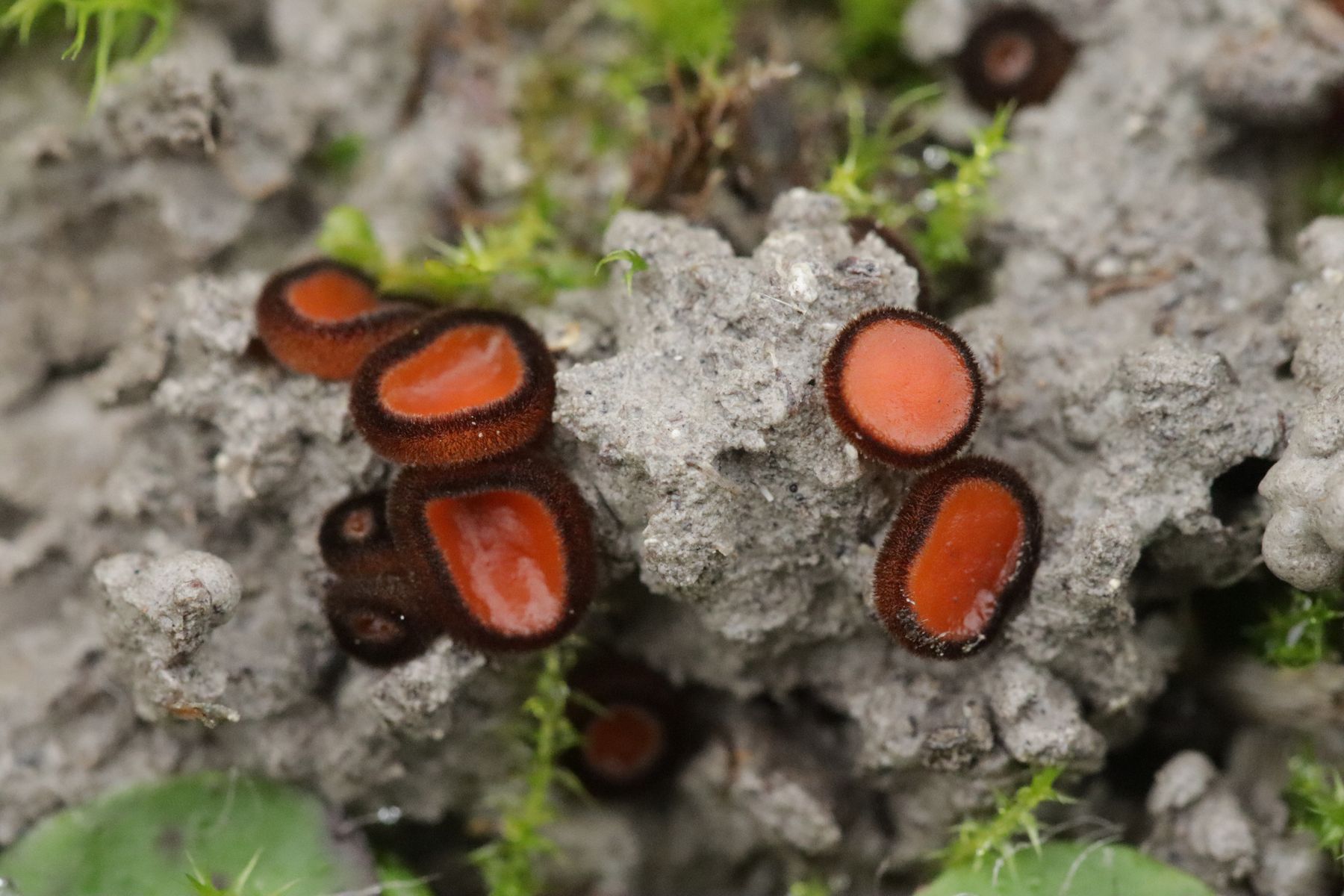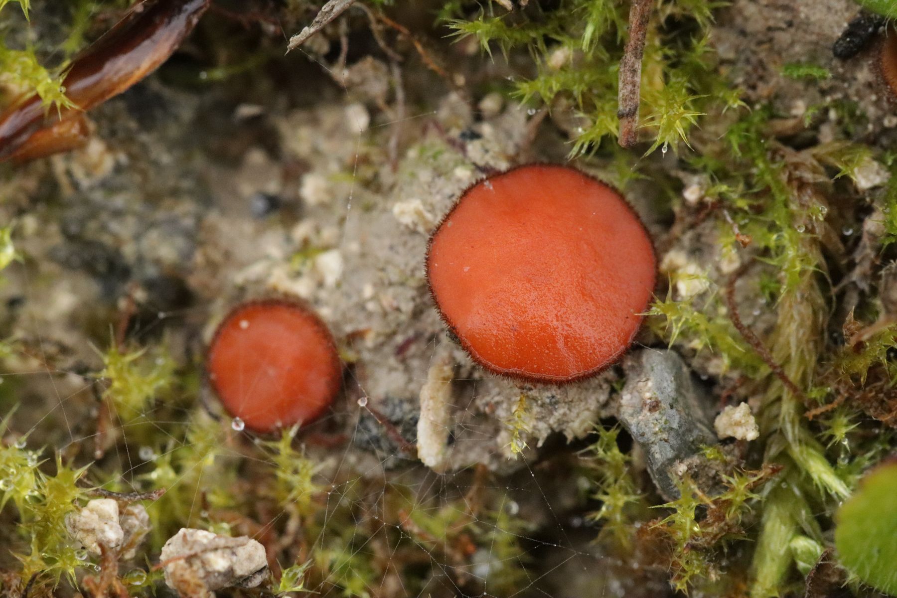 1. Scutellinia barlae wuchs stellenweise massenhaft auf dem kalkhaltigen Lehmböden