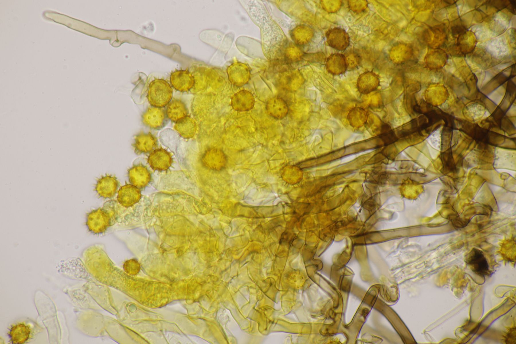 ich war auch mit Björn in Lengerich und nachdem unsere Pilzfreundin Tanja den Fund bei ihrem ersten Besuch bereits als S. barlae festgemacht hatte, haben Björn und ich das nach unseren Untersuchungen bestätigt. S. minor und S. barlae sind definitiv schwierig zu trennen. Ich bin diesem Schlüssel hier gefolgt (https://ascomycete.org/Portals…Org%2011-06%20297-308.pdf) und habe die rein globosen Sporen (bei meiner Kollektion), die konstant kurzen Haare und die recht einheitlich großen Warzen als Bestimmungsmerkmale zur Abgrenzung genutzt.