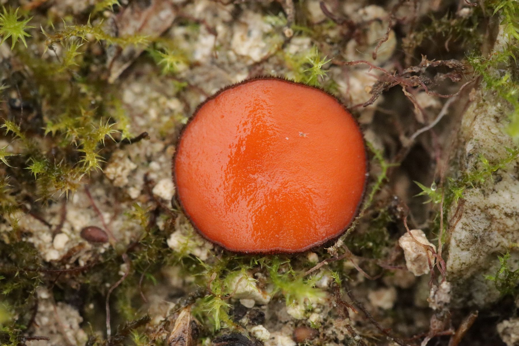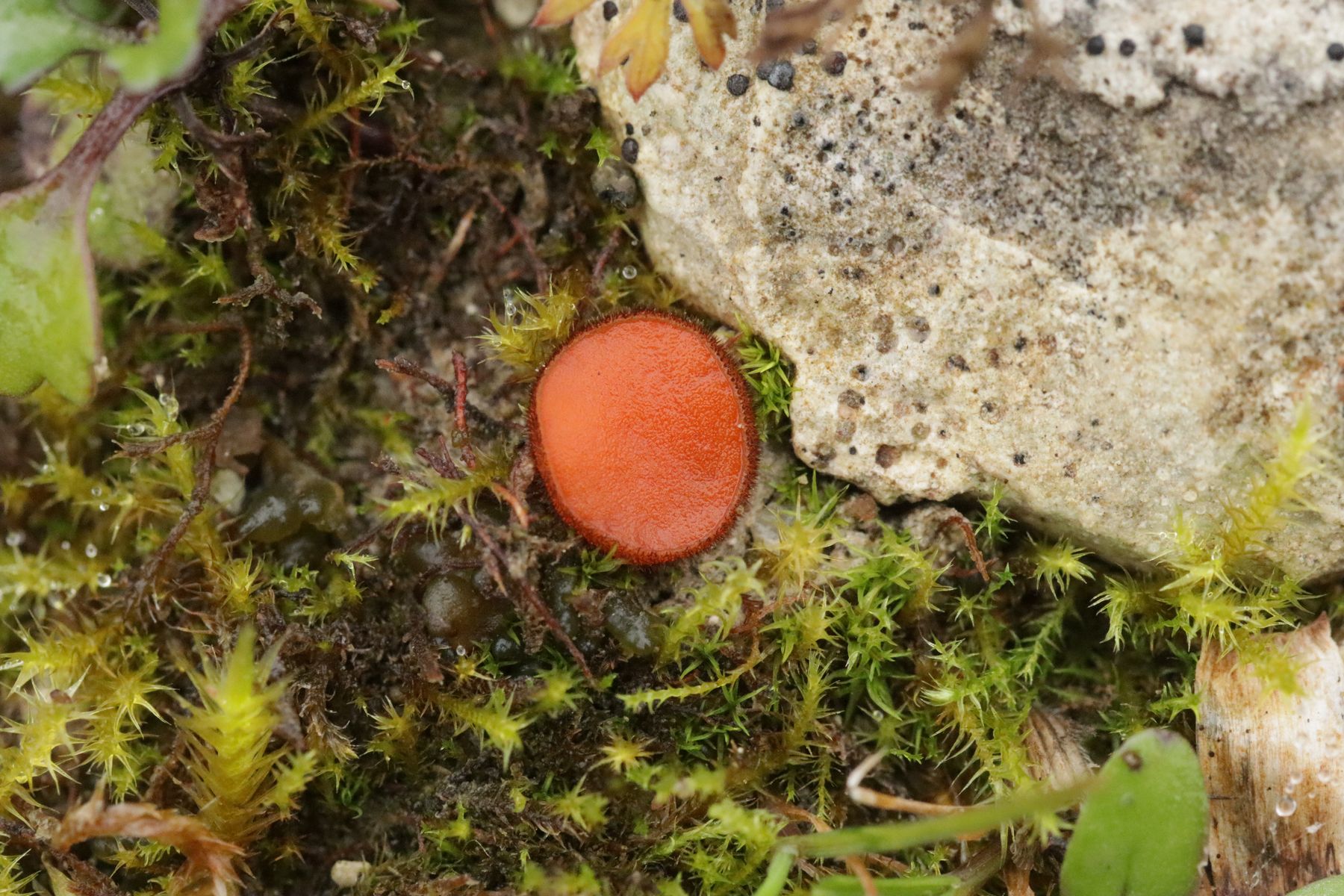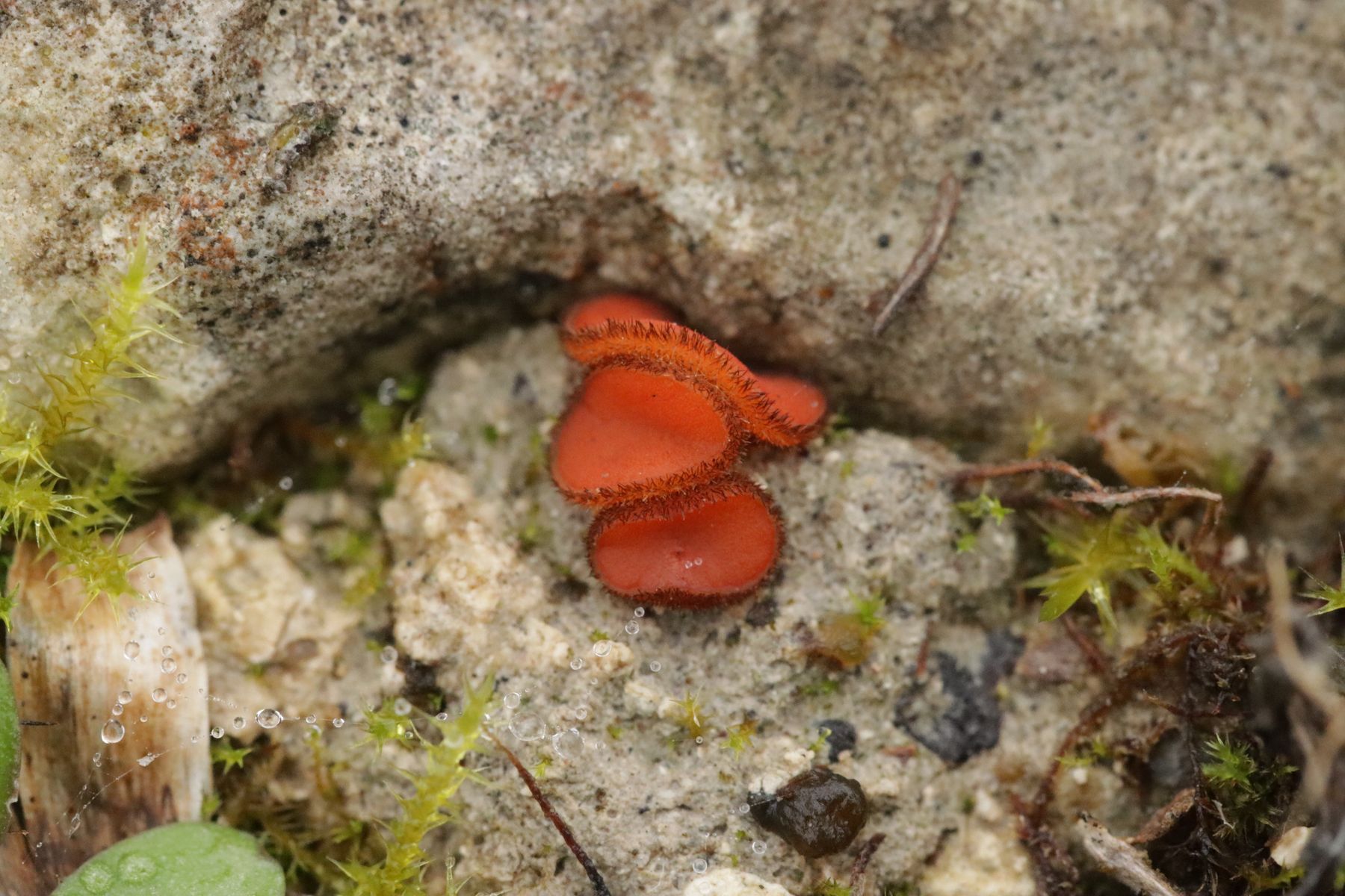 1. Scutellinia barlae wuchs stellenweise massenhaft auf dem kalkhaltigen Lehmböden
