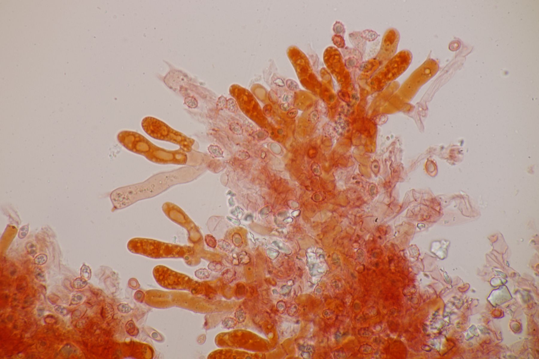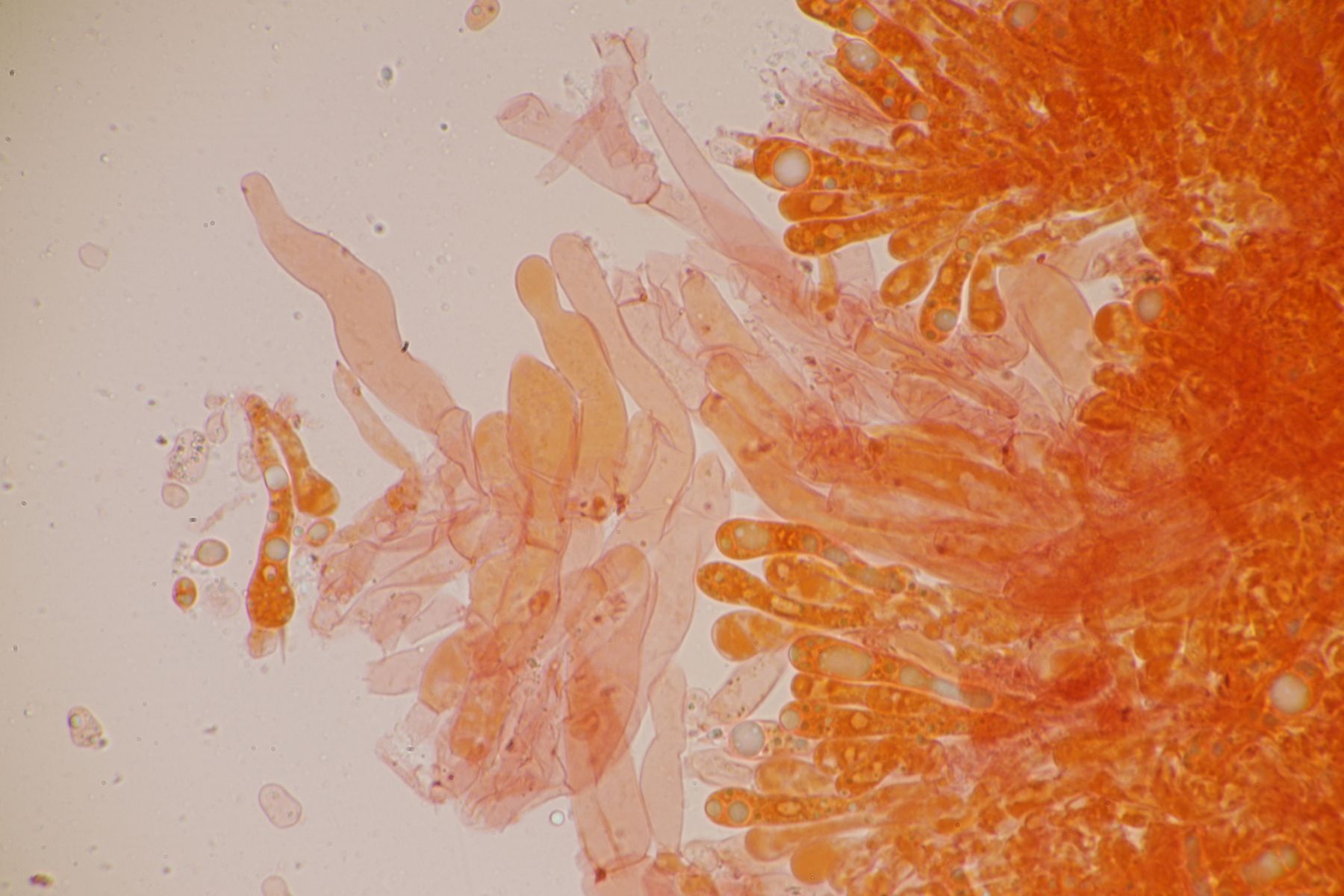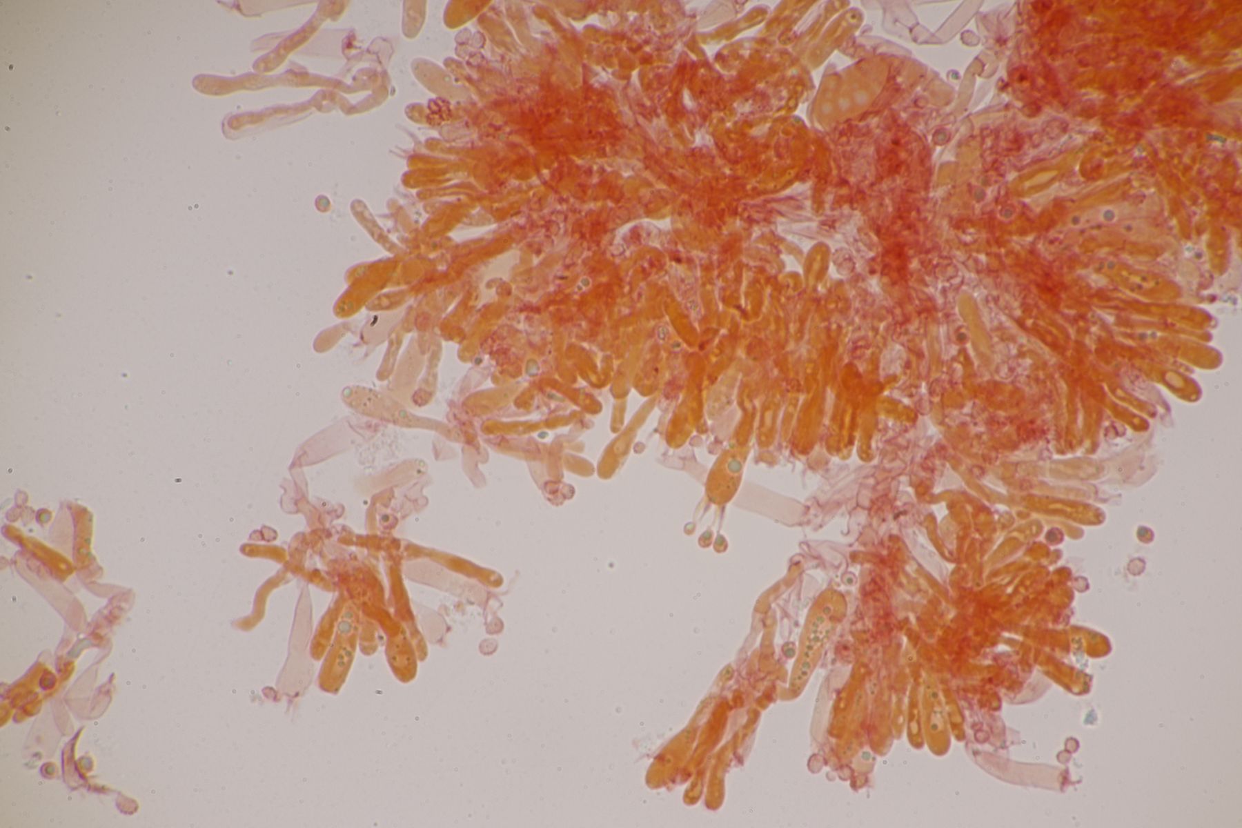 Alle Hygrocybe mucronella, die ich in diesem Jahr (nach dem Erscheinen der Arbeit von F. Fuljer et al., siehe https://www.pilzforum.eu/attac…ew-speciesvol14art18-pdf/ ) bisher untersucht habe, erwiesen sich als Hygrocybe mucronella s. str., auch die, bei denen ich aufgrund der makroskopischen Merkmale dazu geneigt war, sie für Hygrocybe amara zu halten.