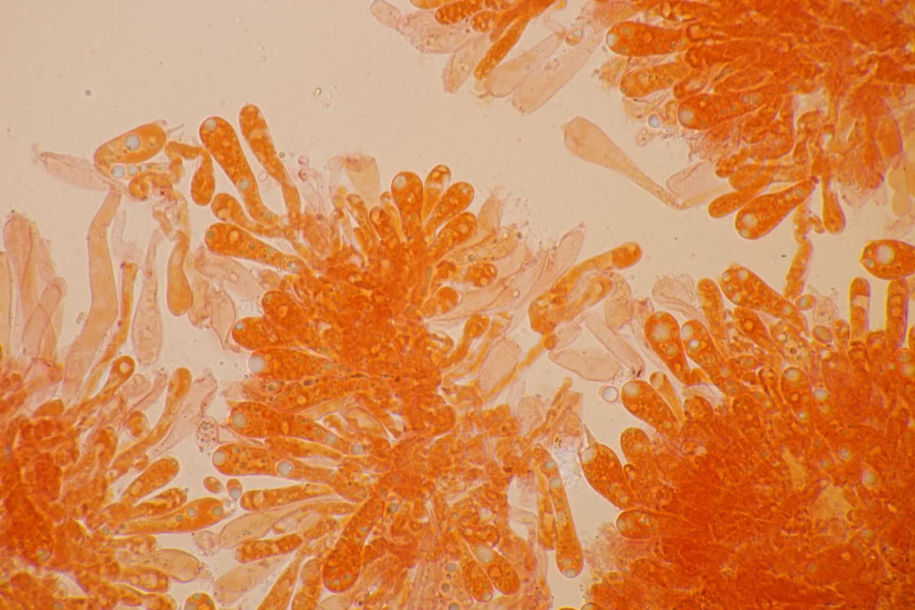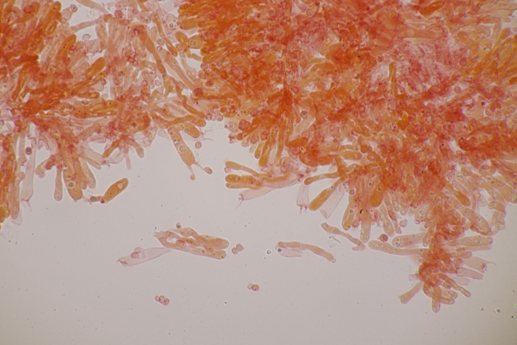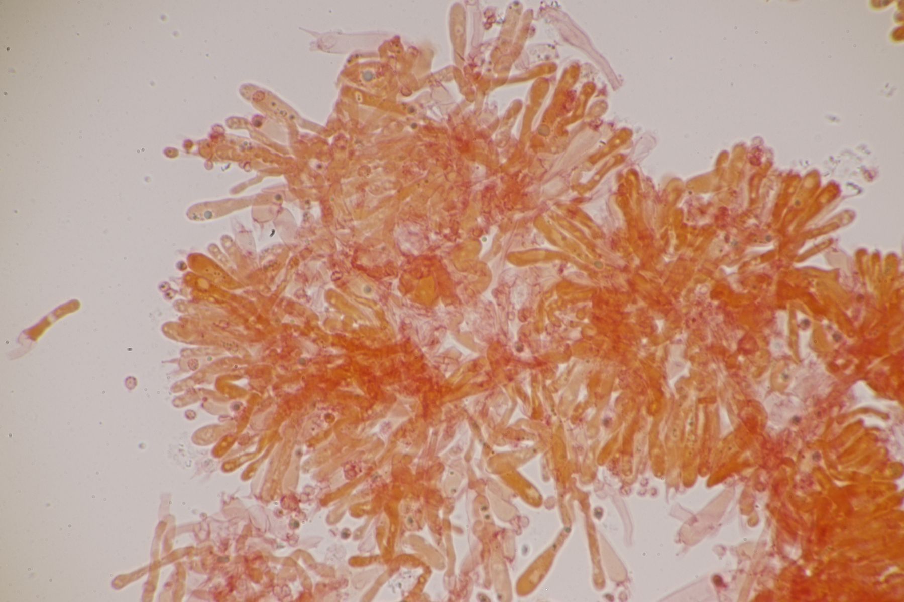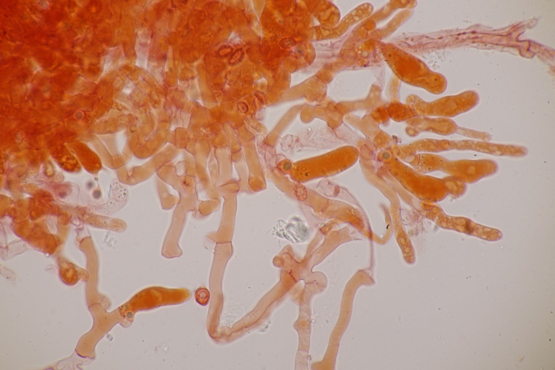 Alle Hygrocybe mucronella, die ich in diesem Jahr (nach dem Erscheinen der Arbeit von F. Fuljer et al., siehe https://www.pilzforum.eu/attac…ew-speciesvol14art18-pdf/ ) bisher untersucht habe, erwiesen sich als Hygrocybe mucronella s. str., auch die, bei denen ich aufgrund der makroskopischen Merkmale dazu geneigt war, sie für Hygrocybe amara zu halten.