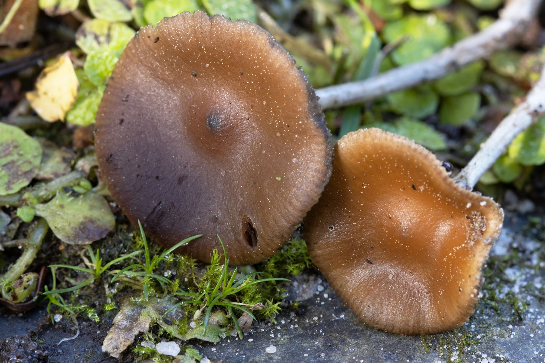 hier liegt seit Wochen eine Kollektion Psilocybe vom 24.10.24 aus dem Botanischen Garten Hamburg, wo ich mich bei der Bestimmung nicht entscheiden konnte.