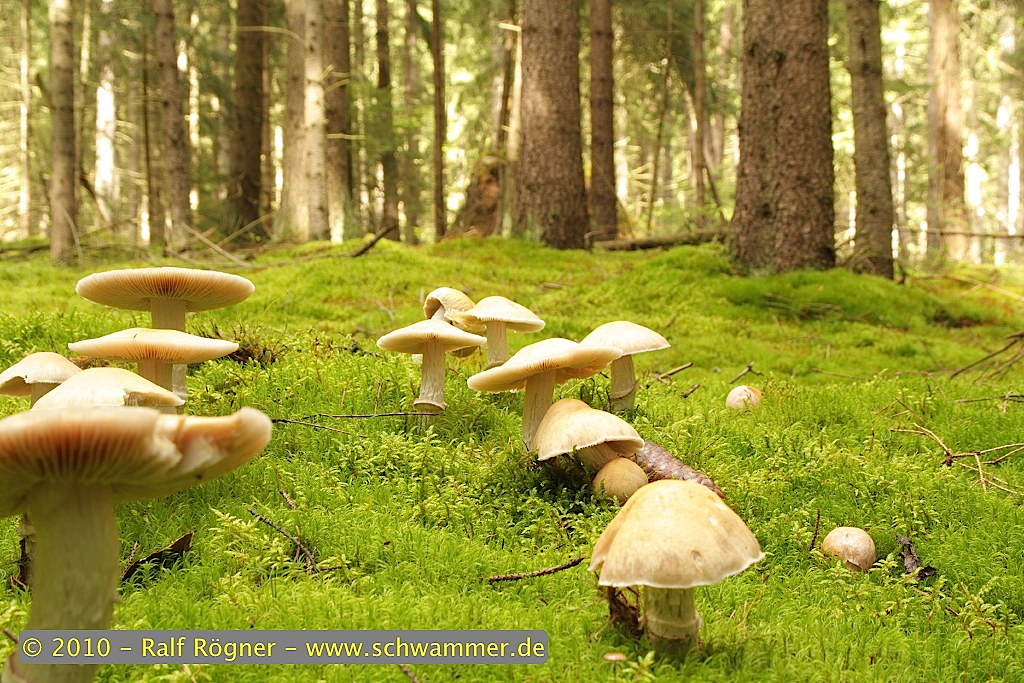 Gefunden in großer Gruppe nahe Fichten und Kiefern auf Moos, vermutlich saurer Boden da zahlreiche Heidelbeersträucher im direkten Umfeld, leicht schattig mit zeitweiligem Lichteinfall - mehr Information wüsste ich nun nicht zu liefern.