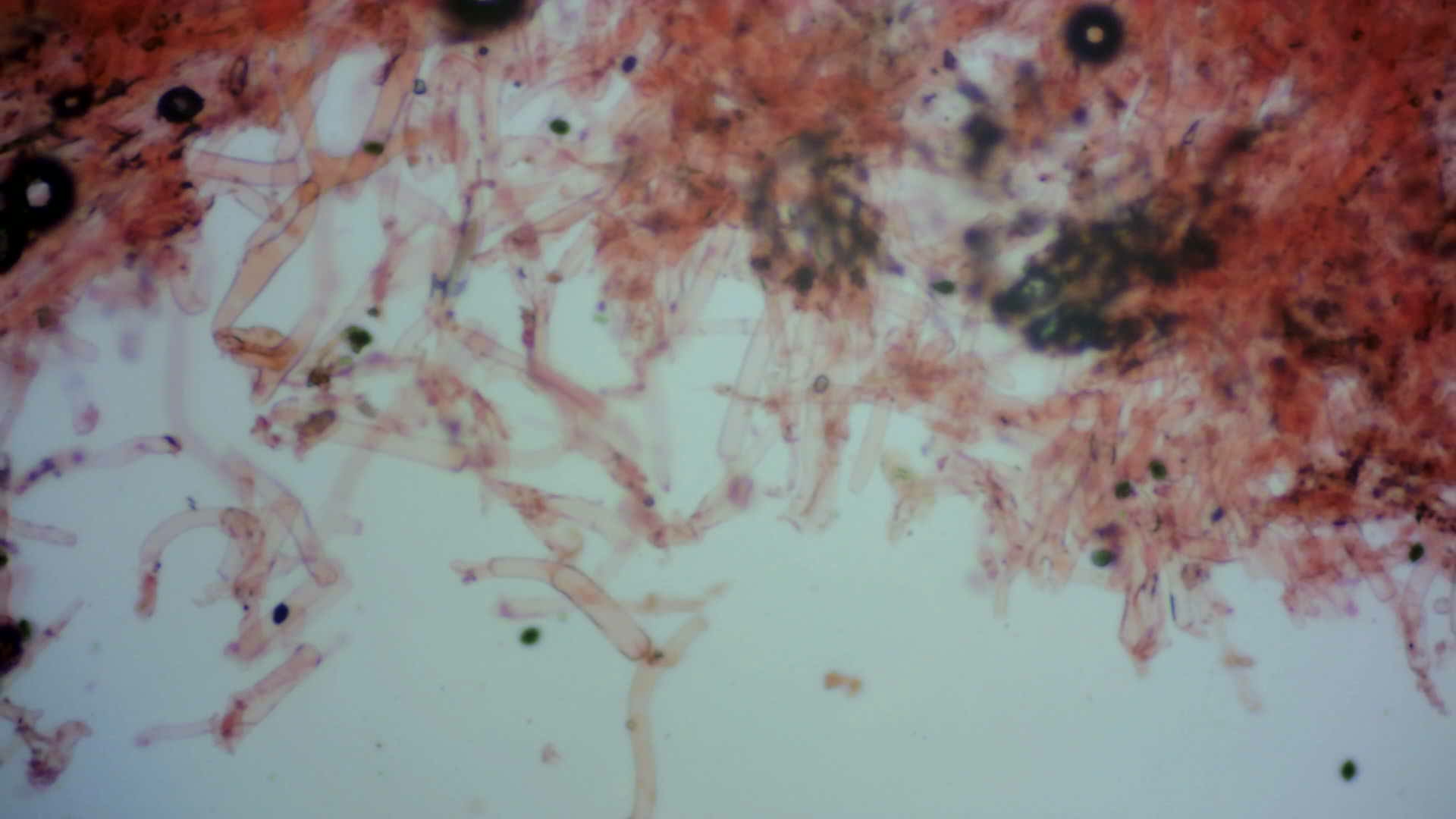 Und nochmal die Sporen, diesmal im Schnitt 9,5-10µ und so reichlich, dass man keine Zystiden sieht: