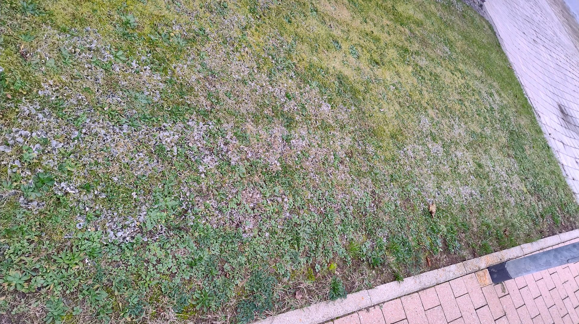 Die Flechten sehen durch das Malträtieren mit dem Rasenmäher zwar nicht besonders hübsch aus, aber andererseits profitieren die Flechten in zweifacher Hinsicht durch diese Behandlung: