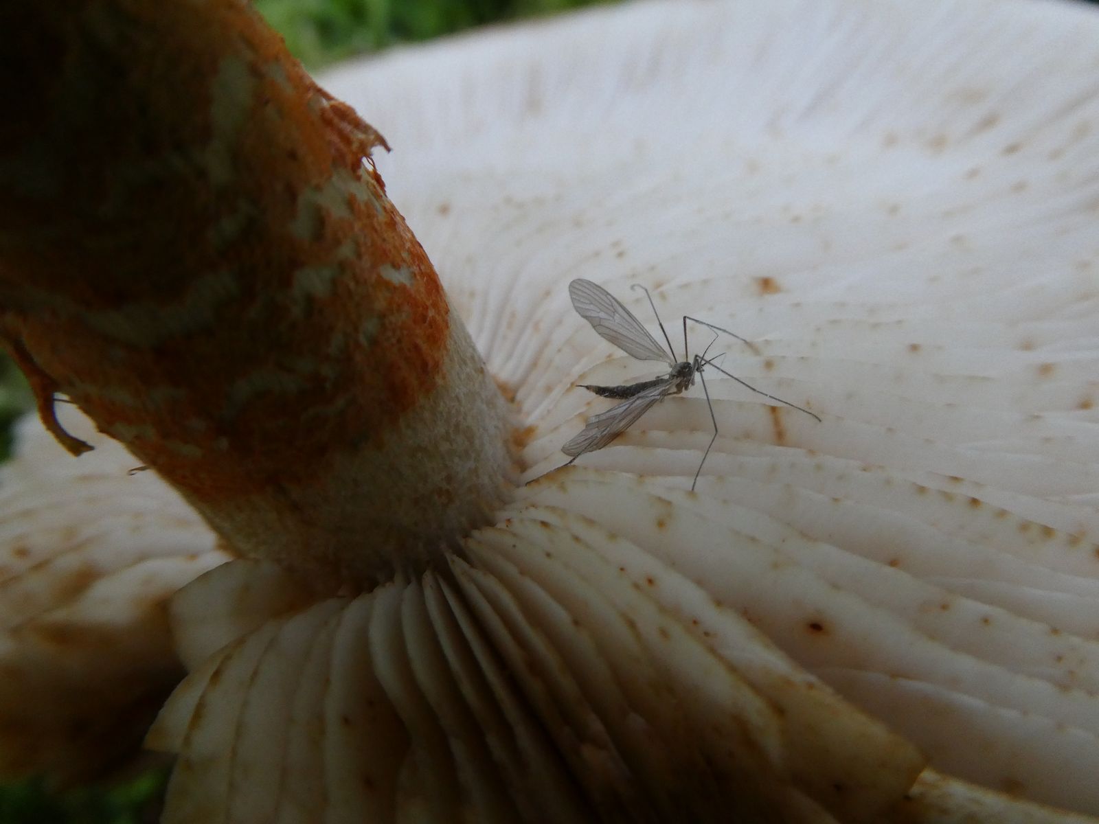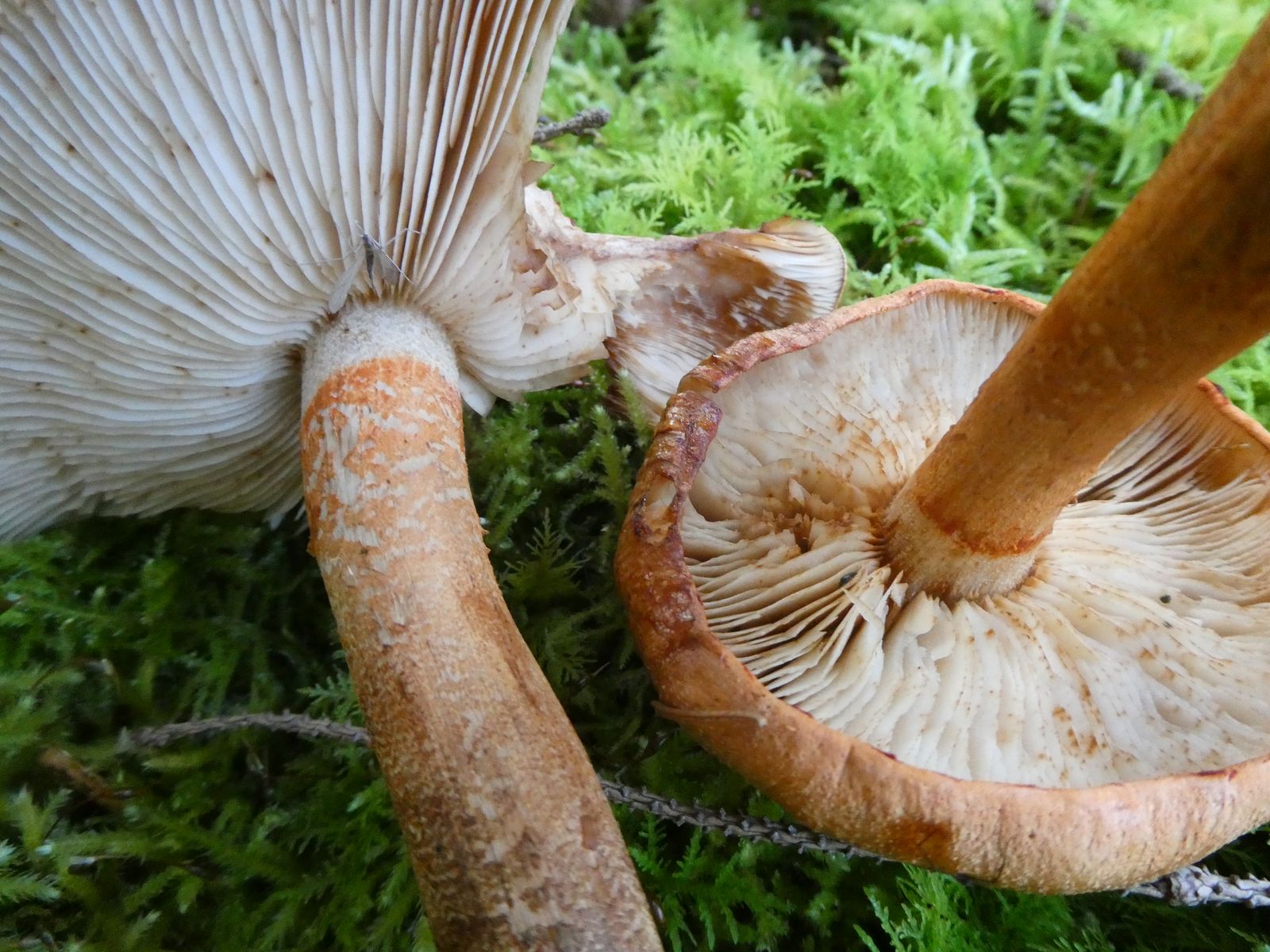 Was am Stiel auffällt: ohne Ring kurz unterhalb des Lamellen-Ansatzes von weiß in abrupte Orange-Natterung übergehend.