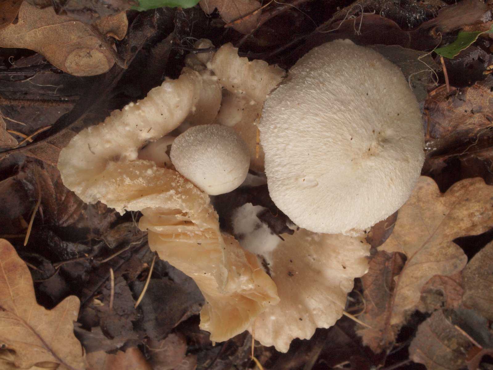 Nur ein Täubling war noch reichlich vorhanden. Sehr scharfer Geschmack, gesägte Lamellenschneiden und ein Geruch, der für mich eine kokosartige Komponente enthält. Rotviolette Farbe, dunklere Hutmitte und Vorkommen unter Eiche. Da braucht man weder Mikro noch Chemie