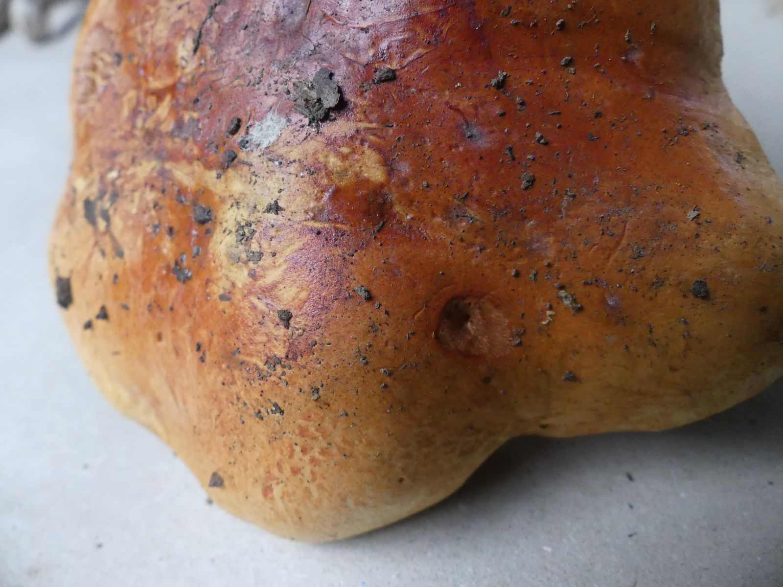 Gestern im Eichen-Hainbuchen-Buchen-Mischwald ist mir dieser farbenfrohe Klumpfuß ins Netz gegangen. Leider nur ein Einzelexemplar, was die Bestimmung nicht erleichtert. Der Geruch ist am frisch aufgeschnittenen Fruchtkörper angenehm süßlich-würzig, etwas an den Geruch von A. phalloides erinnernd, aber ohne die aasartige Komponente.