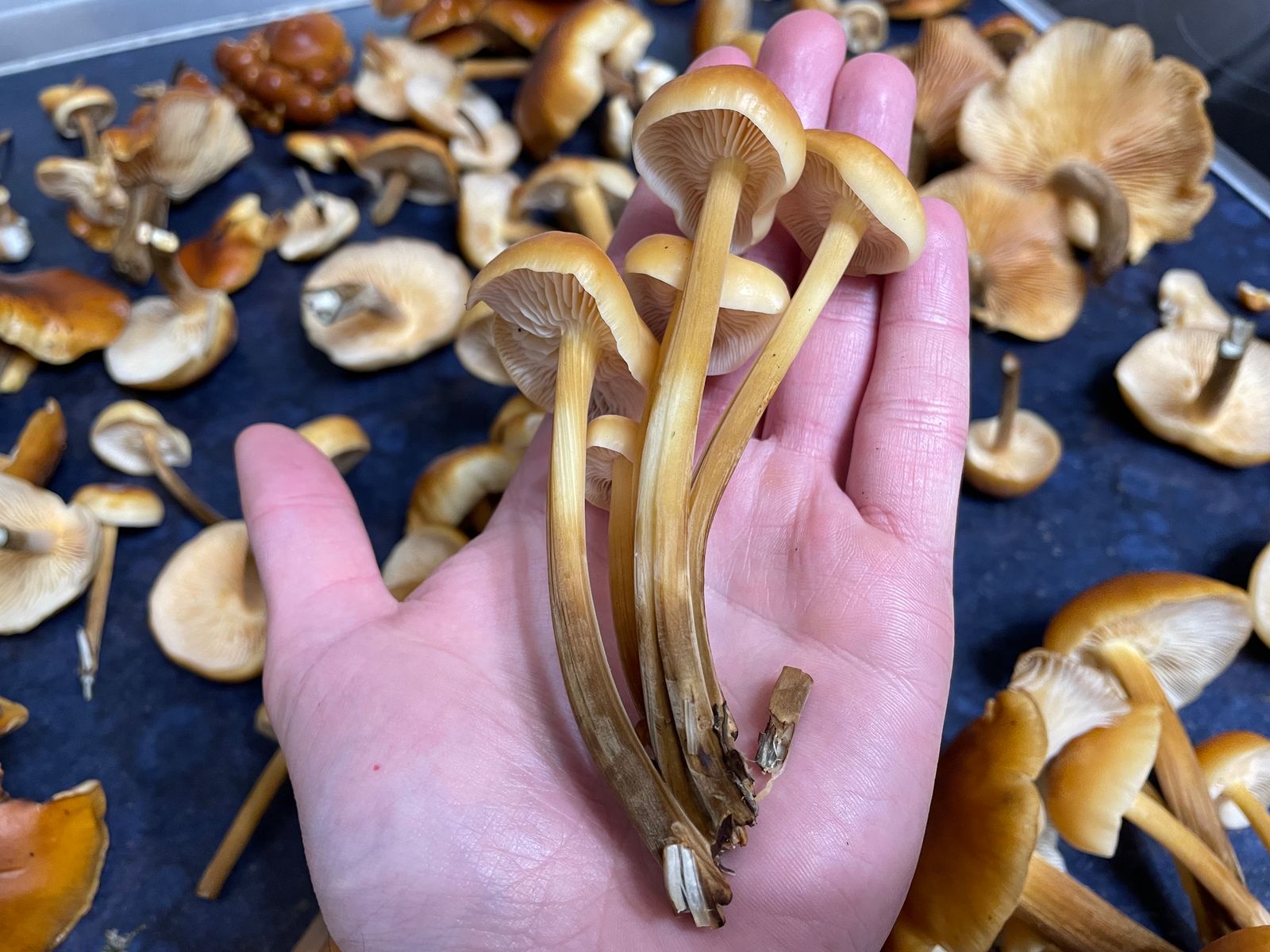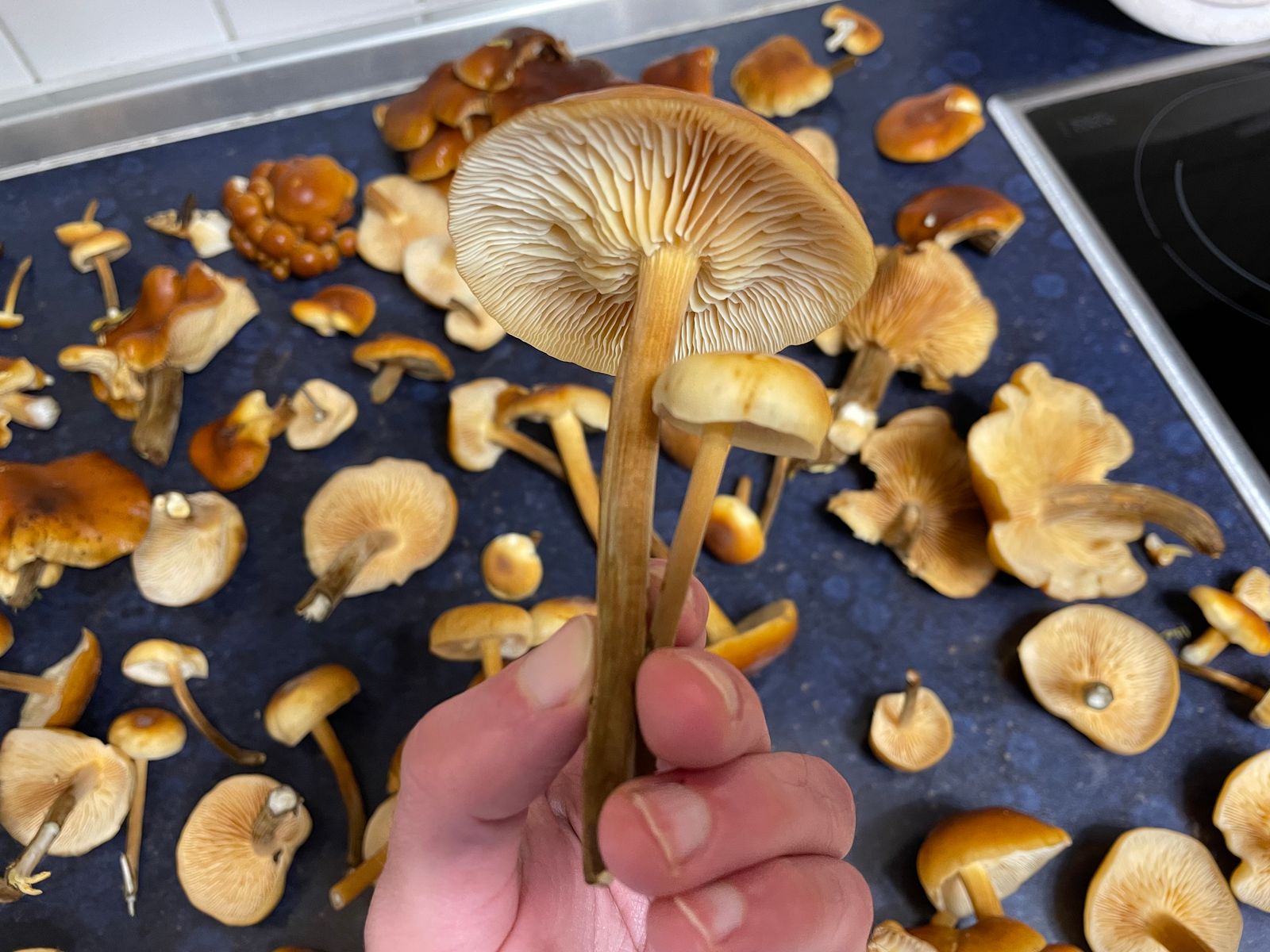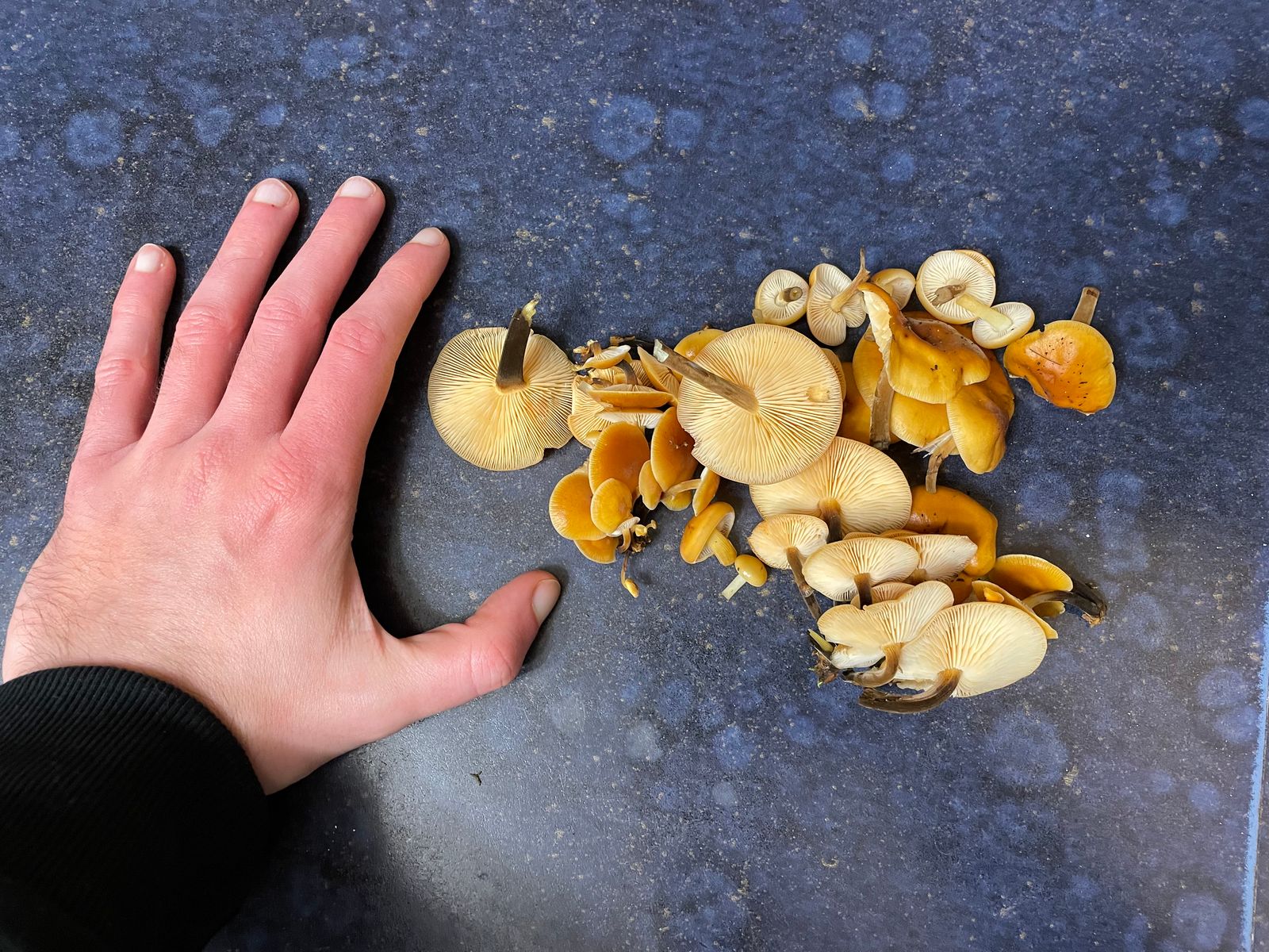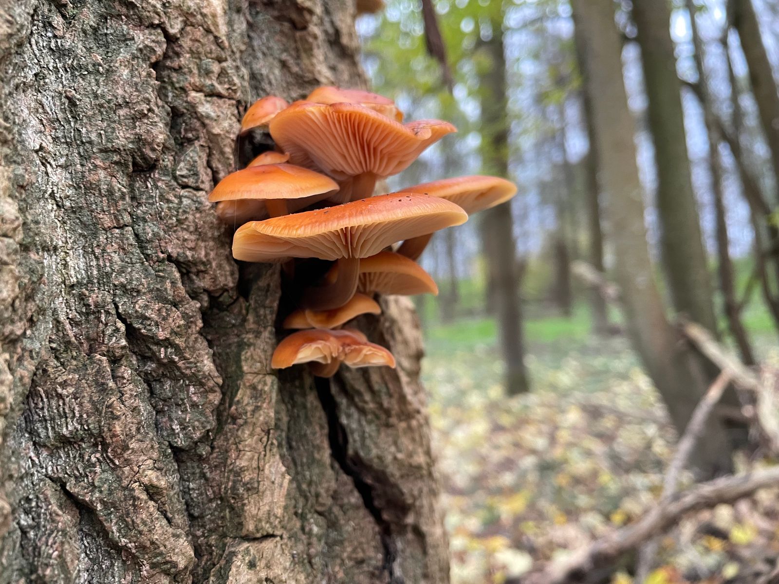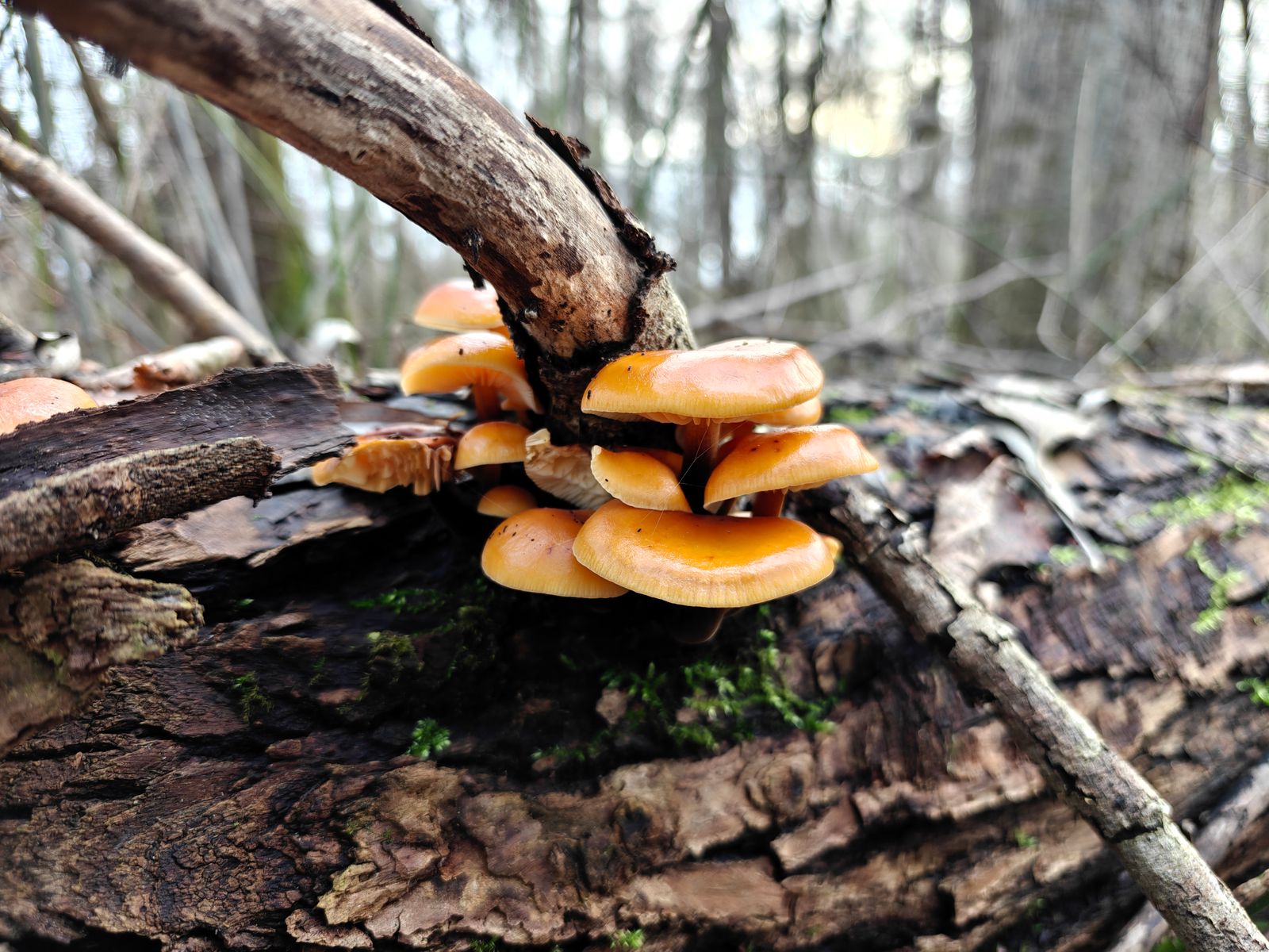 Heute war ich mit dem Rad in den Donau-Auen unterwegs - Austernseitlinge suchen. Leider auch diesmal ohne Erfolg. Bin dann auf Samtfußrüblinge umgestiegen, welche es hier und da auf Weidenstümpfen in nennenswerter Anzahl hatte. Und dann.... dann kam eine noch lebendige Weide mit Befall. Mir ist regelrecht die Kinnlade heruntergeklappt. Der gesamte Stamm eingehüllt mit Samtfußrüblingen, die teils eine Größe hatten, wie ich sie noch nie gesehen habe. Manche Fruchtkörper mit "Steinpilzkaliber".