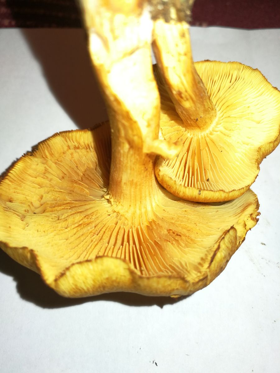 heute habe ich Garten eines Freundes zwei Pilze gefunden. Sie wuchsen beide auf Totholz. Leider hatte ich mein Handy nicht zur Hand, sodass nur Bilder unter Kunstlicht zur Verfügung stehen.