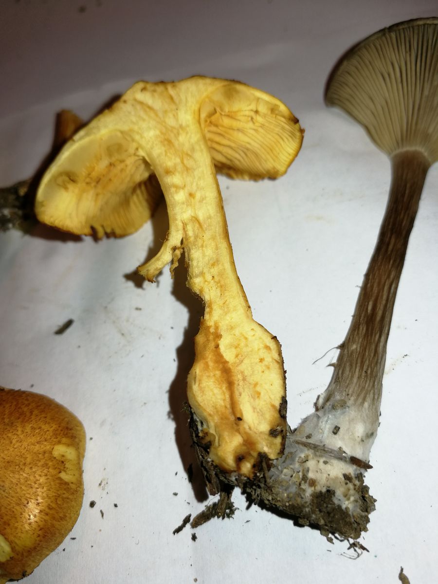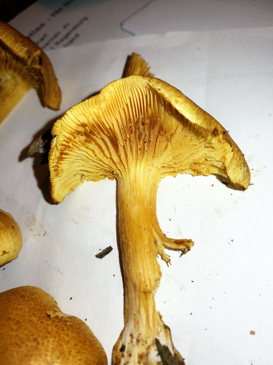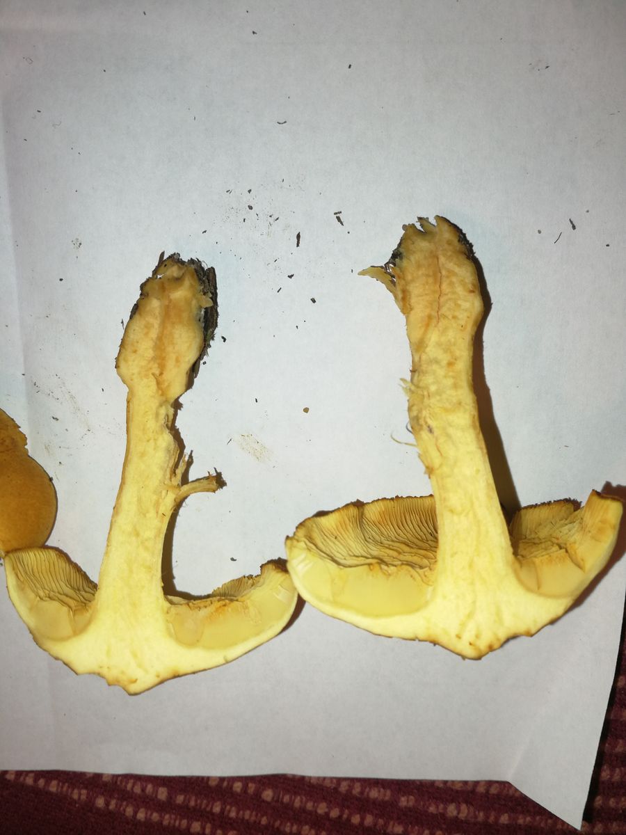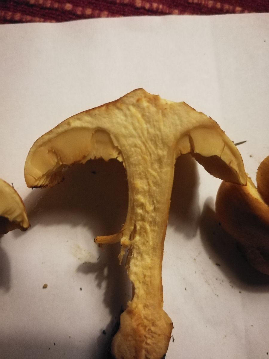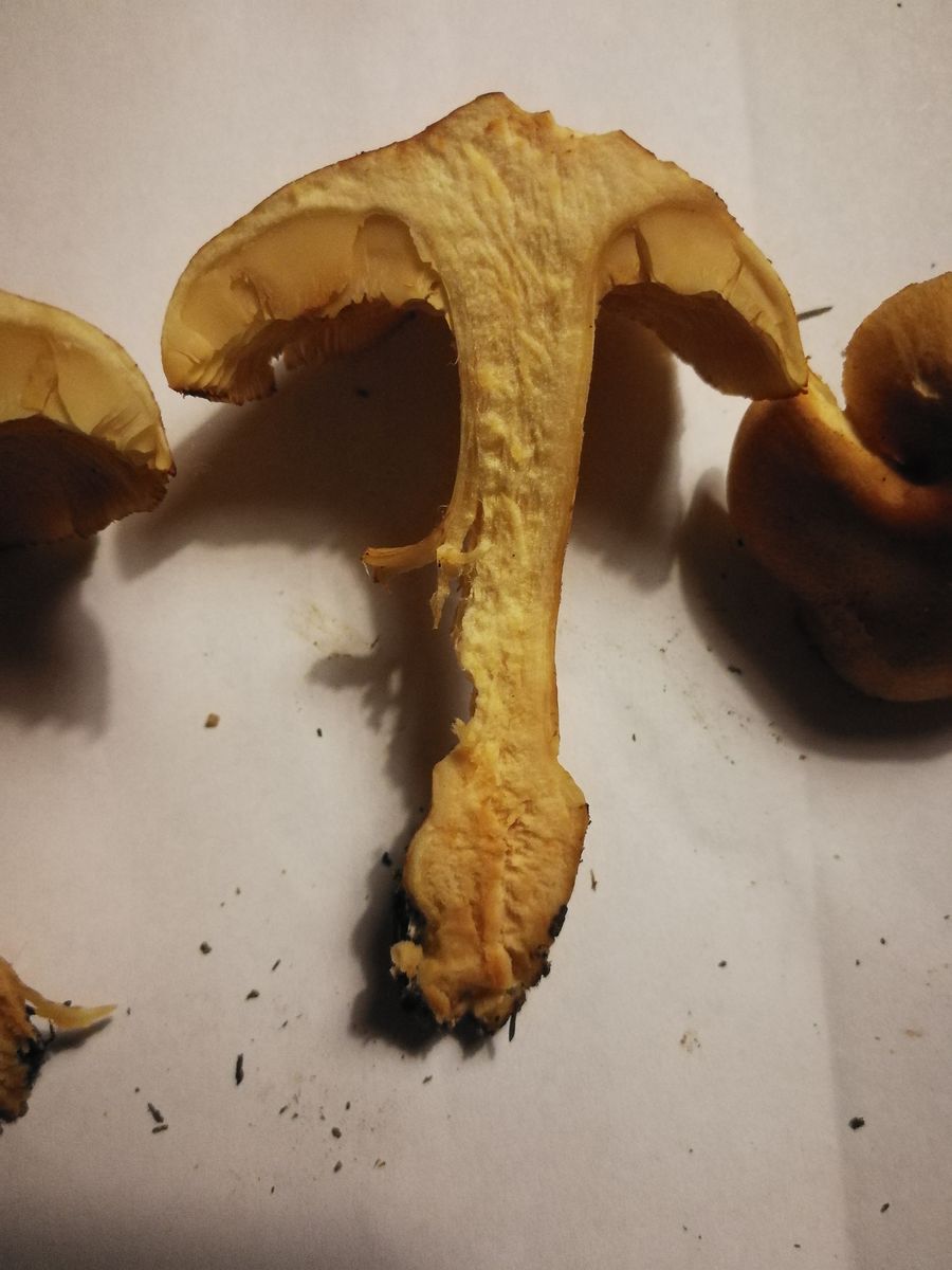 Er wuchs auf dicken Holzbalken, welcher als Begrenzung/Abstützung für ein Hangbeet genutzt. Hier kann ich die Baumart auf keinen Fall erahnen. Die Holzteile sind da auf mindestens schon 30 Jahre. Erst dachte ich wegen den feinen Schüppchen am Hut eher an einen der Schüpplinge, aber wegen der zunehmenden Flecken an den Lamellen bin ich nun eher beim Flämmling. Habe den Geflecktblättrigen schon mal gefunden, das waren die fleckigen Lamellen aber viel ausgeprägter. Die waren dann aber vielleicht älter? In welcher Gattung soll ich weiterforschen?