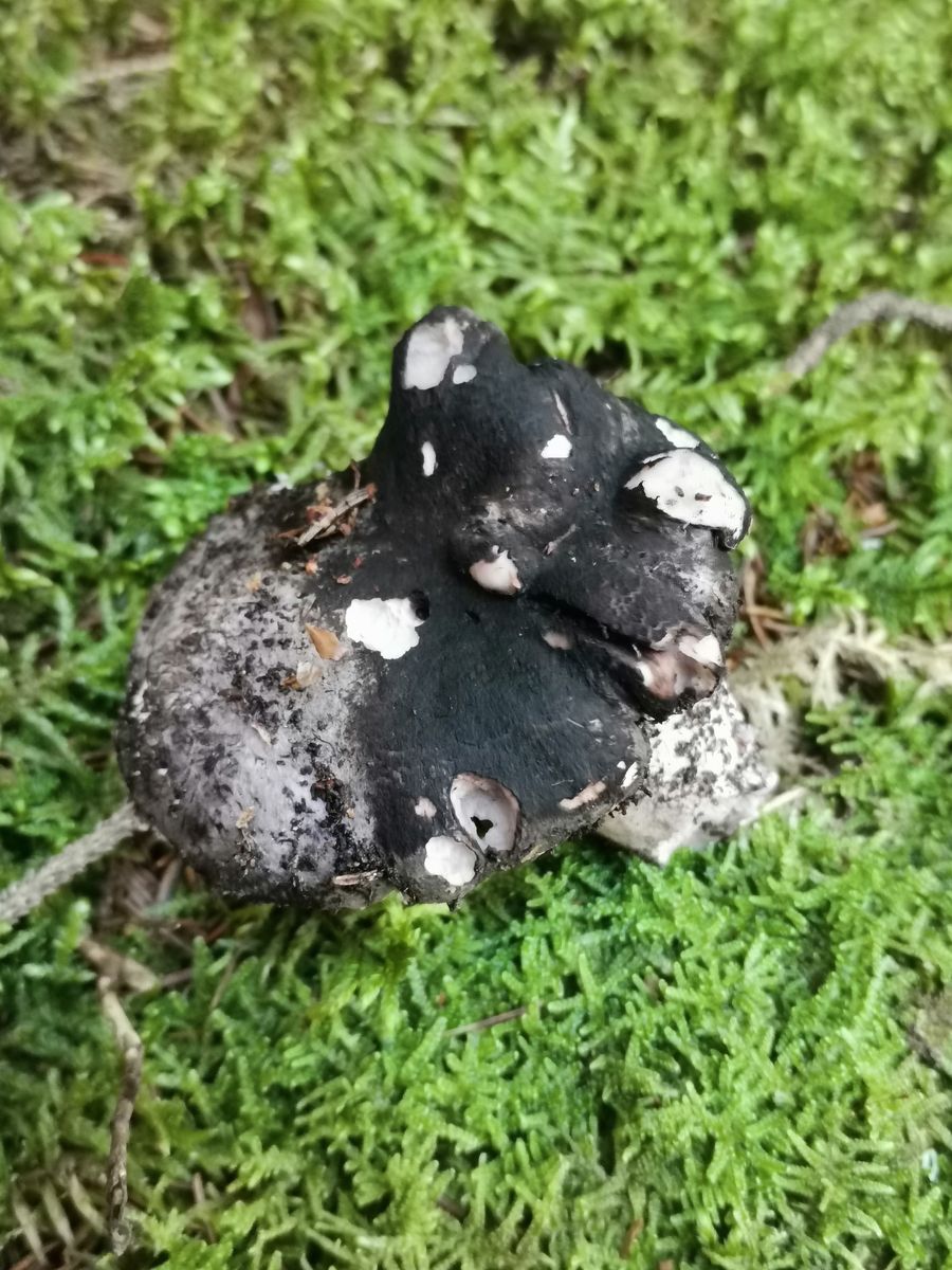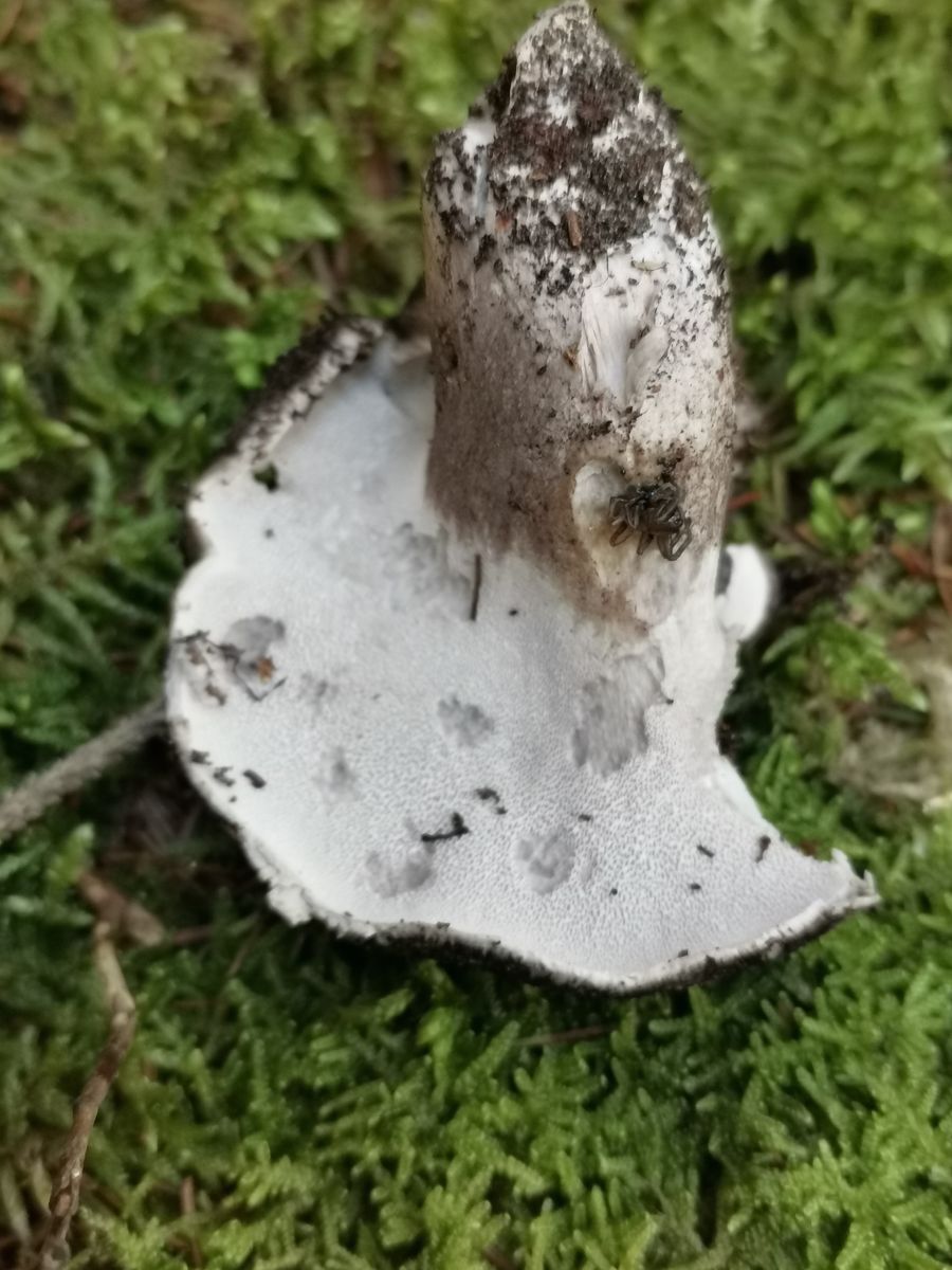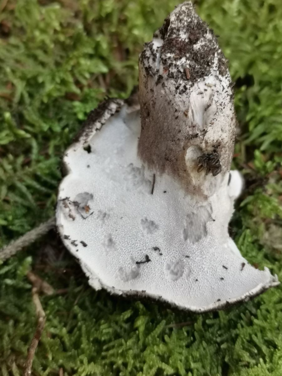 dein Pilz scheint Poren zu haben, schau mal nach dem Schwarzweissen Russporling Boletopsis leucomelaena