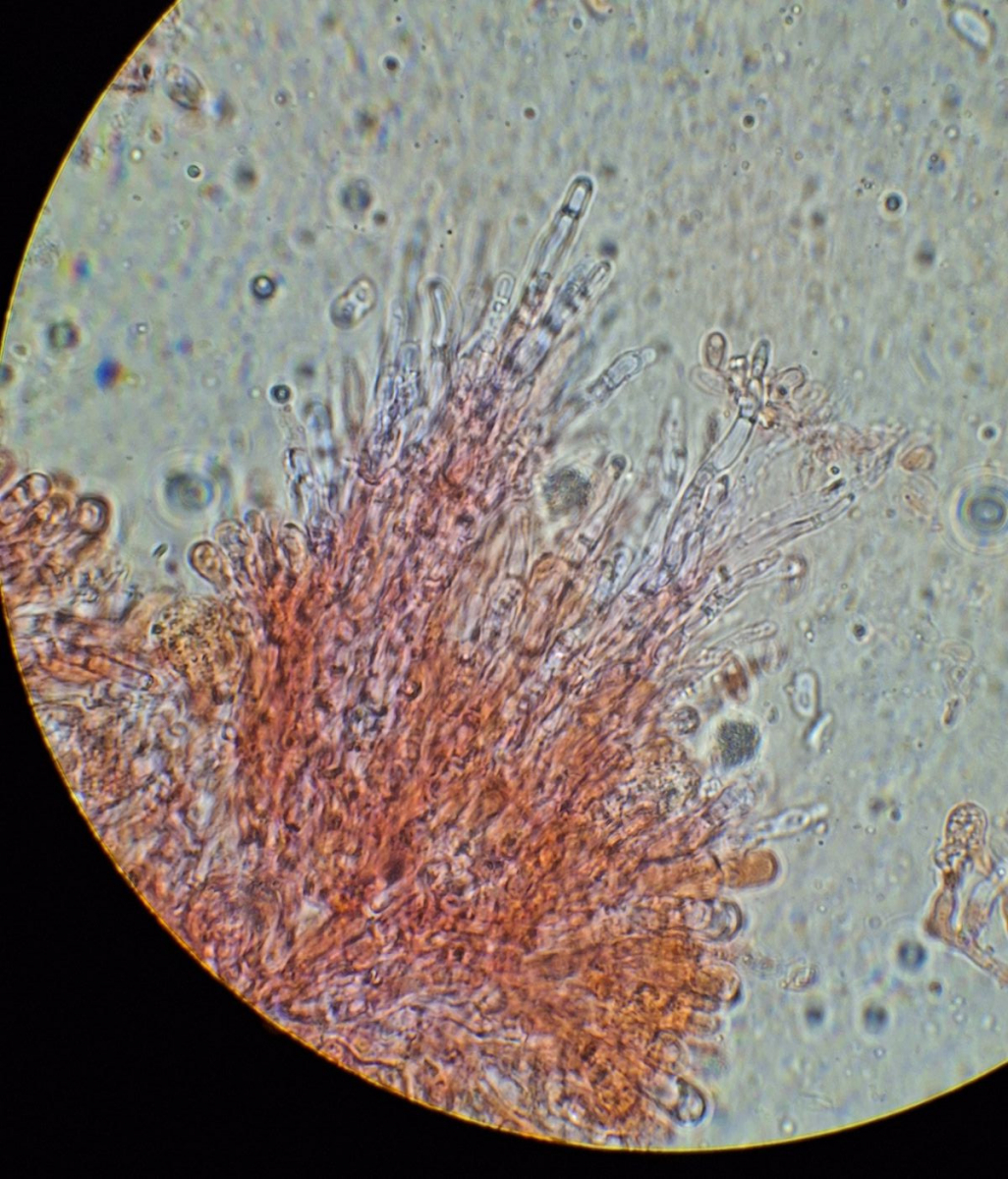 das ist Resinicium bicolor mit Halozystiden und Asterozystiden.