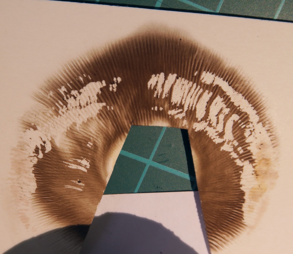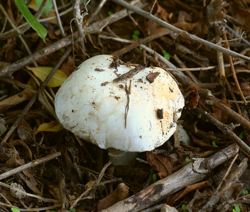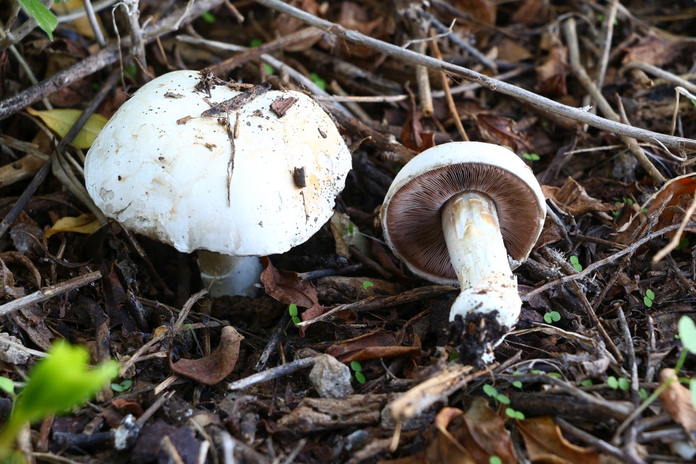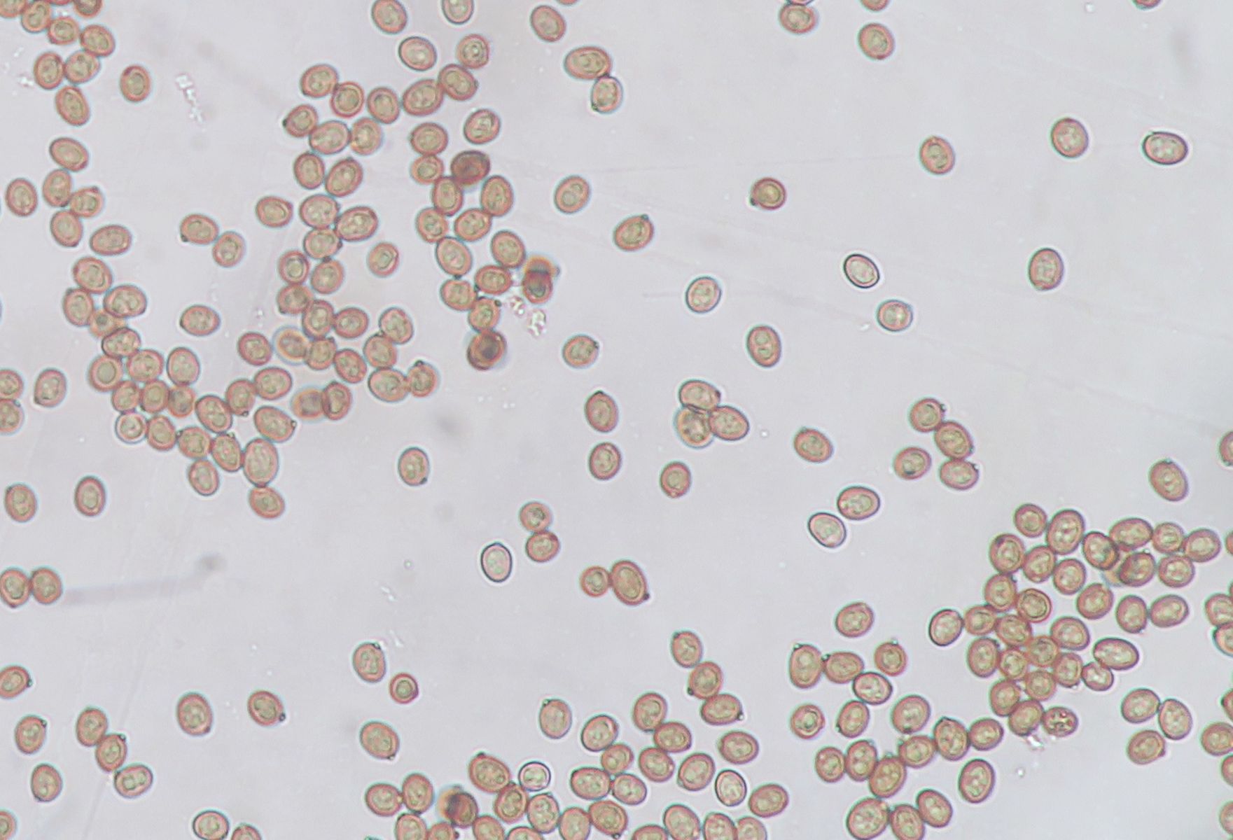 I found fruiting bodies of Agaricus sp. on leaf litter and twigs below Pomegranate trees in a shaded and humid place. Slicing or bruising did not produce any significant colour change. The scent was interesting as it was slightly foetid (like millipedes) and I am usually used to scents of anise, ink, mealy, or good-scented mushroom scents with Agaricus sp. The ring was not well developed. The spore print was moderate brown (not dark) like, milk-chocolate. The spores were small with an eccentric apiculum. The cheilocystidia were hard to see, and if what I seen are Cheilocystida, they were clavate with large vacuoles. Basidia 2- 3- and 4- sporous. Under the stereomicroscope I saw glistening white elements on the sides of the lamella which may be pleurocystidia.