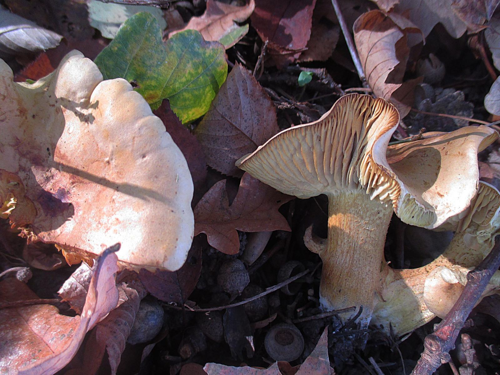 Ein paar frostgeschädigte Erdritterlinge aus der gilbenden Sippe liefen mir über den Weg.