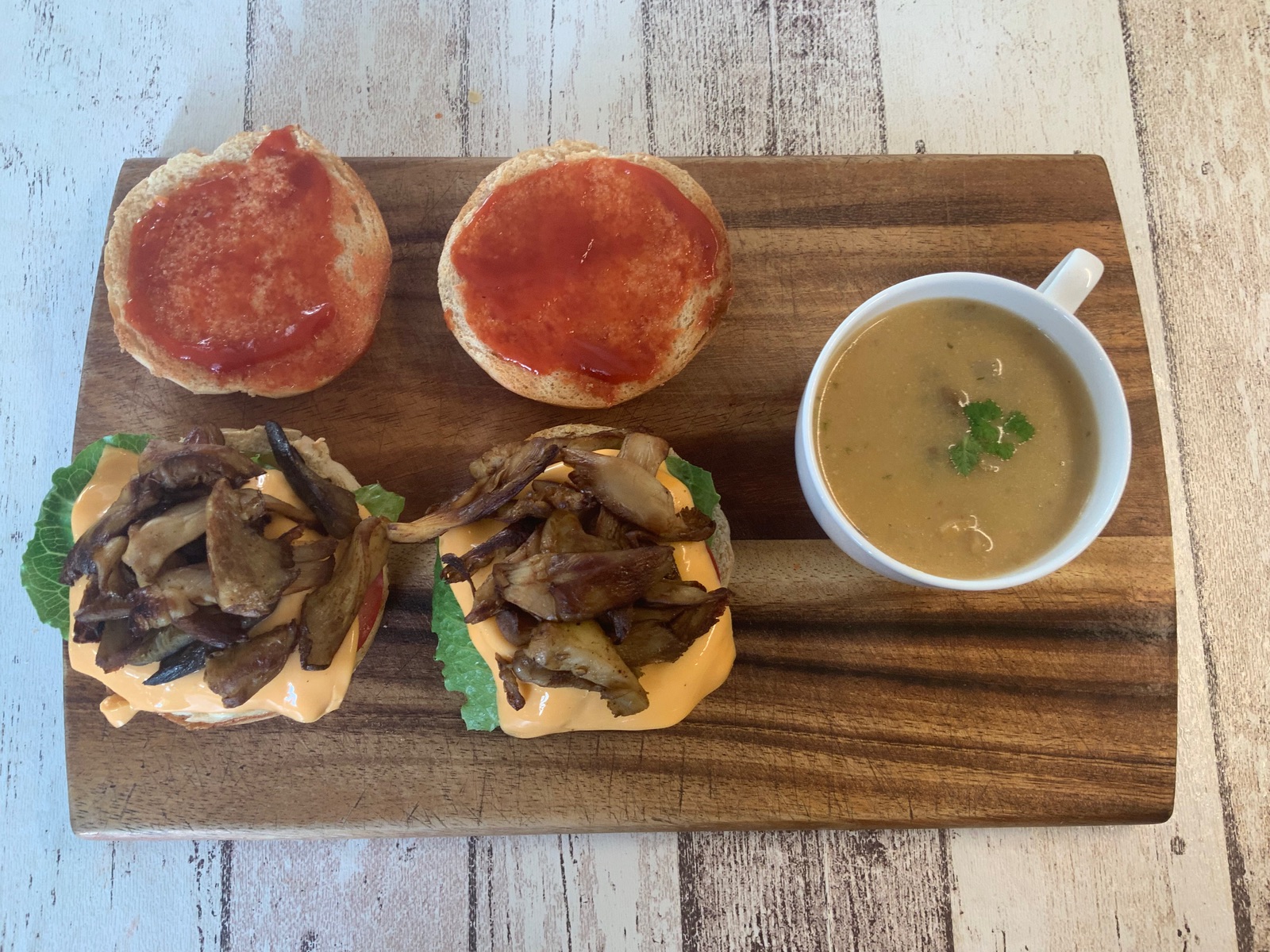 Deine Brötchen möchhte man am liebsten aus dem Monitor herausbeißen! Was ist außer Austernseitlinge auf dem Brot noch drauf?