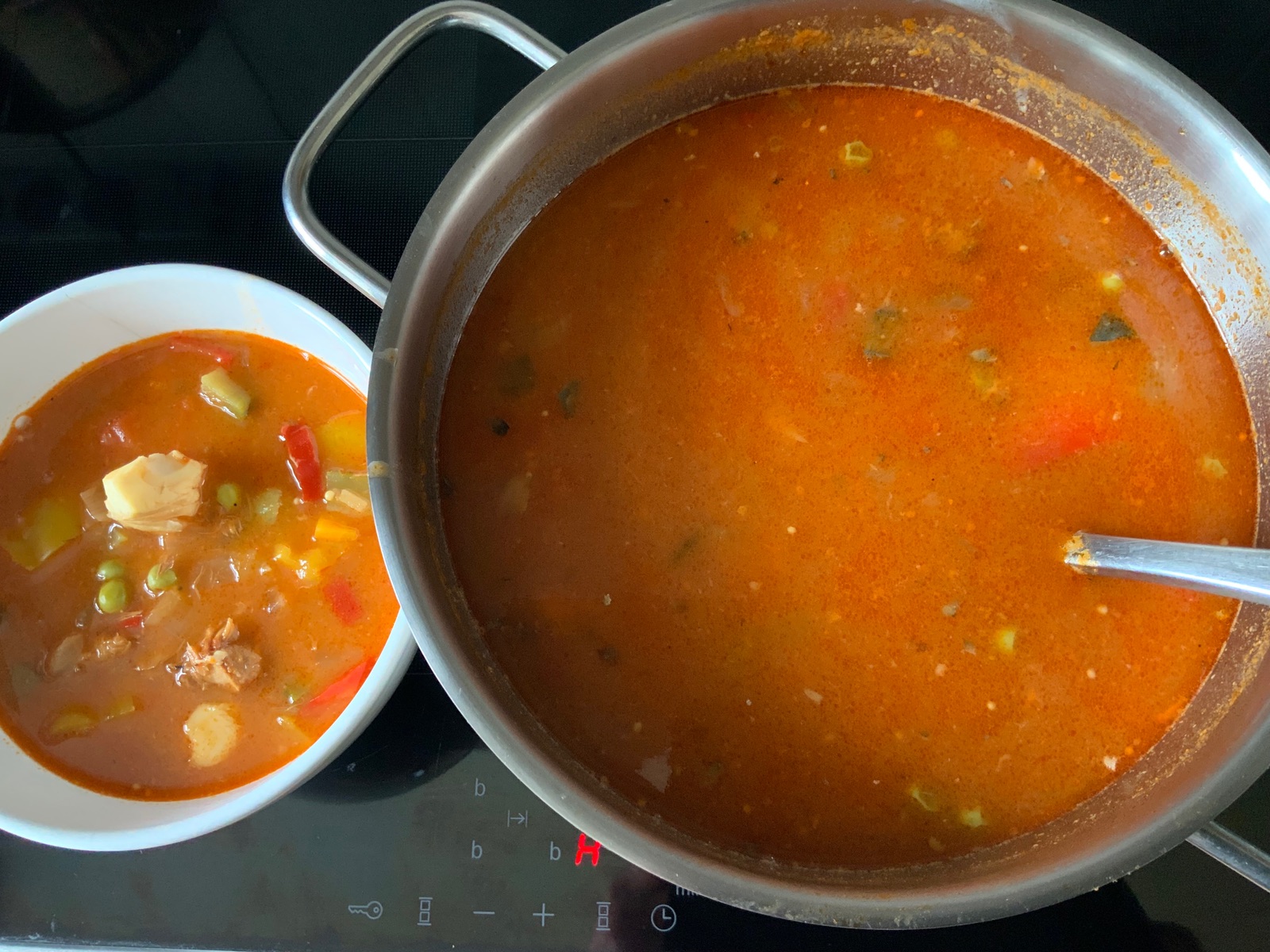 wurde dann wieder `ne schöne Pilzsoße für den Froster. Hier das Ergebnis:Und da wir das Ergebnis bereits kennen, heute mal was ohne Pilze, nämlich Rostocker Fischsoljanka mit Dorsch und Makrele etc..