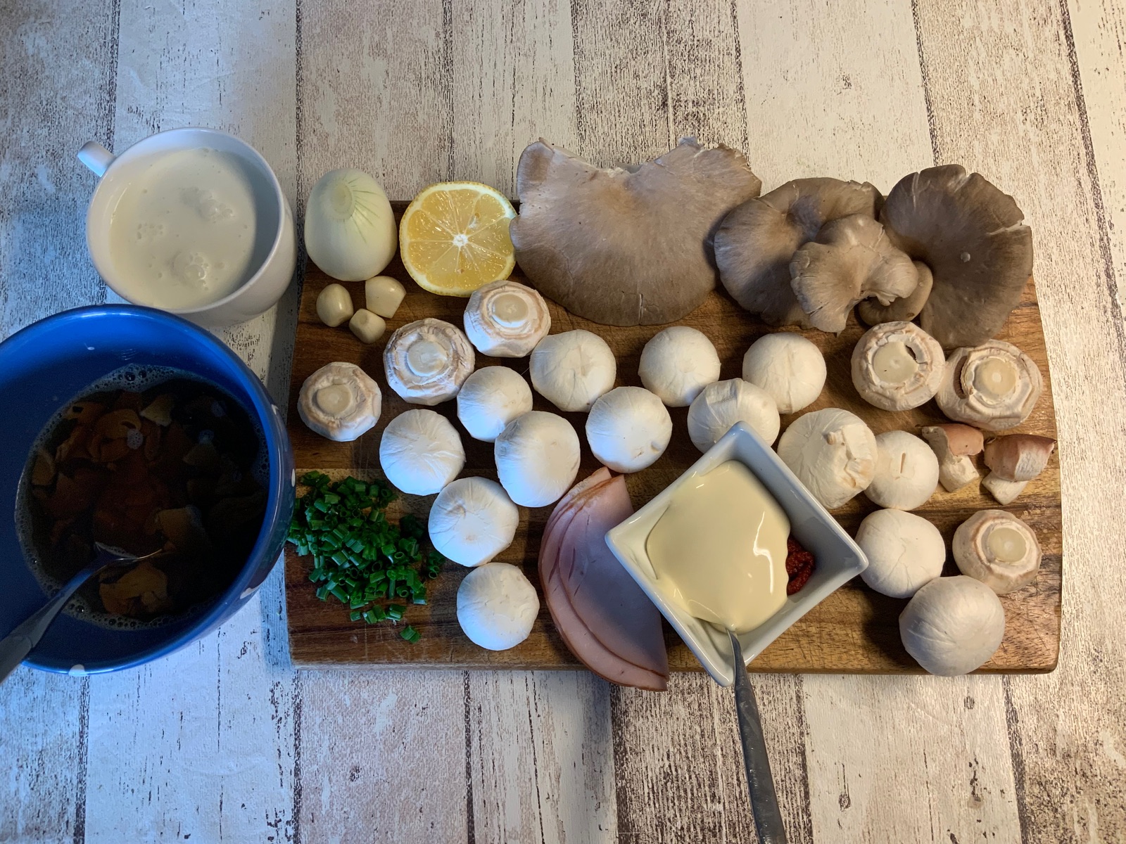 heute mal wieder was Frisches aus der Pilzküche, obwohl noch gar nicht Wochenende ist und es draußen in weiten Teilen so dröge ist.