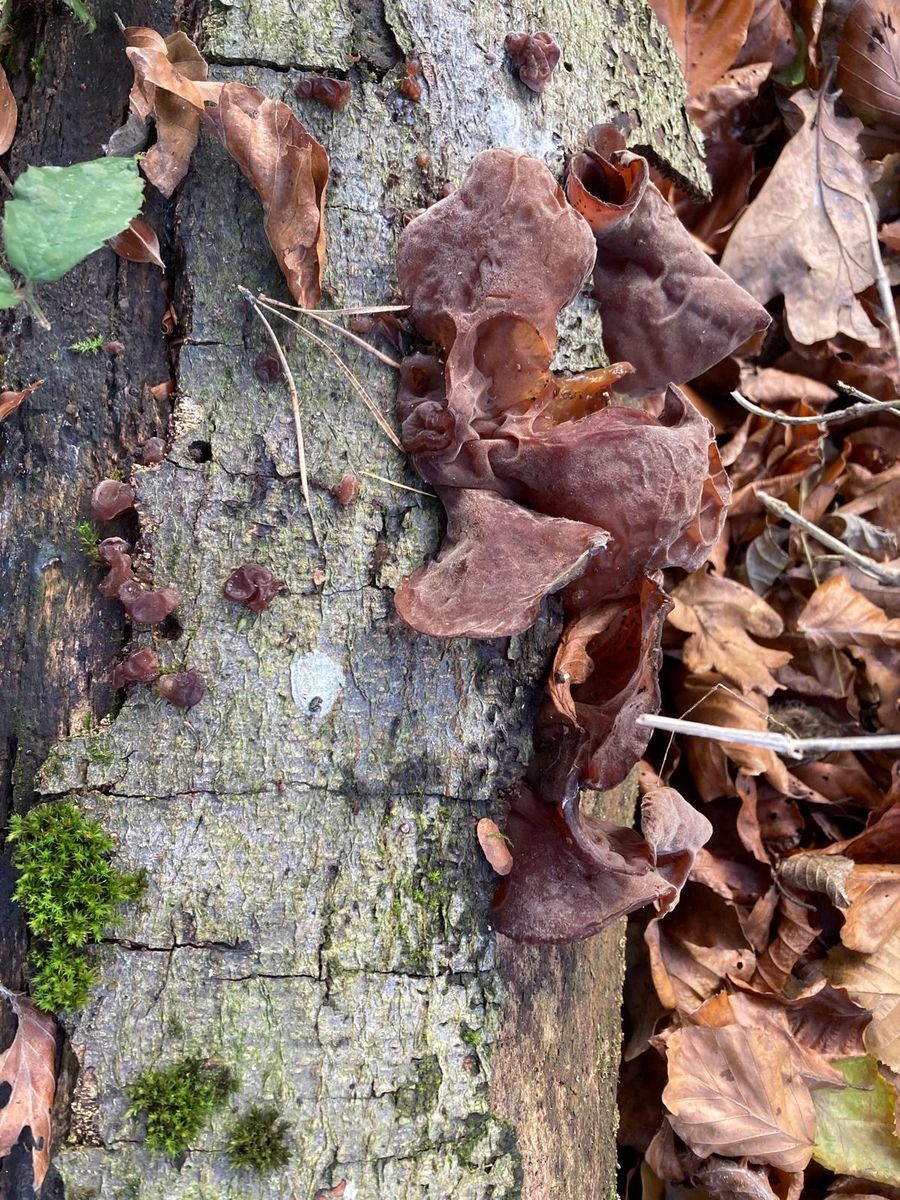 Bei mir im Hauswald finde ich sie sogar hauptsächlich an Buche und fast nie an Holunder. Es lohnt sich in Buchenwäldern bei andauernder feuchter Witterung das Totholz insbesondere auf dem Boden zu prüfen. Da wird man dann oftmals fündig. Wenn es im Habitat den Warzigen oder Abgestutzten Drüsling hat, gibt es dort oft auch Judasohren.