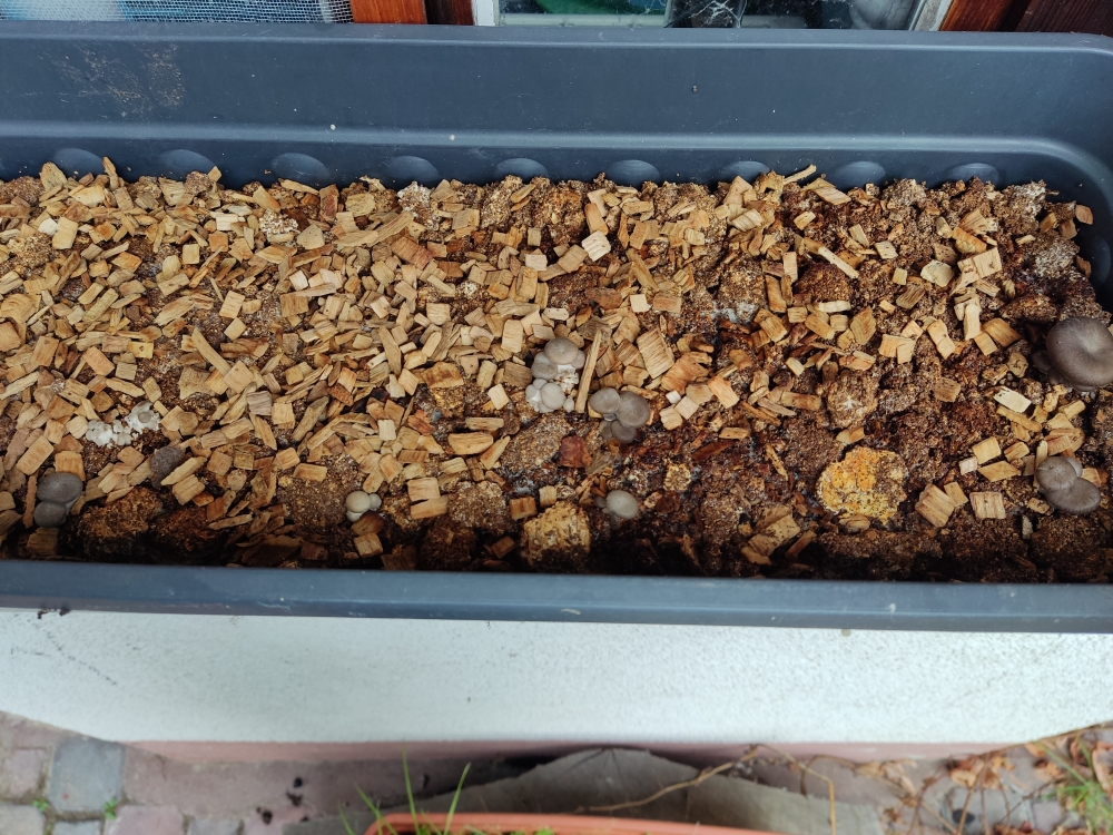 Prinzipiell kann es natürlich trotzdem sein, dass sich da auch noch andere Pilze ansiedeln, wenn es noch unbesiedeltes Substrat gibt (Holzchips).