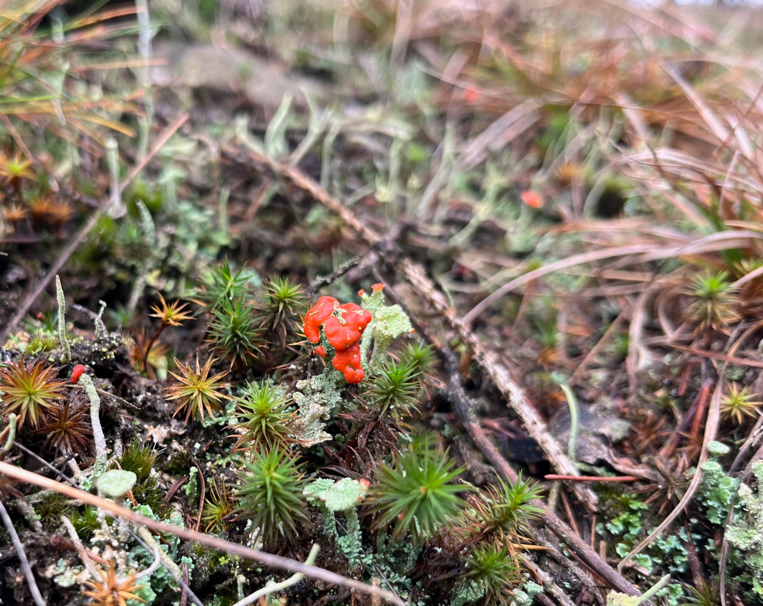 6. Eine der Rentierflechten und gleichzeitig meine Lieblingsflechte. Den kleinen Helmling im Suchbild habe ich erst auf dem Foto entdeckt.