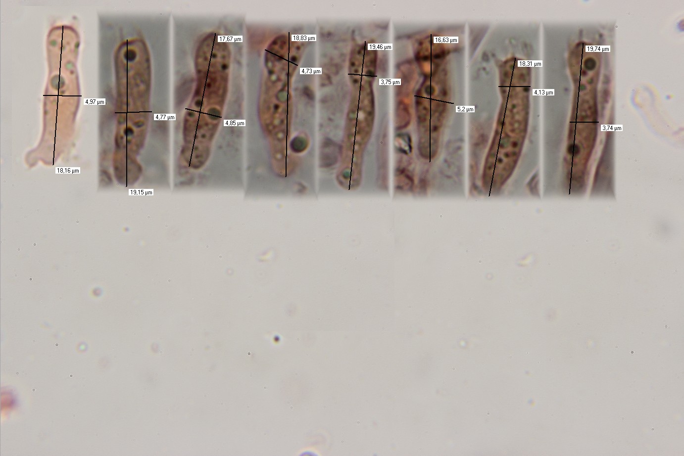 Hier noch ein Bild mit Messung der Basidien