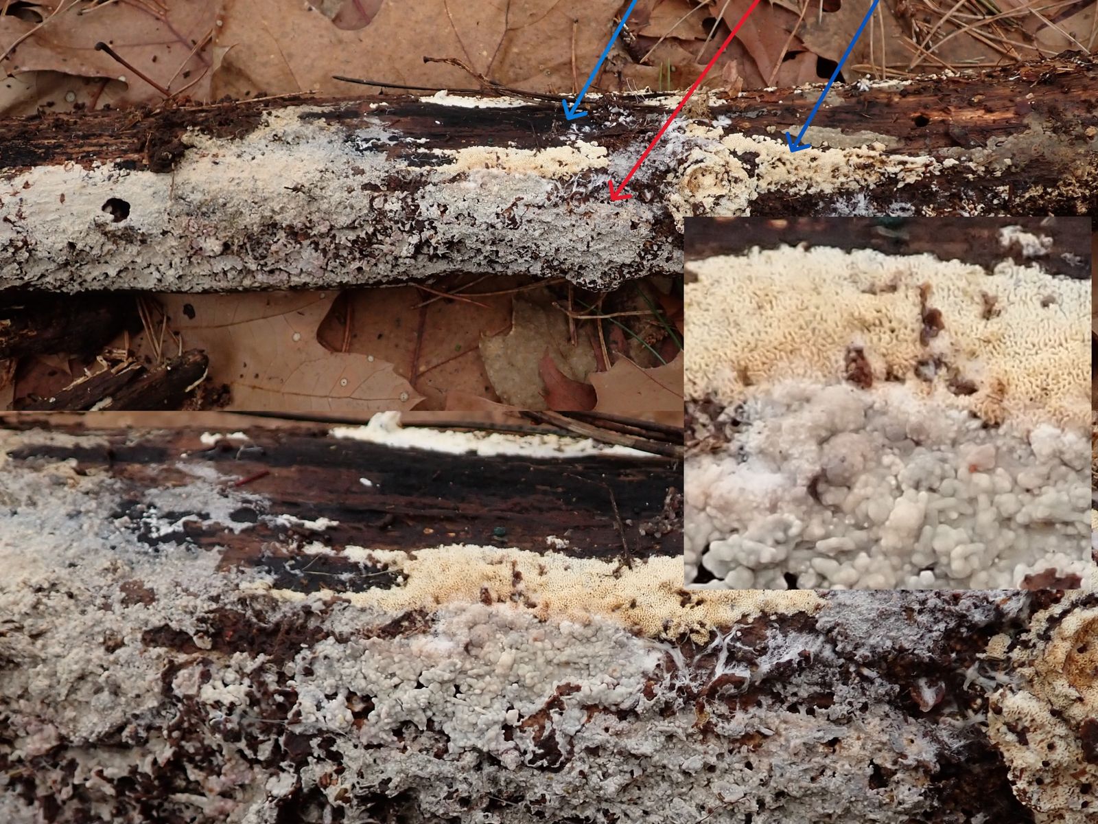 Dazwischen war noch ein unbestimmter Porling (Blaue Pfeile)