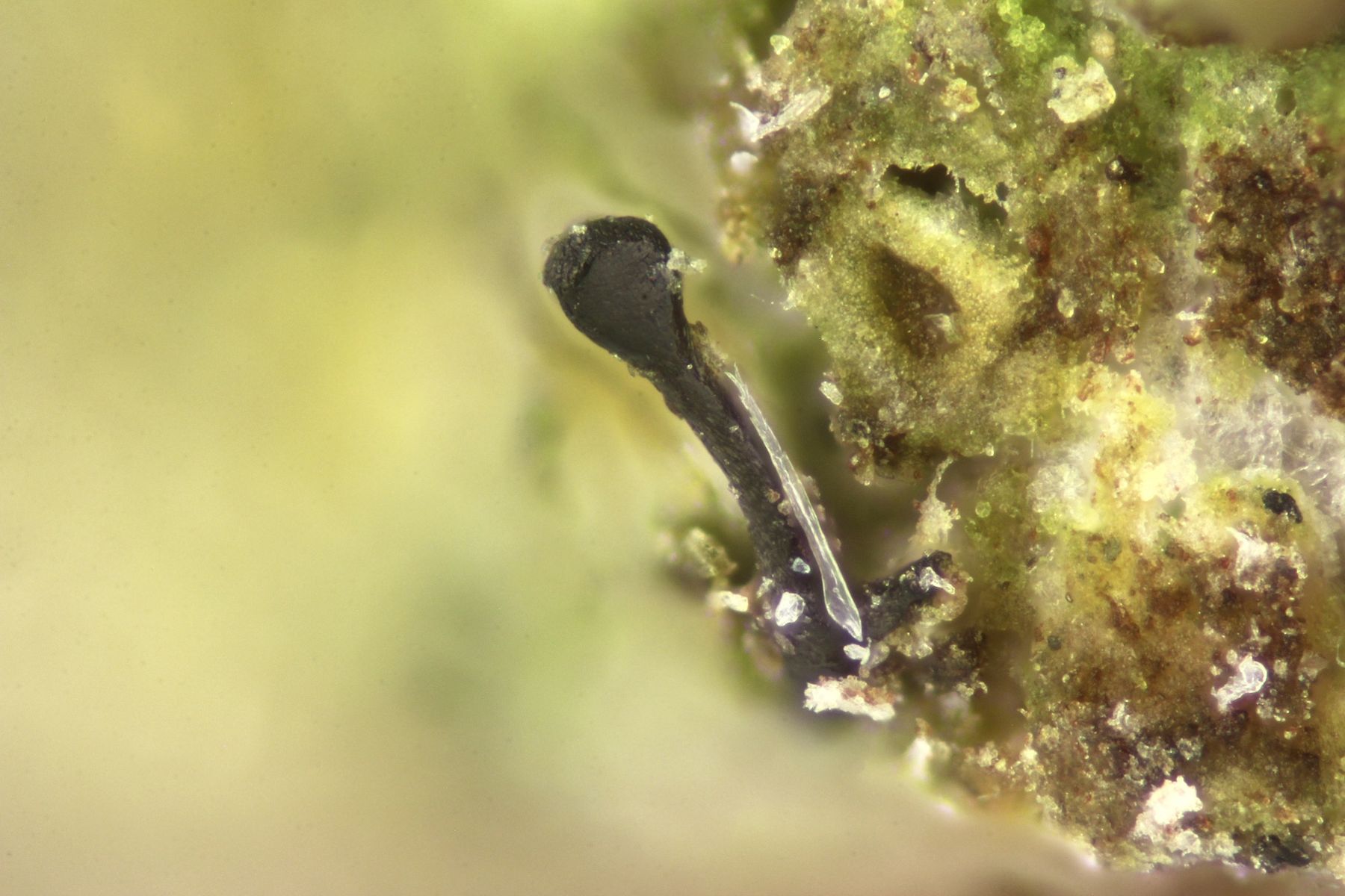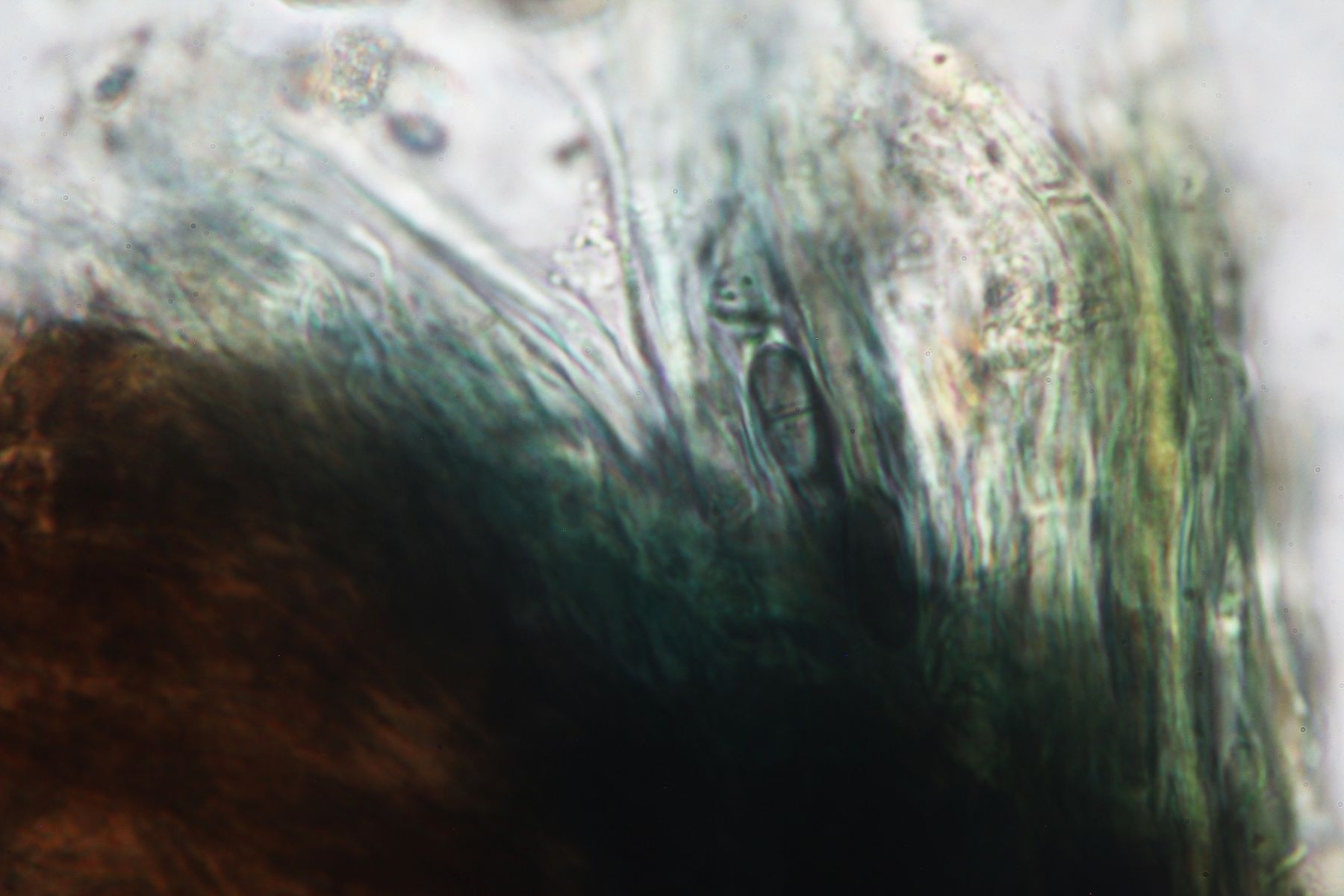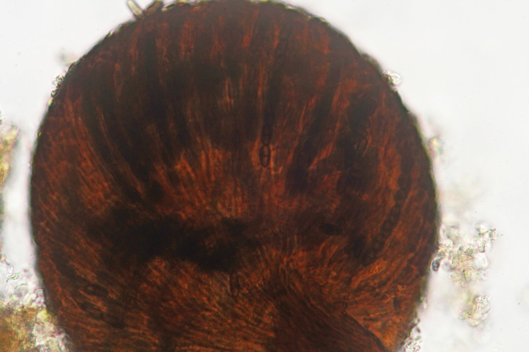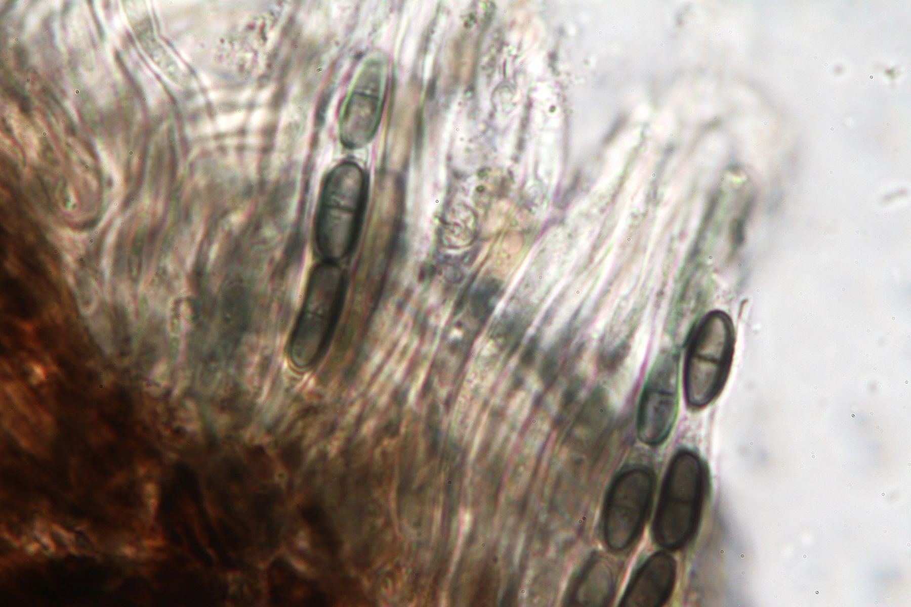 Das Substrat war ein Ast von Erle (Alnus), Asci konnte ich keine erkennen und die Sporen hatten teilweise ein Ornamet (vermutlich durch überreife).