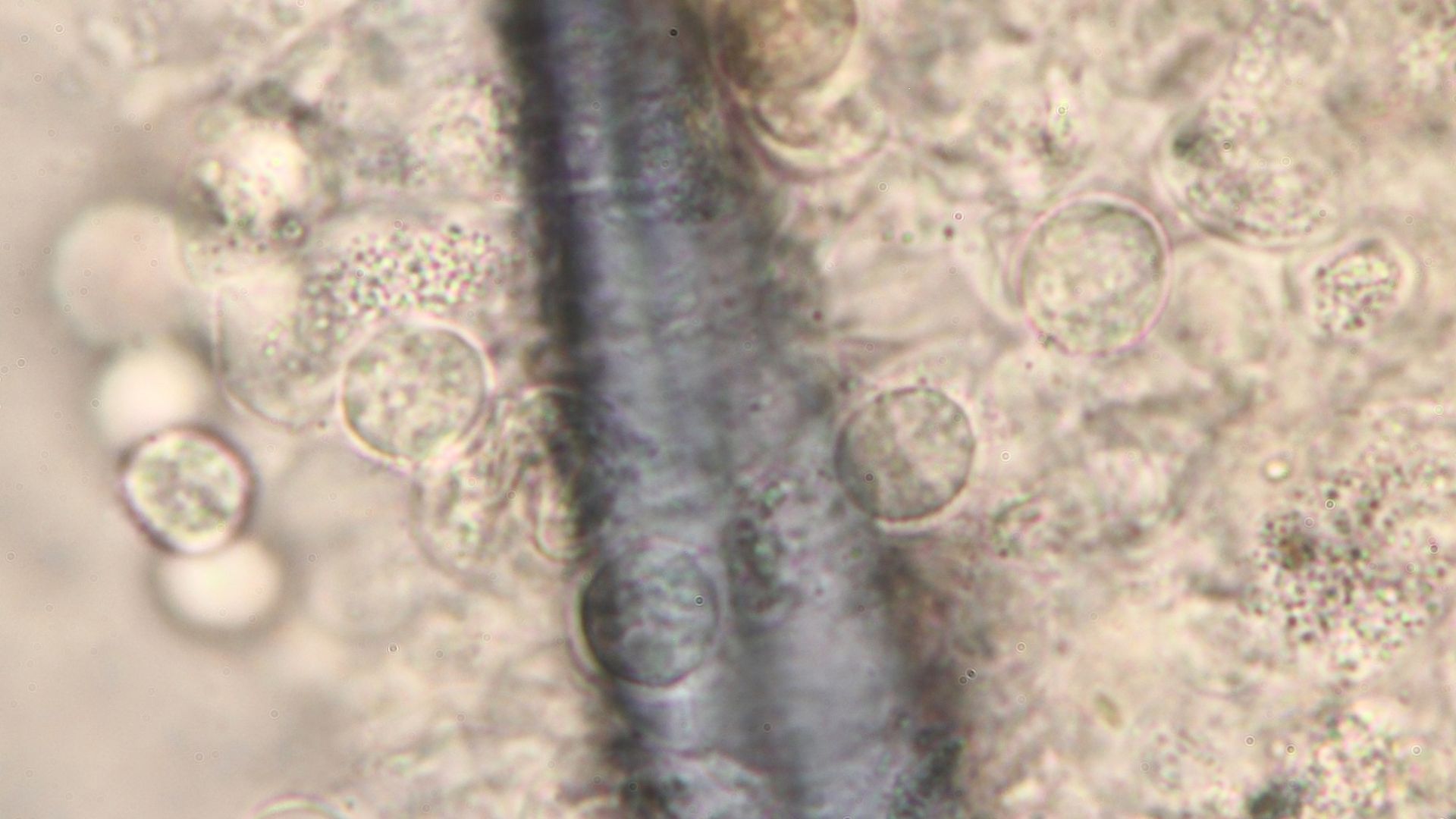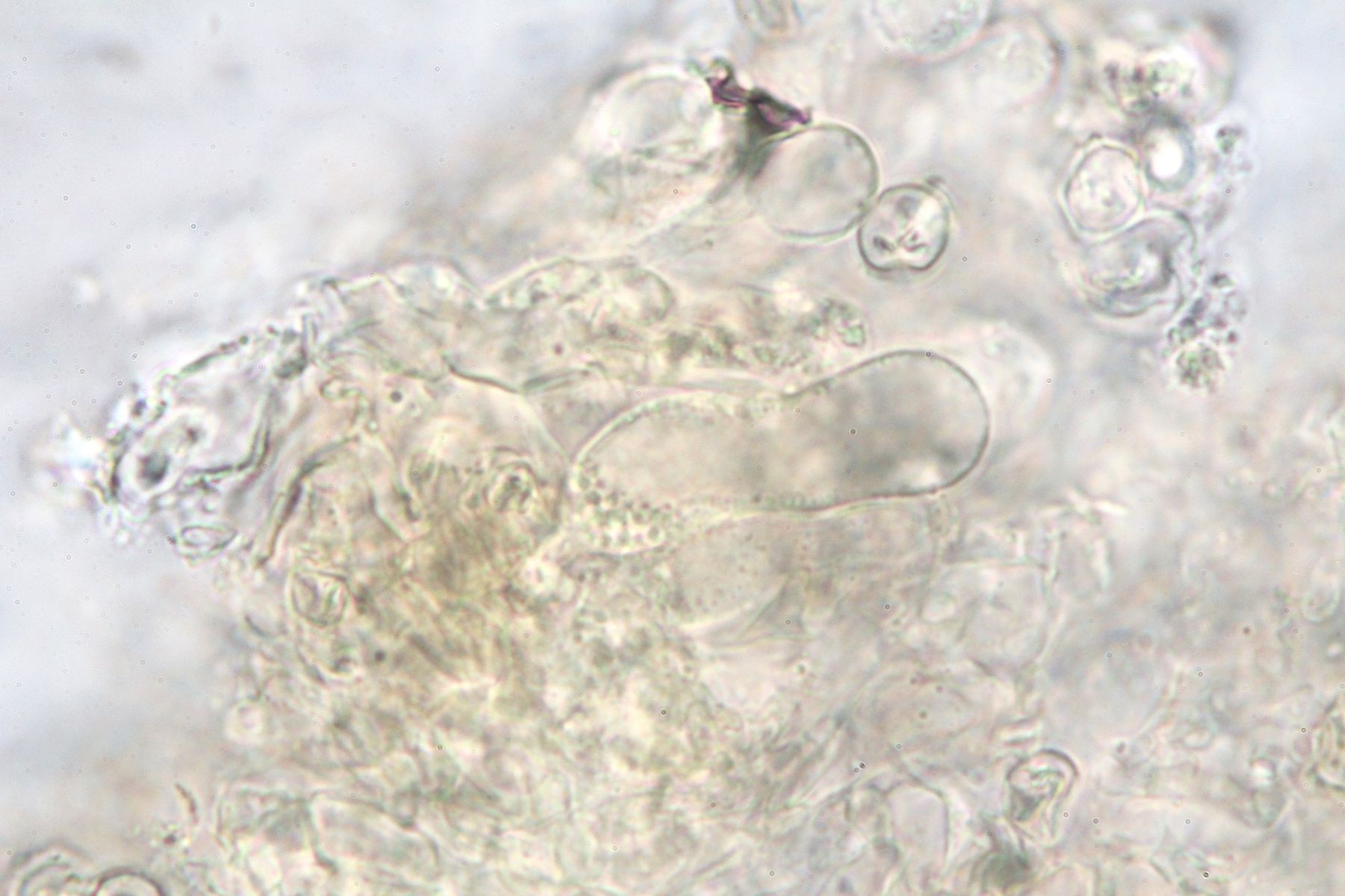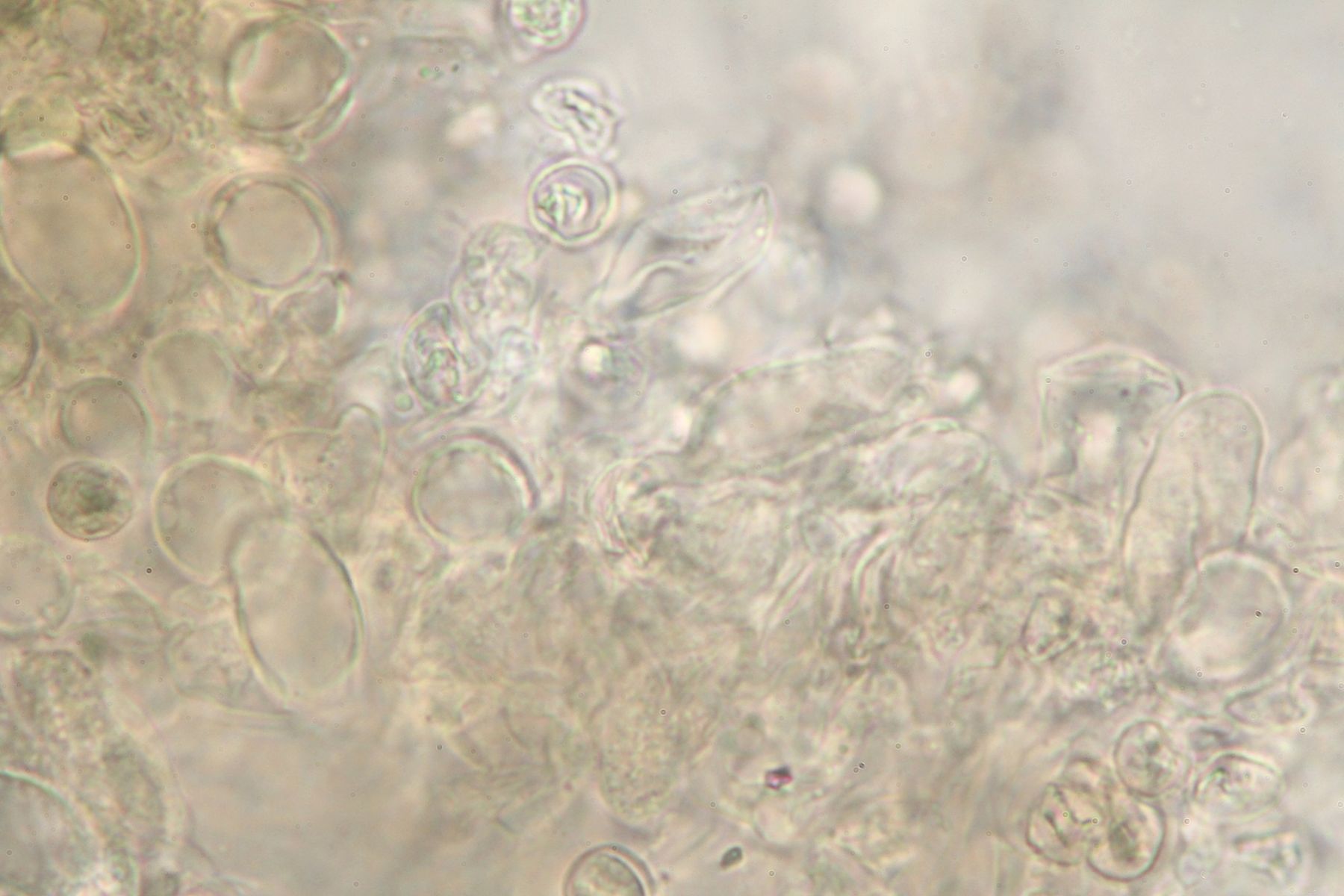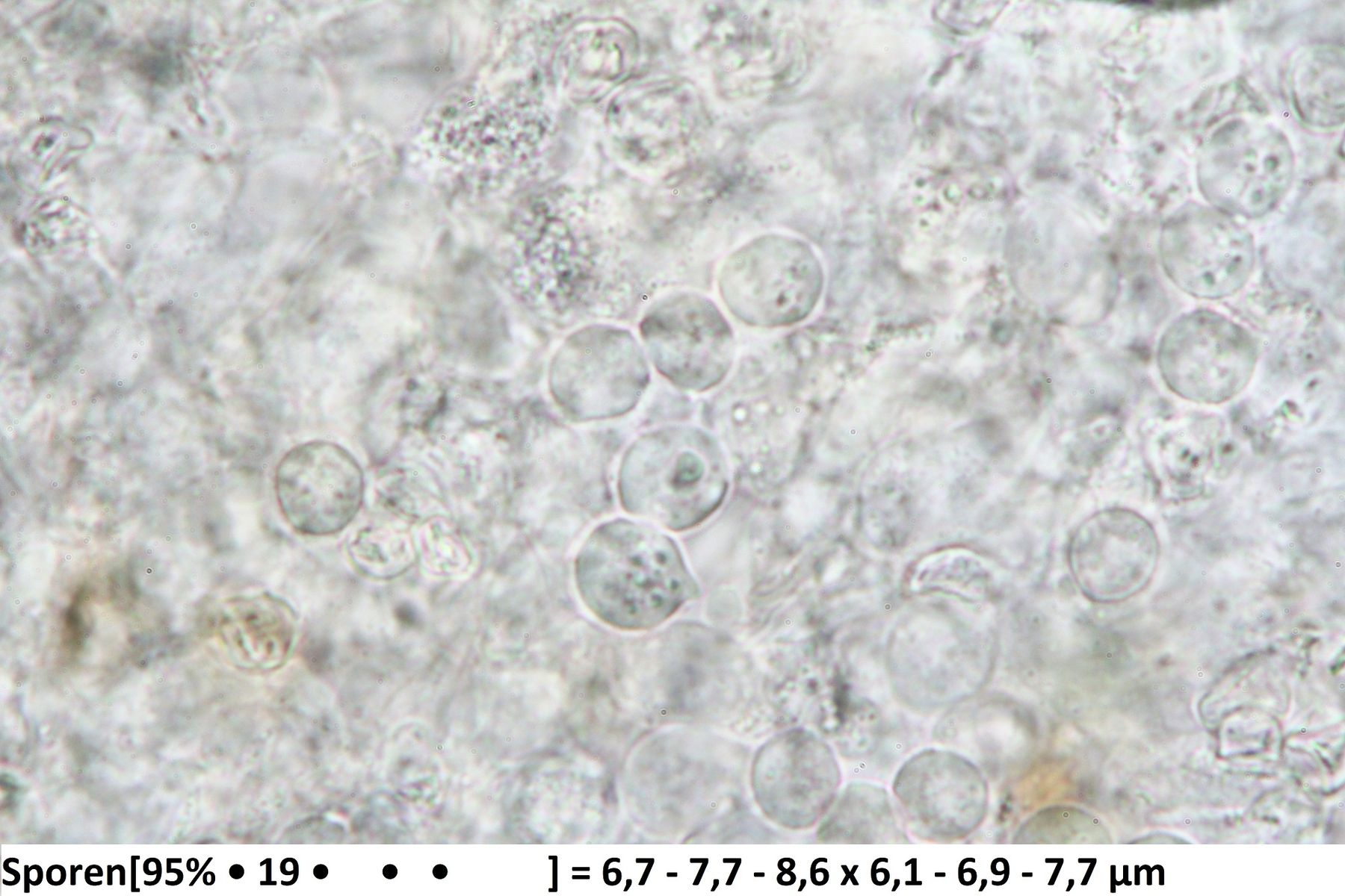 Dann kamen die Zweifel, weil die Sporen warzig sein sollten und jetzt konnte ich Sporen entdecken, die ein feinwarziges Ornament haben könnten.